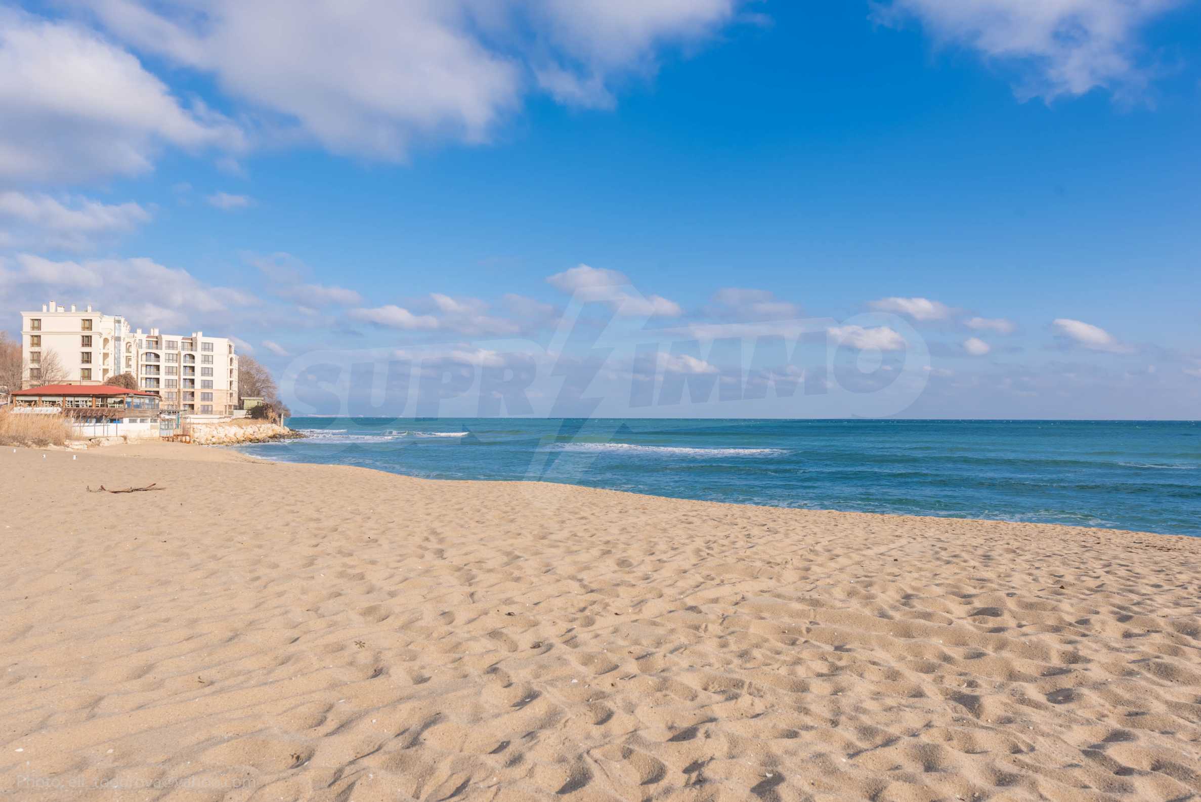 • First level (60 m2): spacious living room with modern solid wood kitchen, veranda with direct access to the beach, bathroom, fitted wardrobe, stairs to the second level;