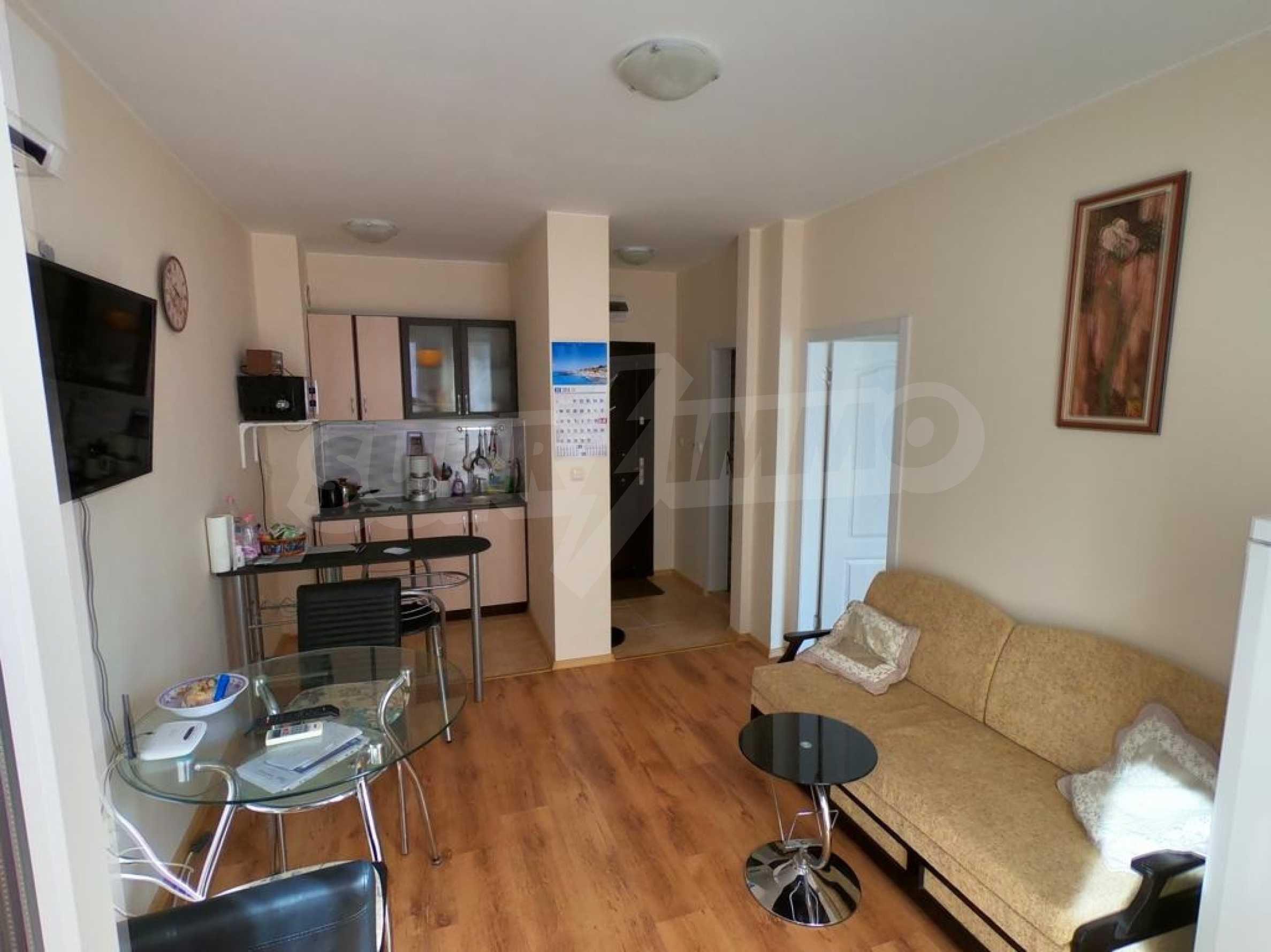 One bedroom apartment with all amenities for sale in the eighth residence of Melia (now Amelia), in the famous resort village of Ravda. A small standard type apartment is located on the third floor. All landscaping, household appliances and furniture are in good condition. The total area is 47 square meters. m. The property is for sale turnkey, we process it at the notary.