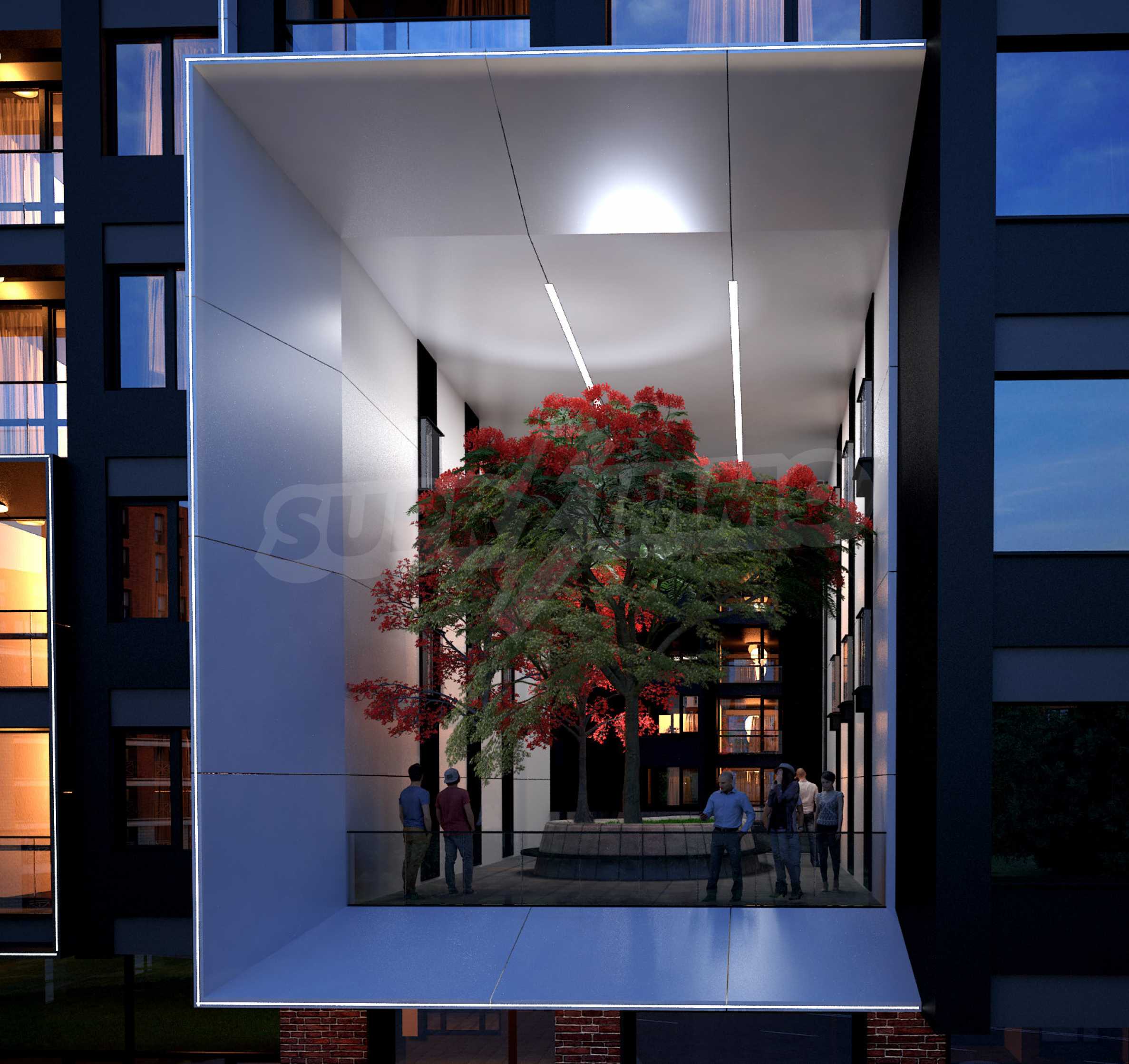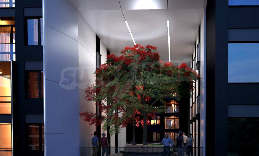The complex will leave a memorable mark in the urbanization of the capital thanks to the unique architectural solution for Sofia: breakthroughs in the facade, which will unite the interior and exterior, improve air circulation, bring a lot of light from south and west in the yard. The breakthroughs are designed as a patio with benches for relaxation and landscaped areas with decorative wood in the center.
