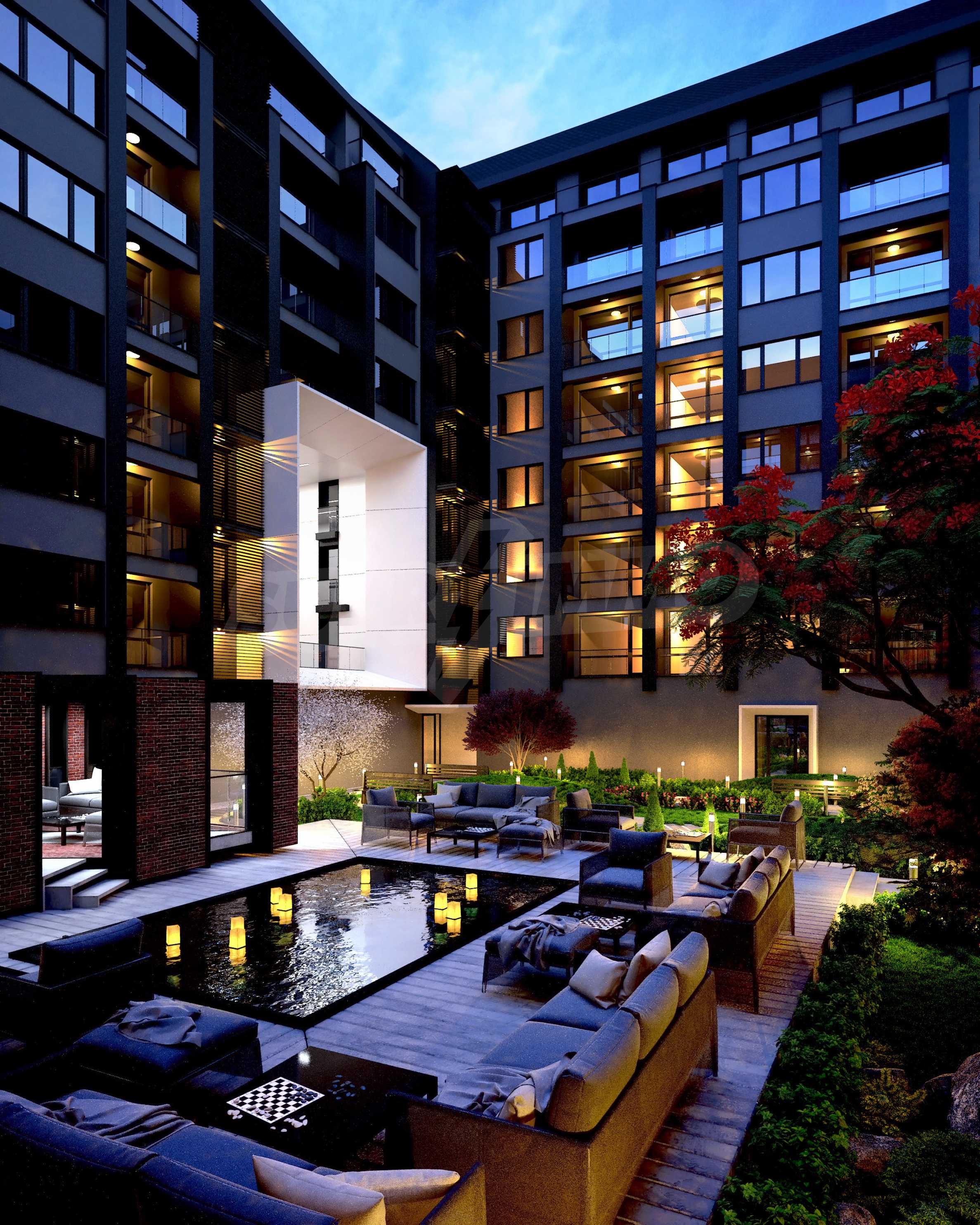 The new gated complex will consist of 8 residential sections divided into 3 buildings. The buildings are located around the heart of the complex - a common courtyard without access for cars, with richly landscaped areas and recreation areas for residents. The project has been carefully thought out to the last detail. It consists not only of apartments, but also of a commercial area with restaurants, shops, a bank office, a dental studio and many other services for the residents of the complex. The three basement levels provide the necessary garage or parking space for each home.