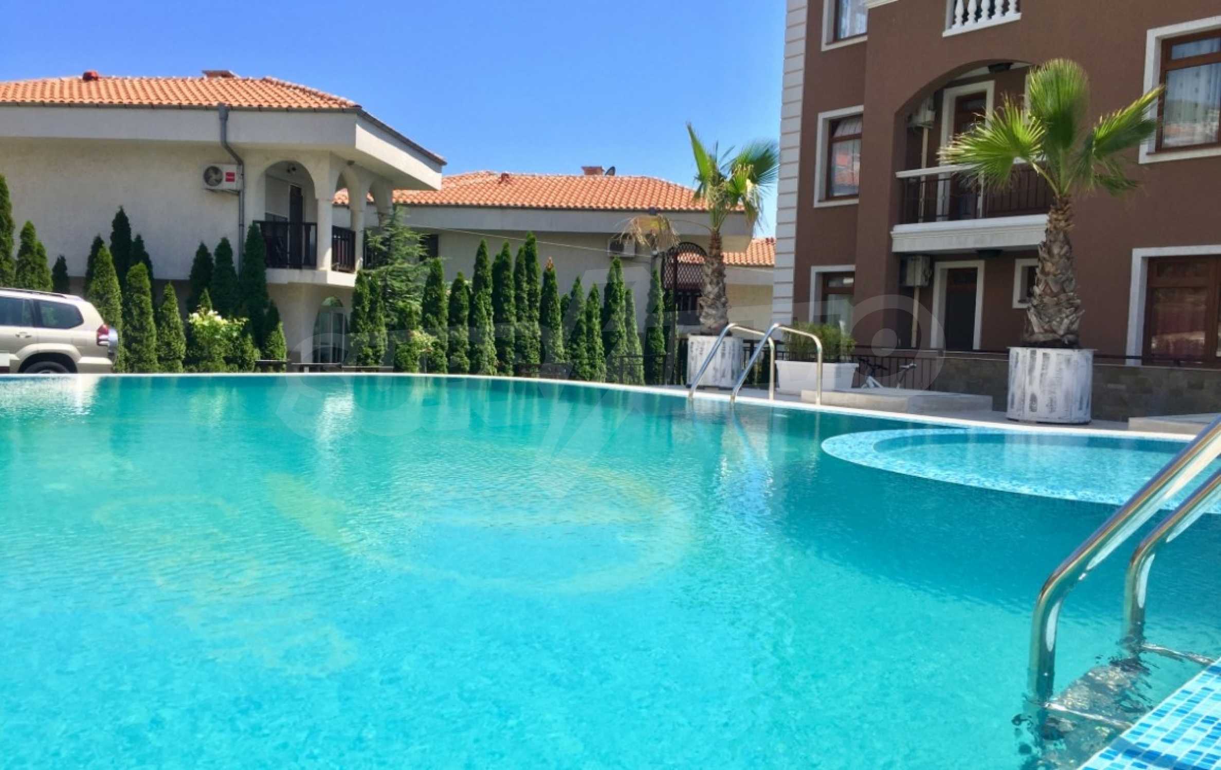 The complex has an extensively landscaped garden with exotic tree species and flowers, as well as an outdoor pool for adults and children with an area of about 100 m2.