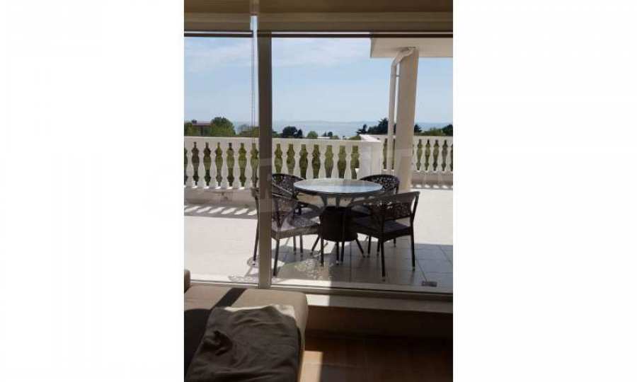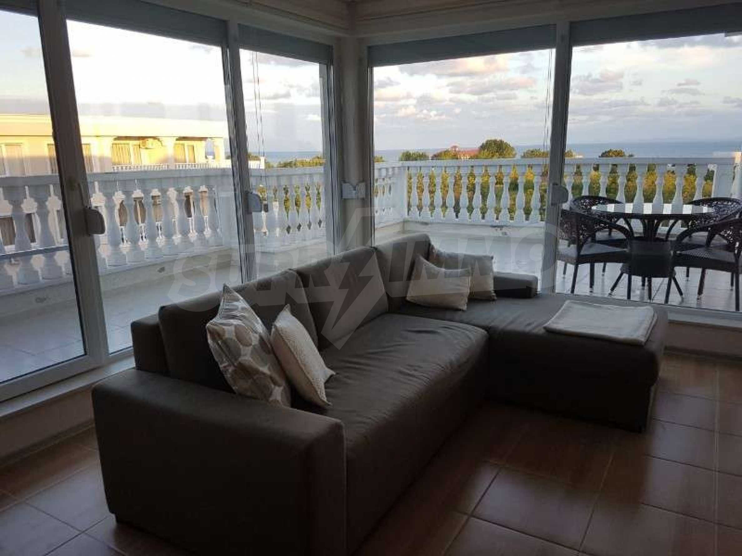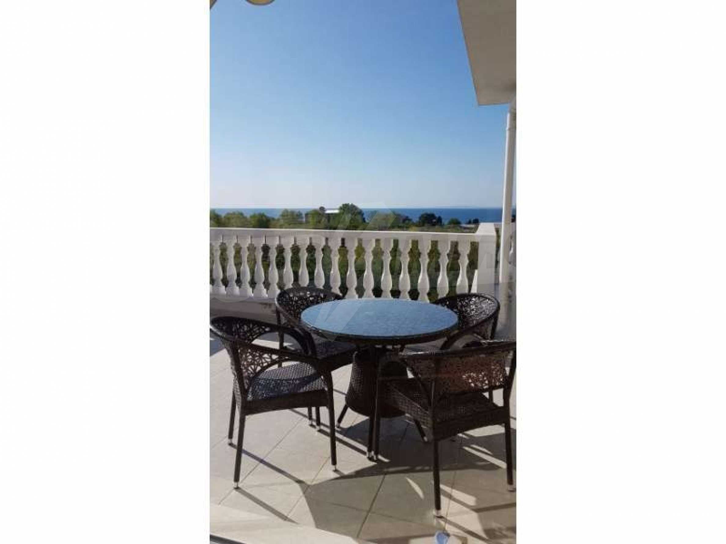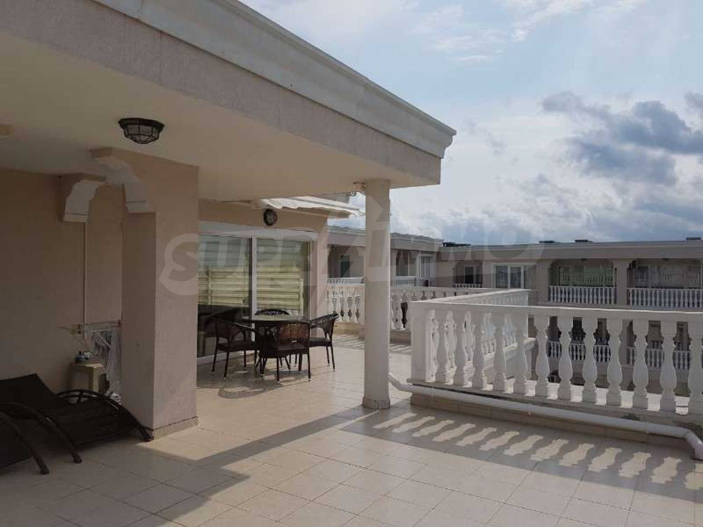For sale two-bedroom apartment in Nessebar, Lifestyle Deluxe Complex. The apartment has an area of 125 square meters, a huge terrace (46 sq.m) which offers incredible sea views. The apartment is fully furnished and equipped with new appliances. The property is suitable for both seasonal and permanent residence. Near the building there is a supermarket, pharmacy, bus stop.The complex is located near the beach, in a quiet and peaceful place with infrastructure. The complex has an outdoor swimming pool and a playground. Maintenance fee - 9,6 euro \ / sq. meter per year.