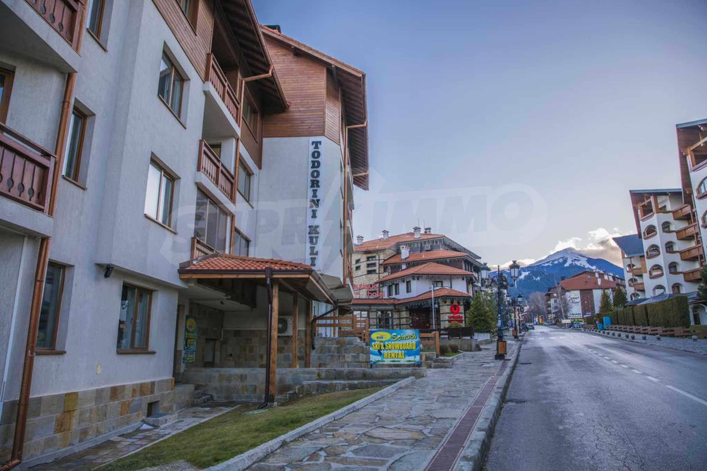 Furnished one-bedroom apartment in Todorini Kuli Apart-Hotel, located directly opposite Kempinski Grand Arena Hotel, 50 meters from the first lift station. The apartment spreads over 42 m2. and located on the second floor, facing west.