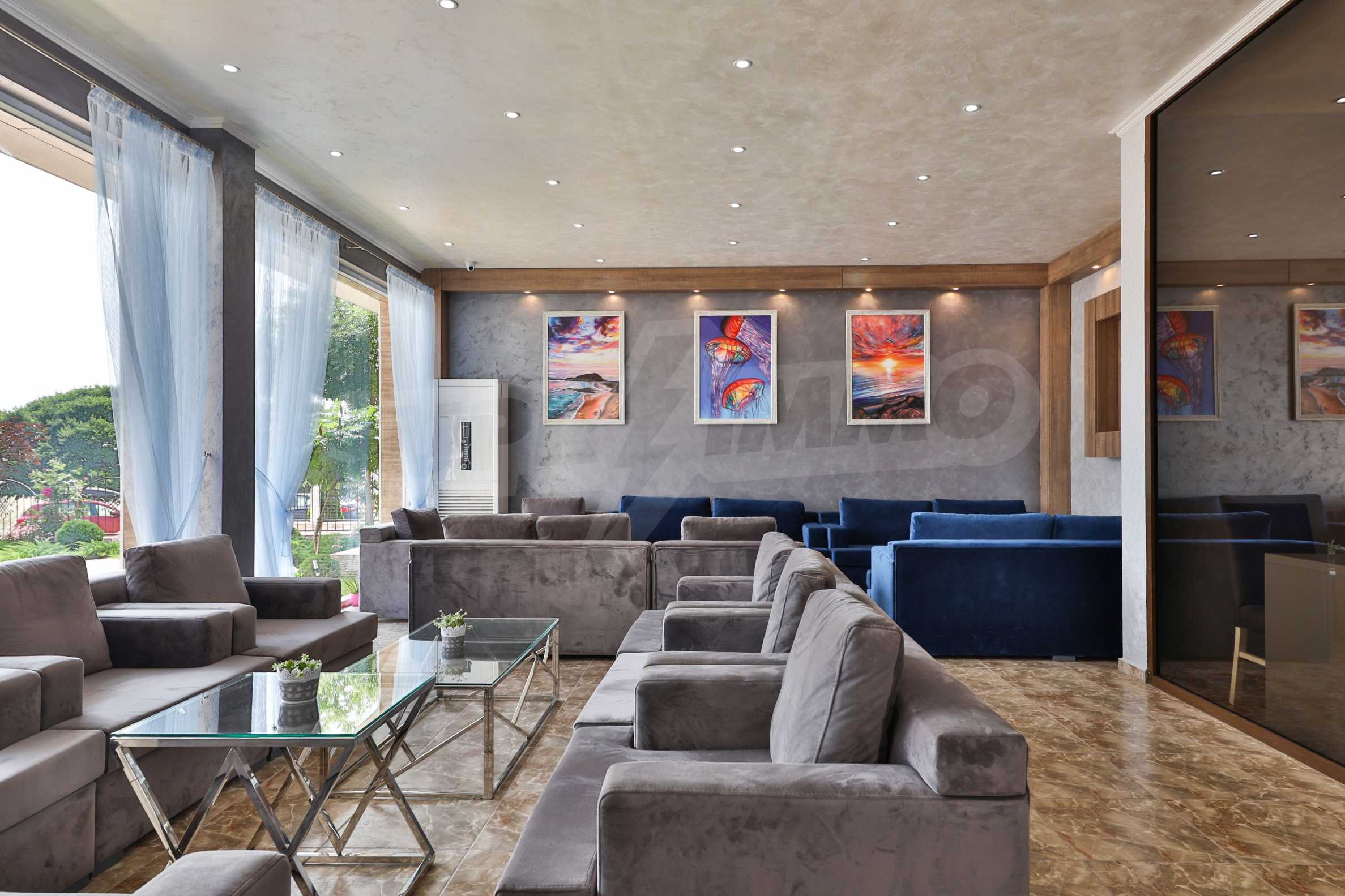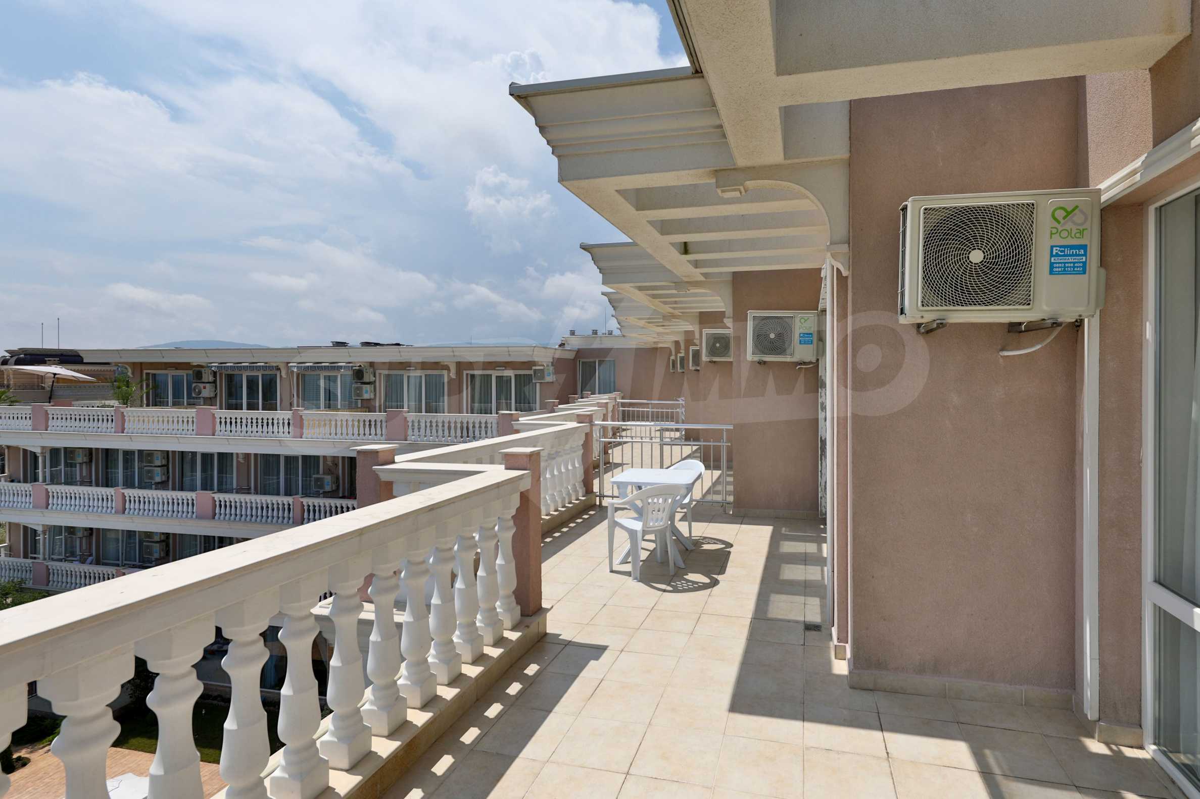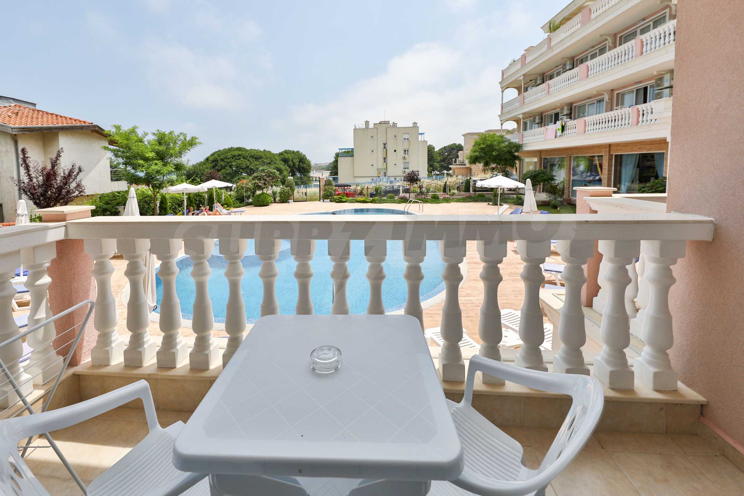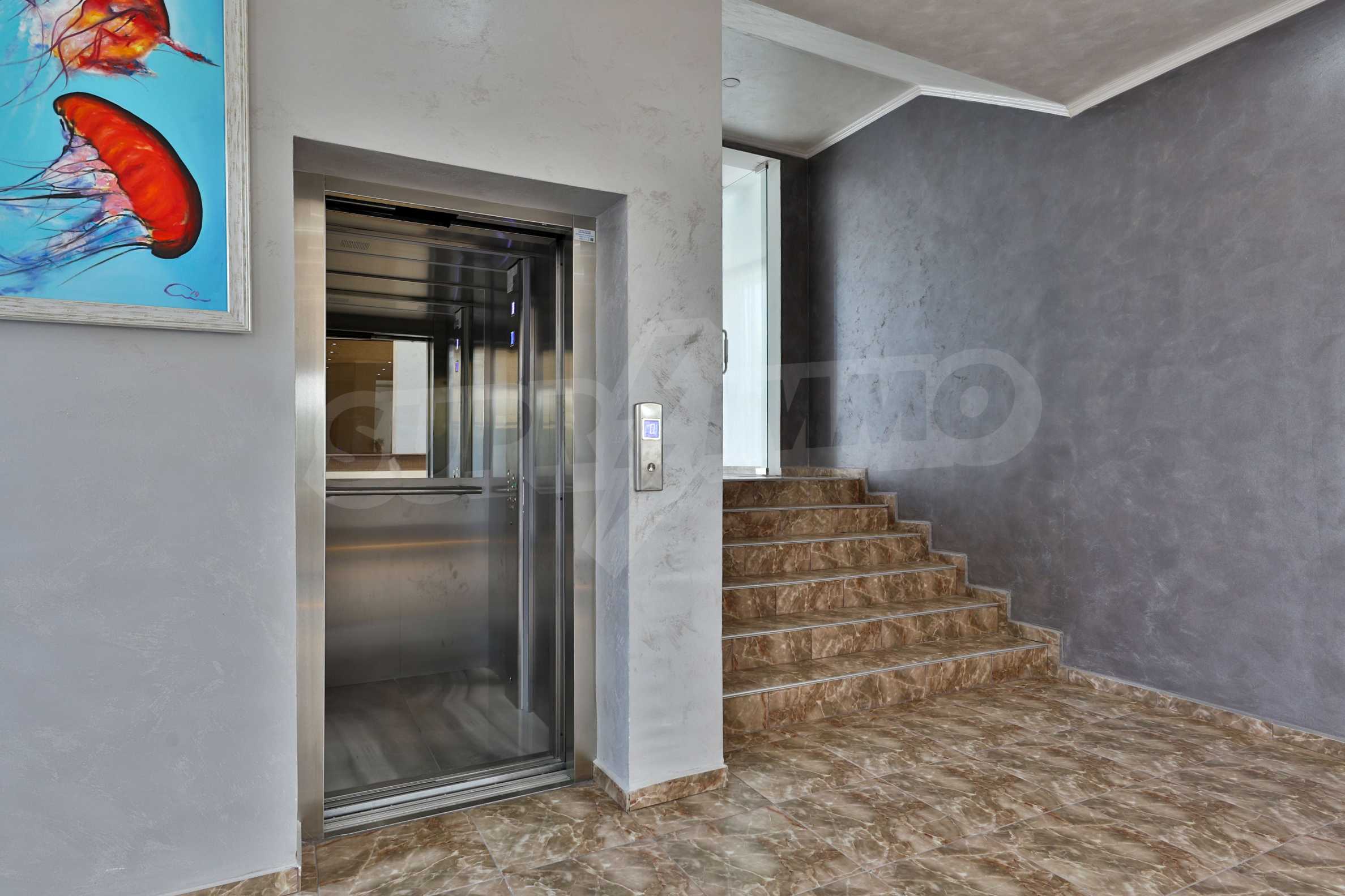The building stands out for its sophisticated and elegant architecture, with spacious terraces with balustrades. It is oriented towards the sea coast and offers incredible views of the sea and the beach. There are all the necessary amenities for a pleasant vacation on the territory: swimming pool, underground parking and restaurant, security, video surveillance and reception.