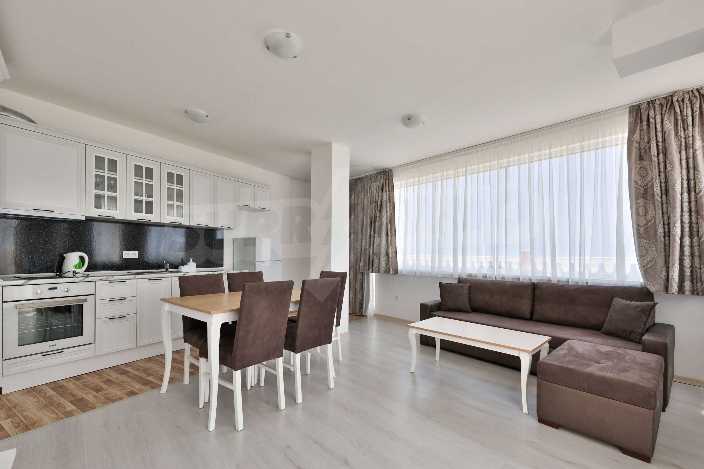 We present a comfortable two-room apartment of 80.10 m2 for sale, in an elegant newly built complex, on the first line of the sea, just meters from the beach of the Lozenets resort.