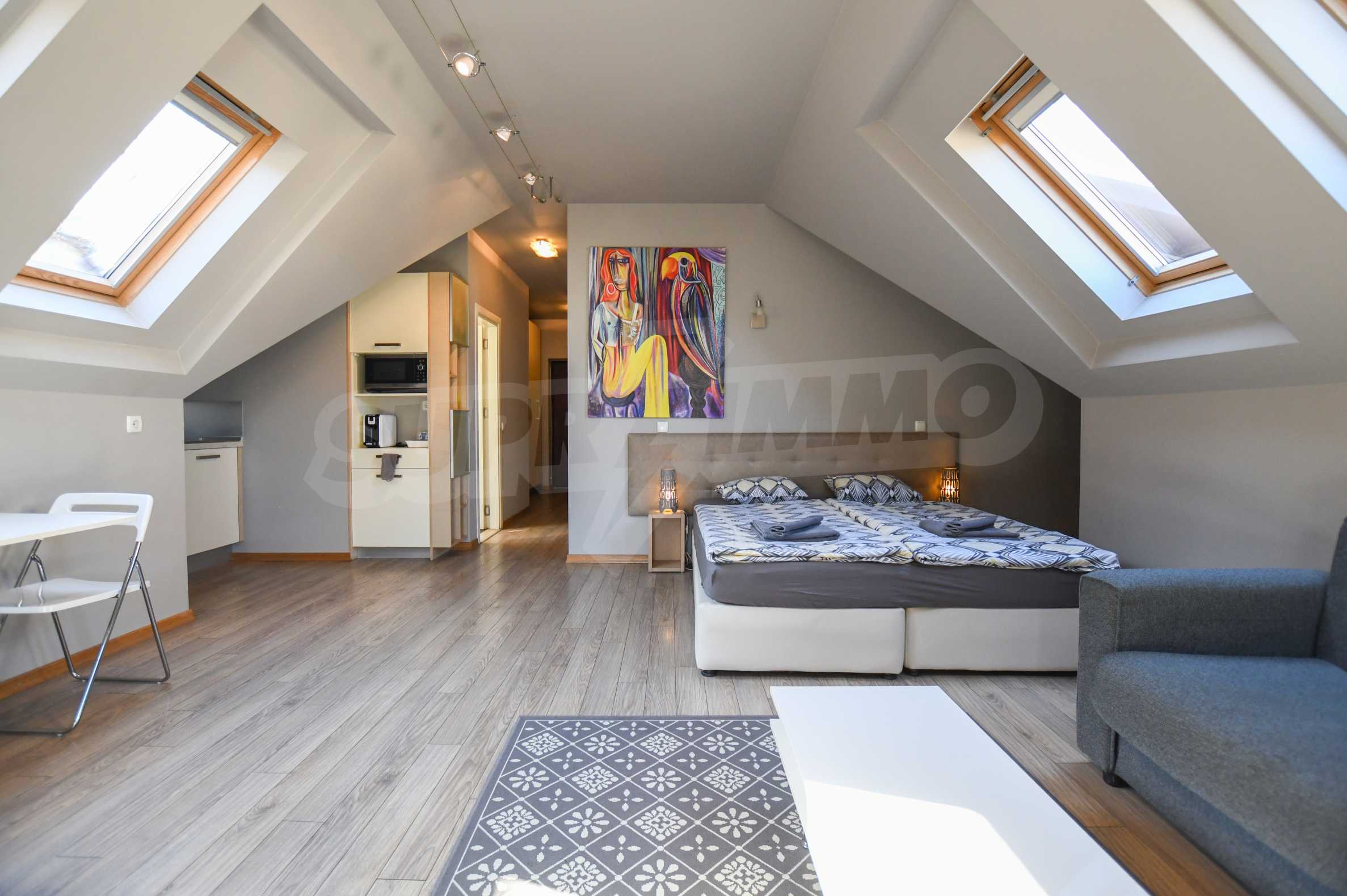 We present a residential building with the status of / and a functioning apartment hotel in close proximity to Borisova Gradina Park, walking distance to Orlov Most and Sofia University. The aparthotel is in excellent condition and is fully furnished and equipped with everything you need. Thanks to the location, a good return and a quick return on investment are guaranteed.