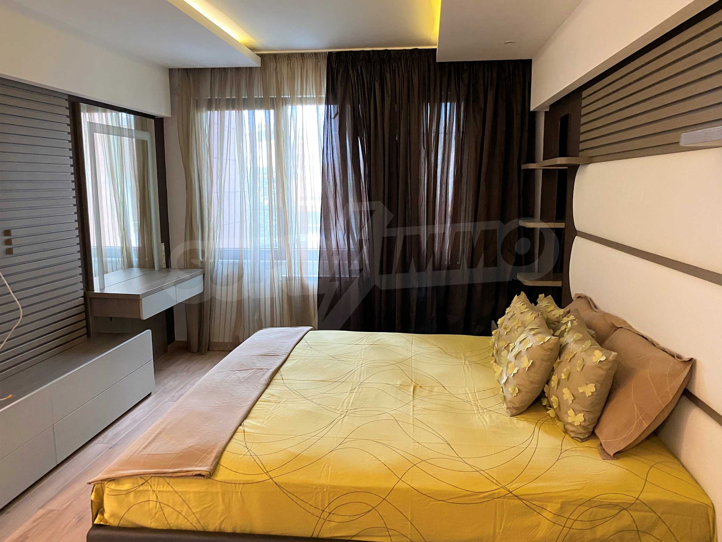 We present a designer, two-bedroom apartment for rent in one of the most preferred, gated complexes in Sofia. The "Flora Park" complex facilities a modern design, a spacious indoor park with alleys and many green areas, playgrounds and an outdoor gym. The complex also has a functioning indoor gym, as well as a spa with sauna, jacuzzi and snack bar. The location of Flora Park near Bulgaria Blvd. and the Ring Road provides quick access to downtown Sofia, Business Park, the airport and other districts of the capital. The area offers many grocery stores, pharmacies, restaurants and schools, as well as many entertainment on the territory of Mall Bulgaria.