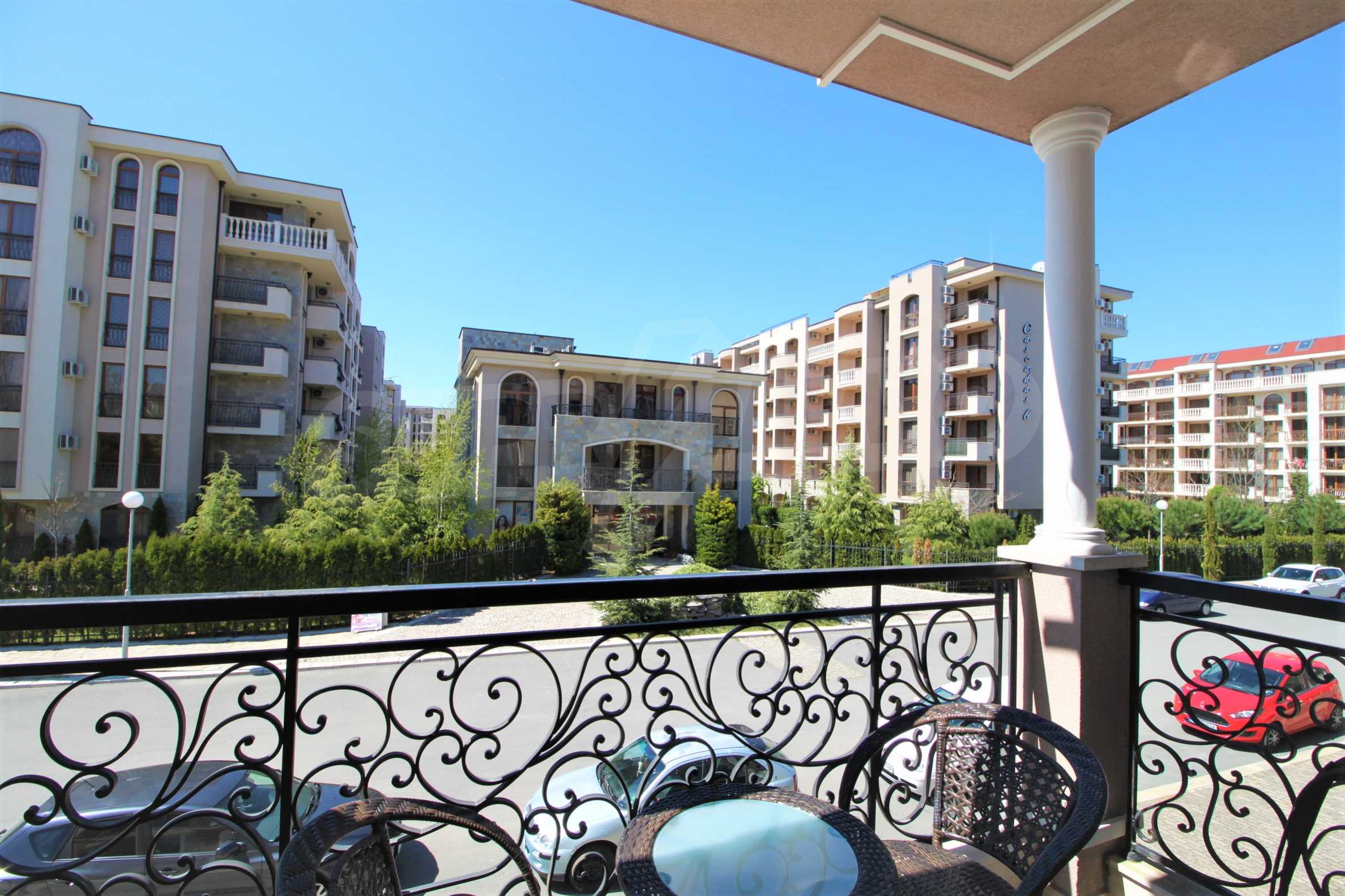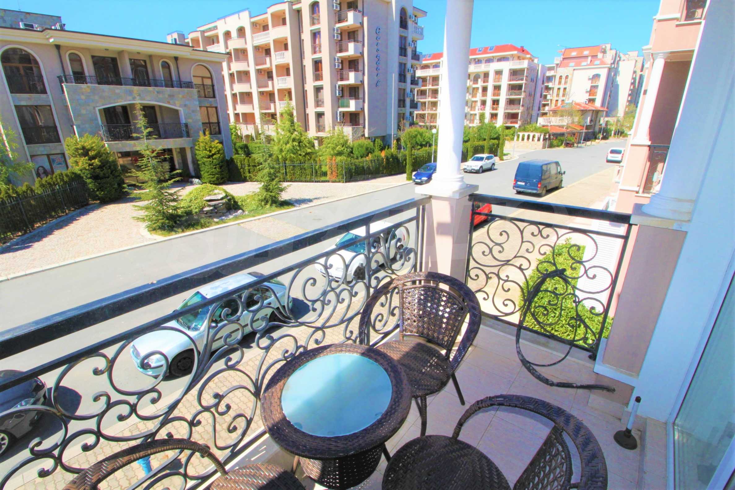 The sophisticated complex is located about 5 minutes from the Aquapark and 10 minutes walk from the center of the resort and the beach.