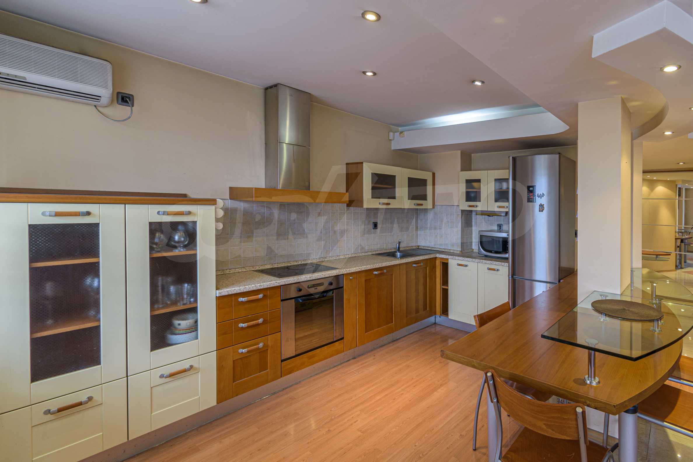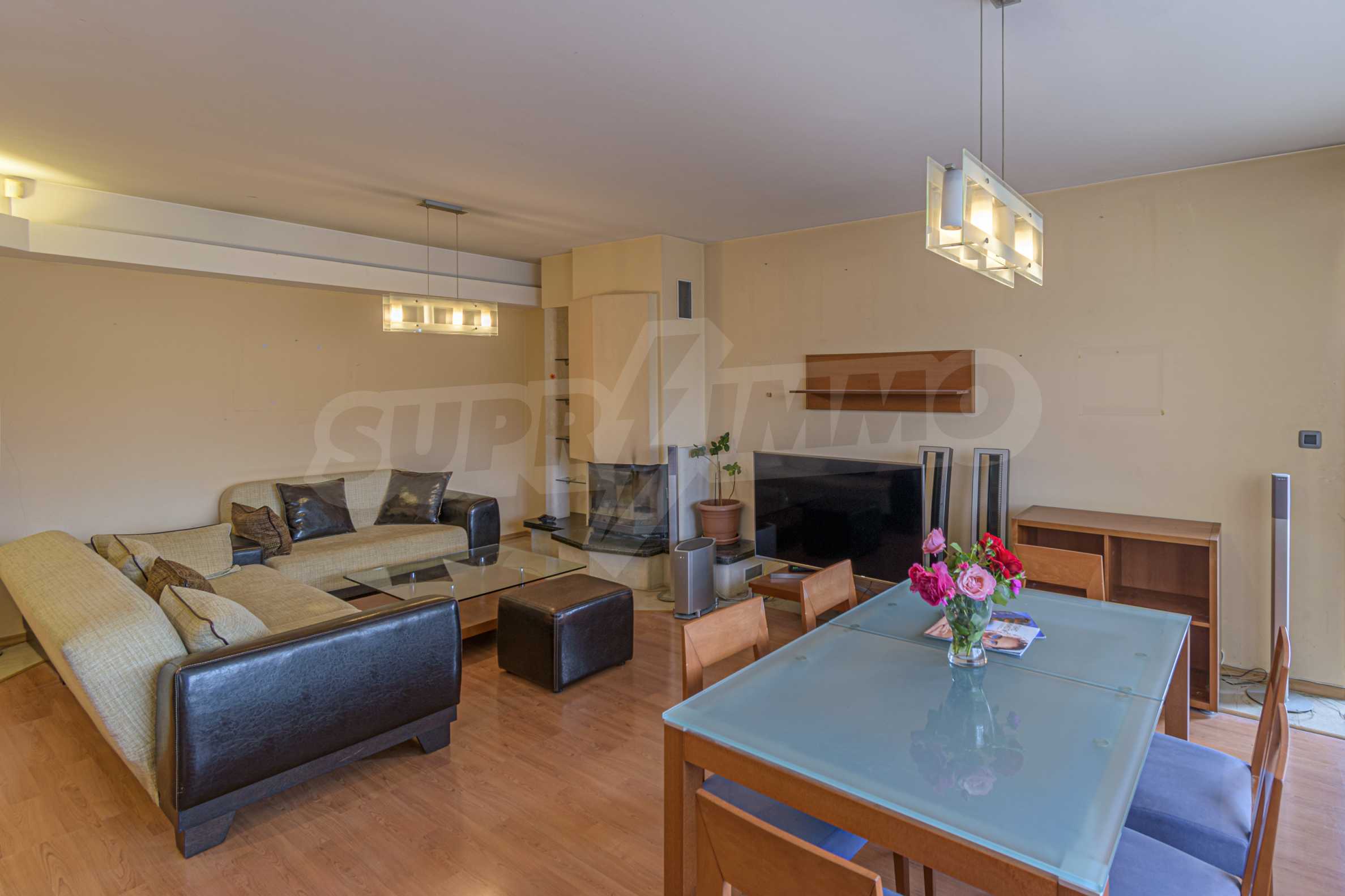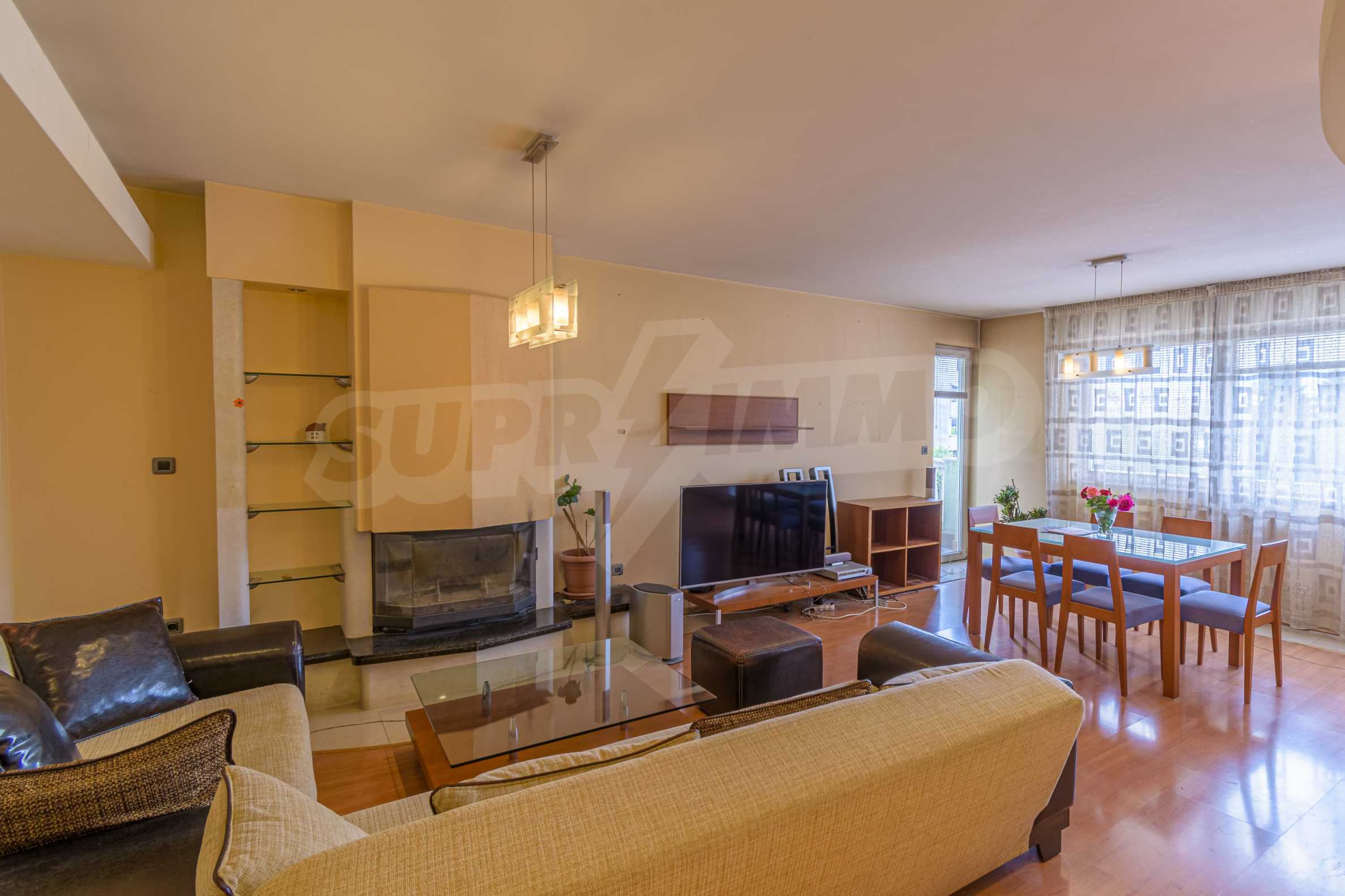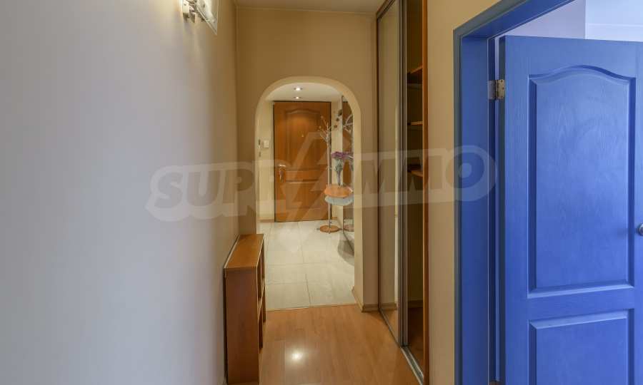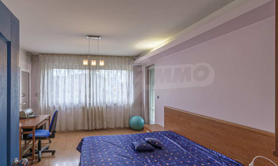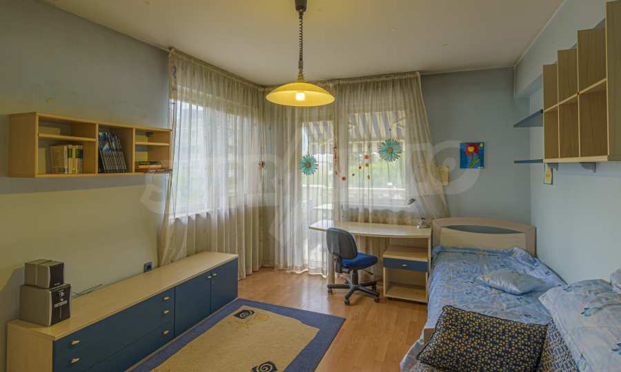 The apartment is spacious and has the following functional layout: entrance hall, kitchen and living room with balconies, guest toilet, master bedroom with closet and private bathroom, two separate bedrooms / children's / with balconies, bathroom with toilet. The living room has a working fireplace.