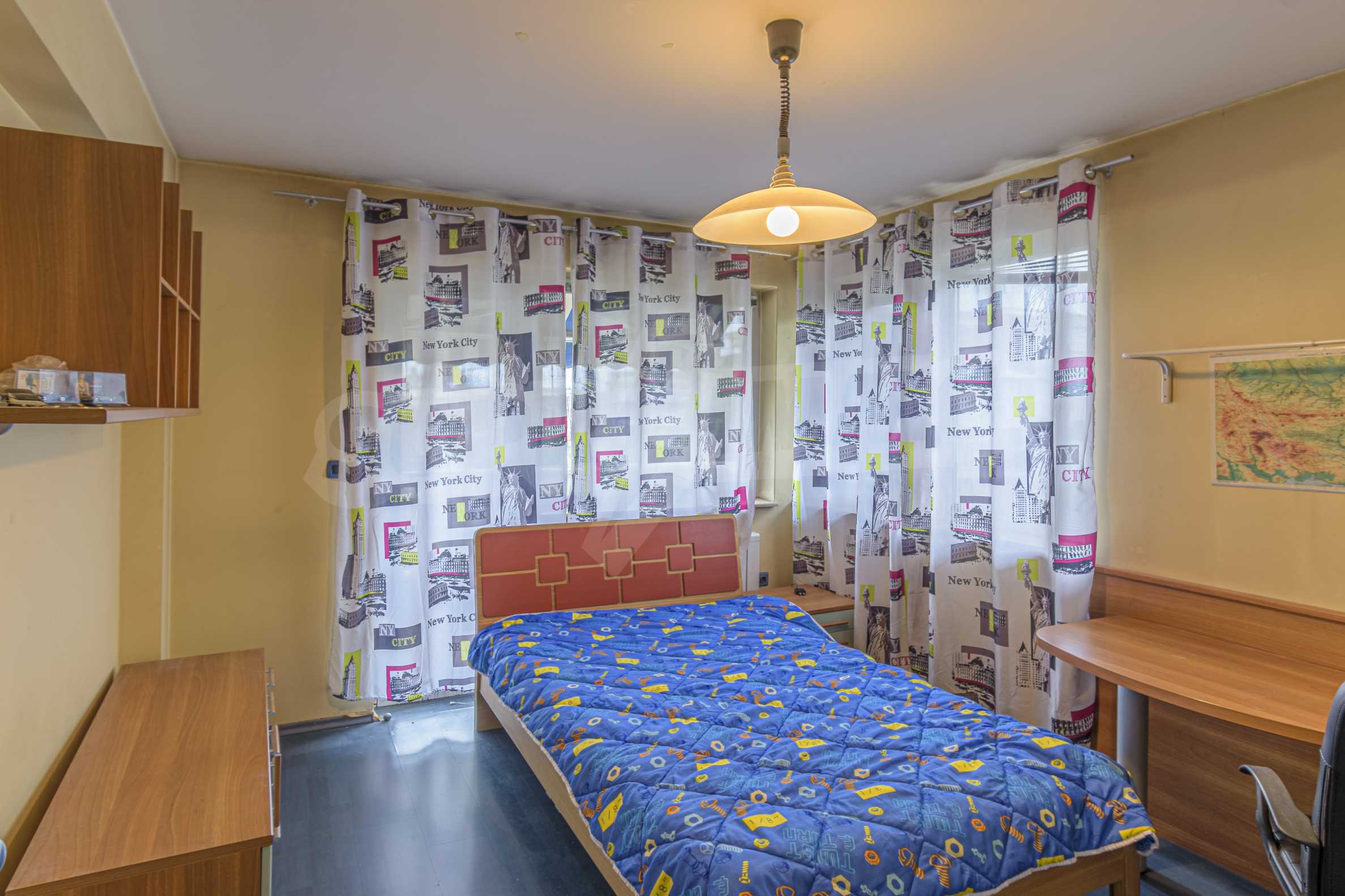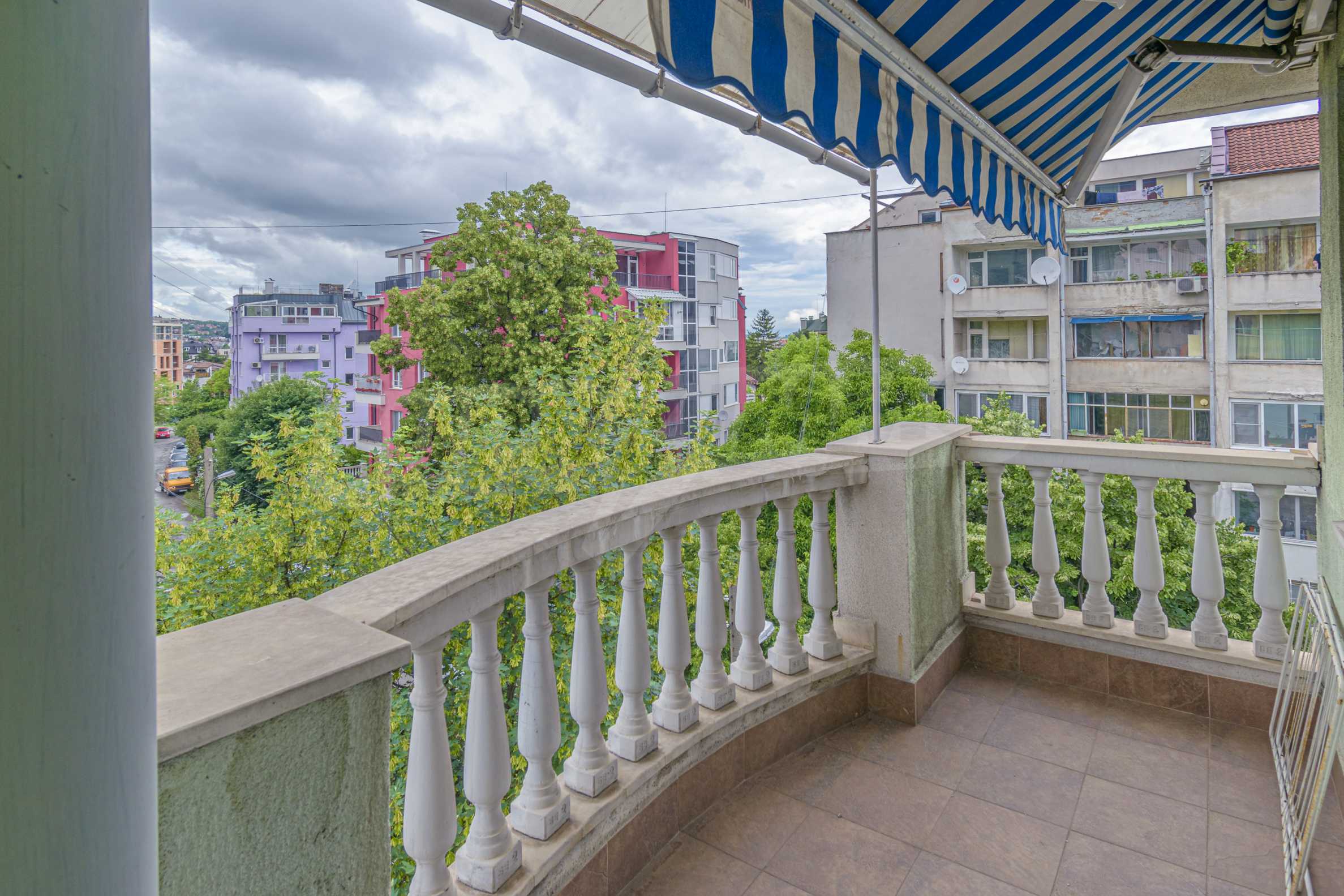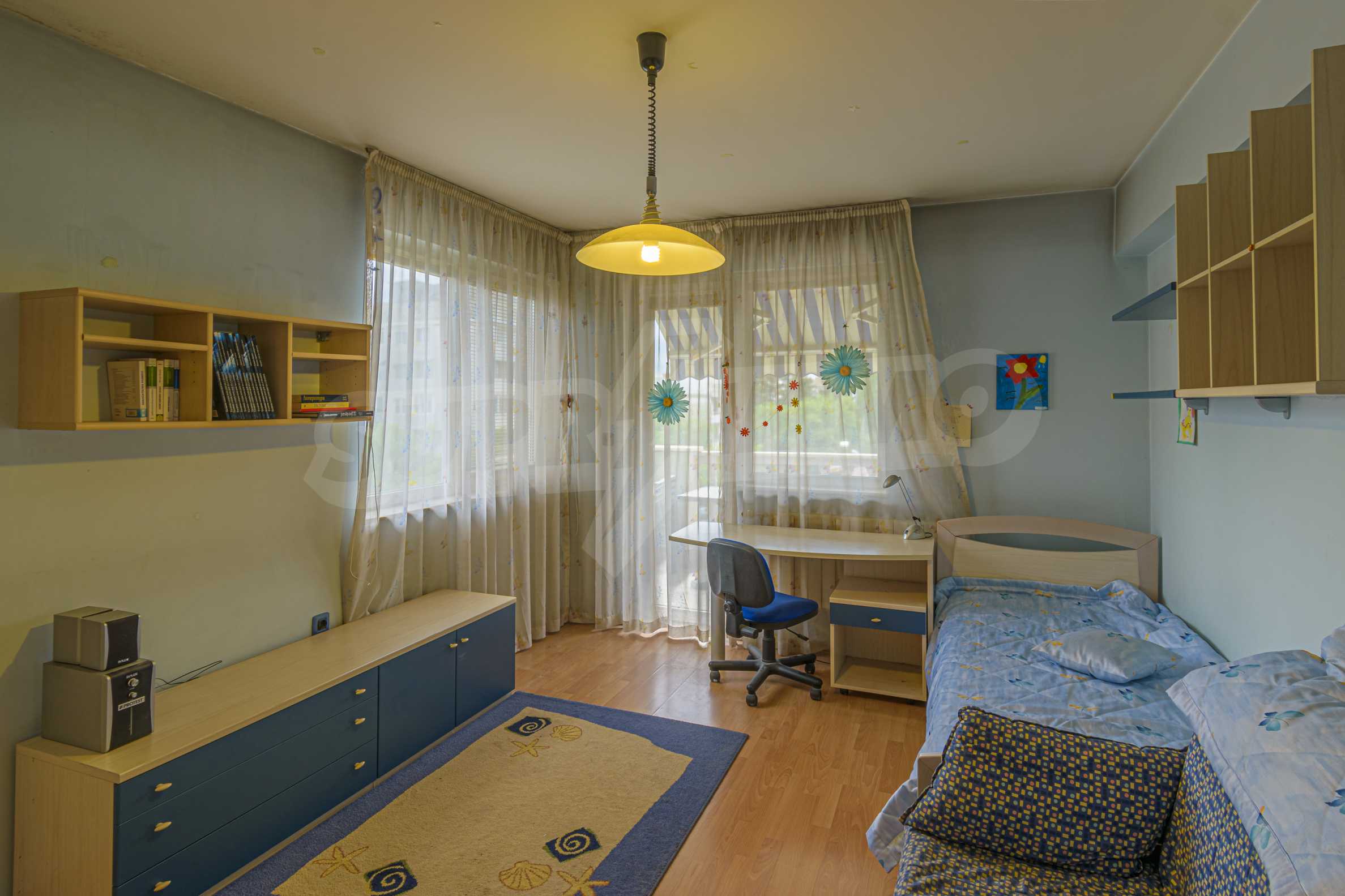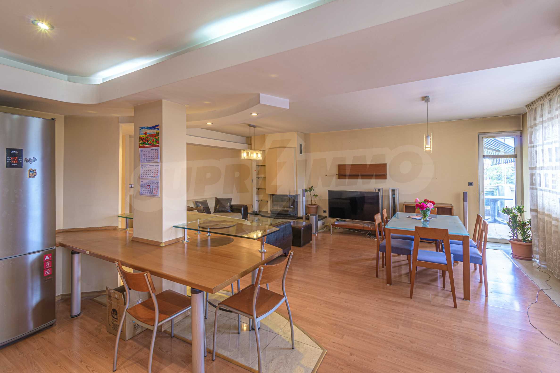 The apartment is spacious and has the following functional layout: entrance hall, kitchen and living room with balconies, guest toilet, master bedroom with closet and private bathroom, two separate bedrooms / children's / with balconies, bathroom with toilet. The living room has a working fireplace.