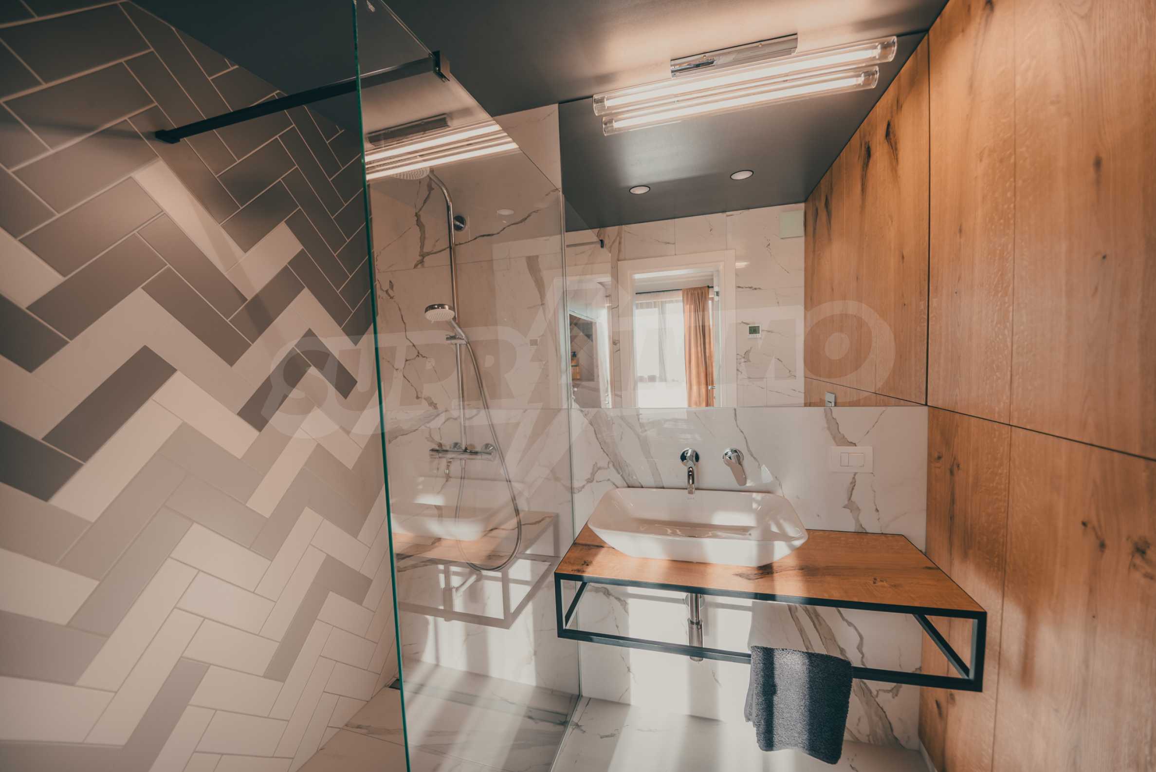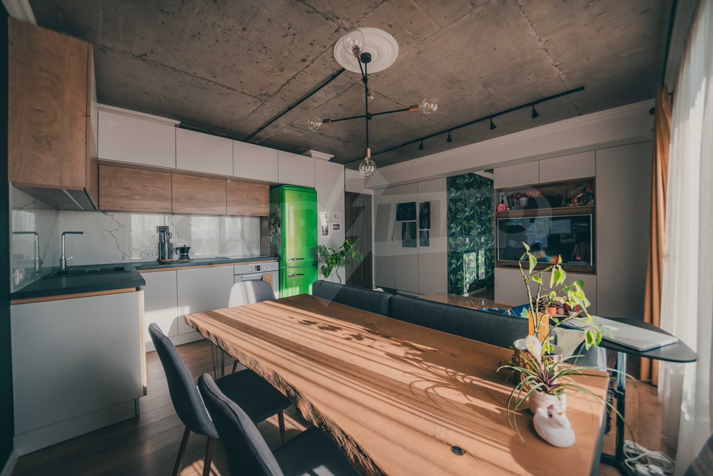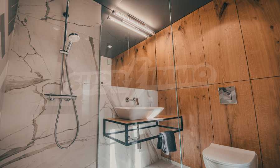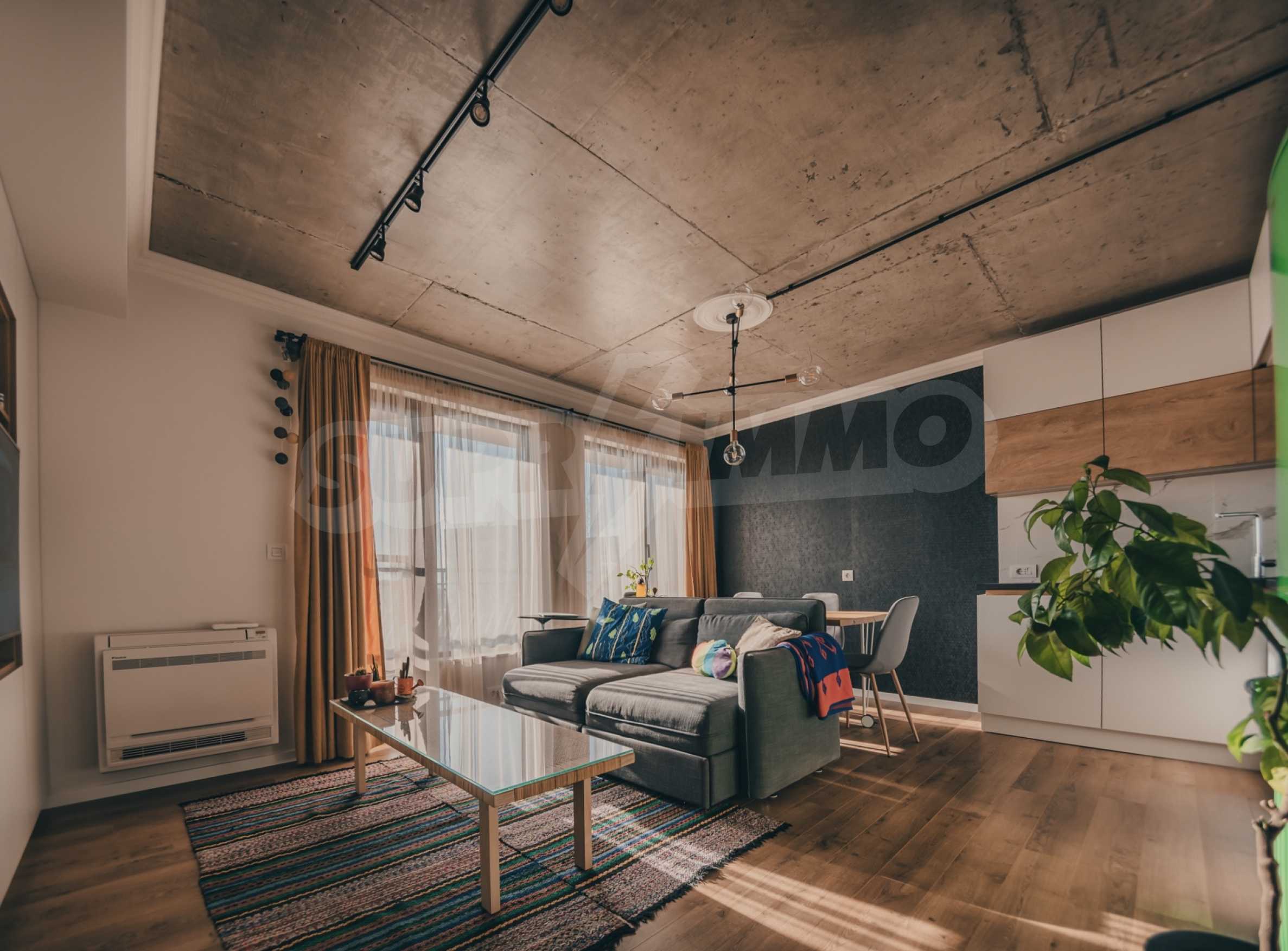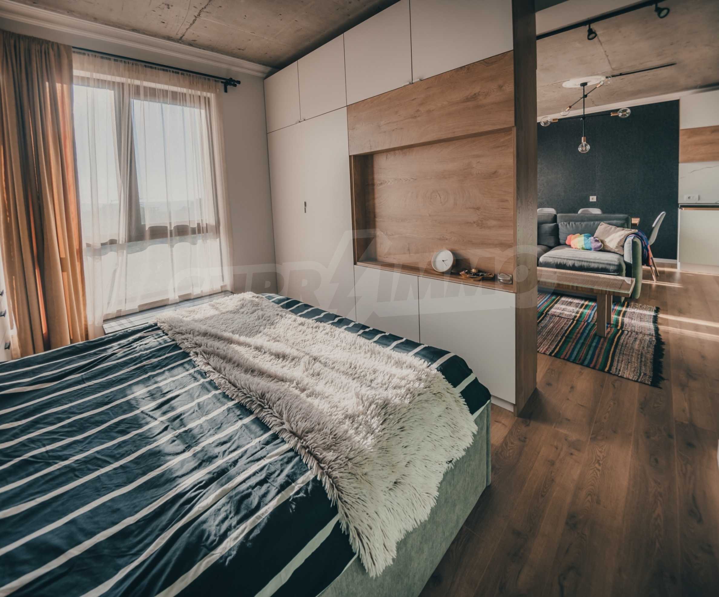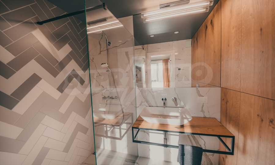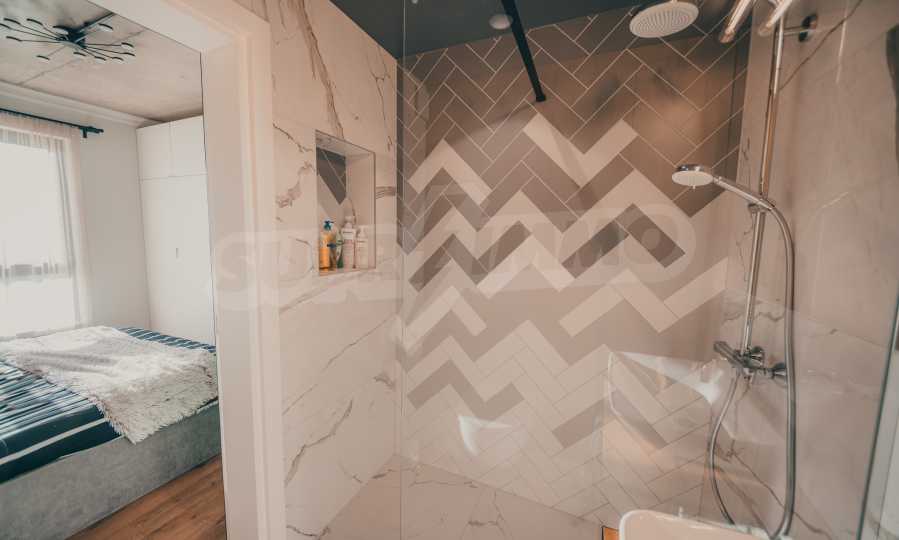 The modern apartment is located on the fifth floor of eight, it is average, with favorable exposure - south. From its living room there is an exit to a terrace of 17.32 m2.