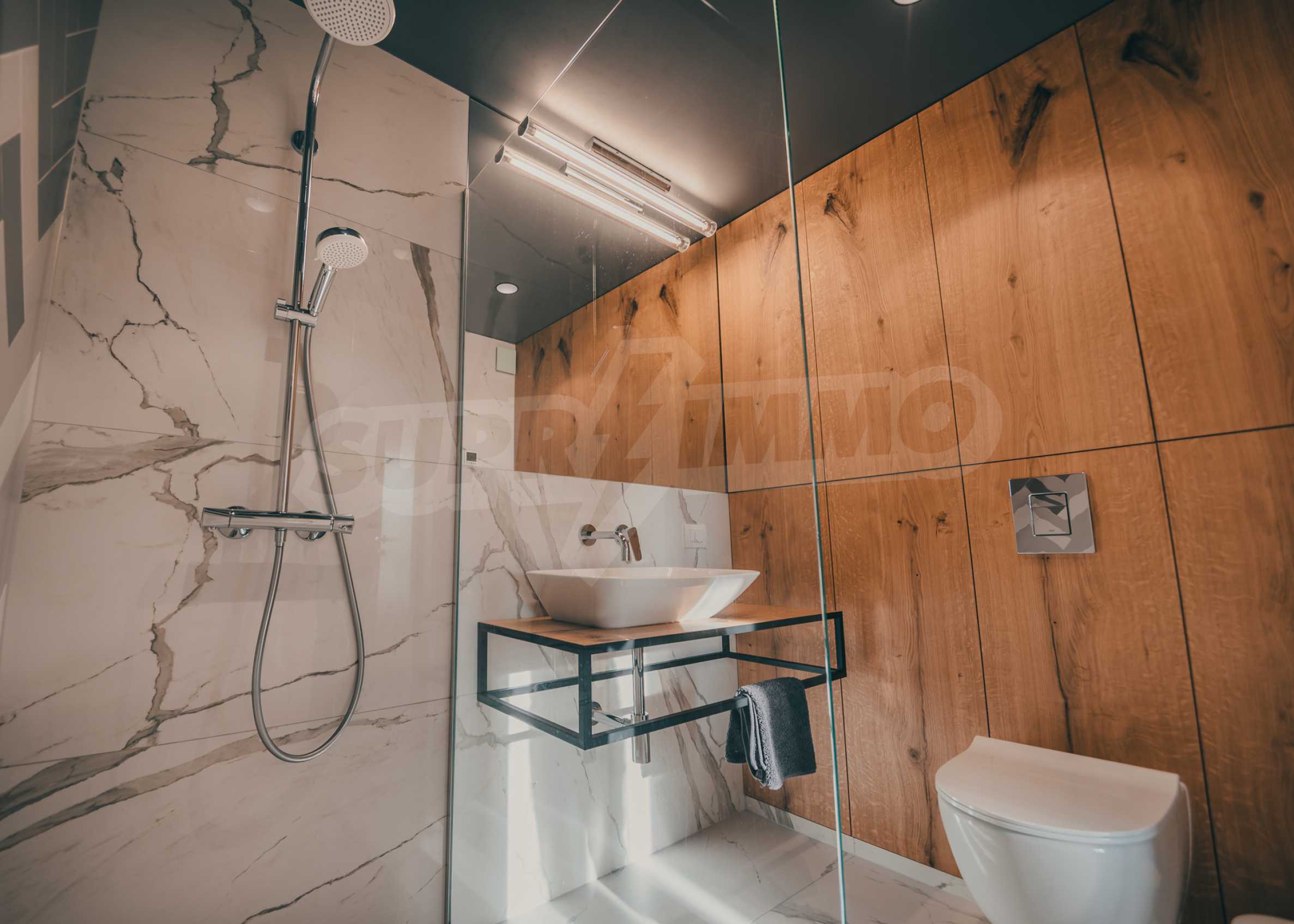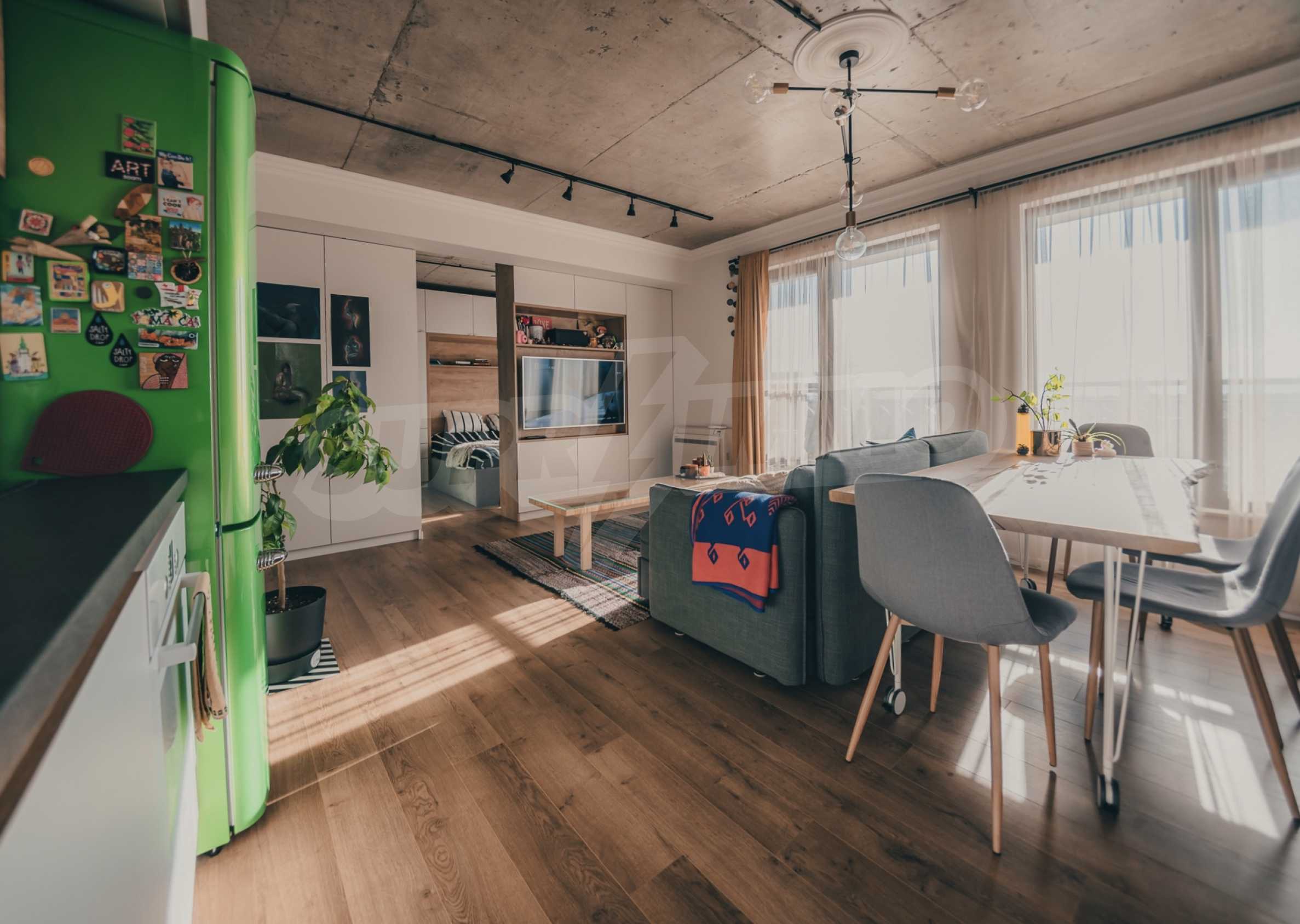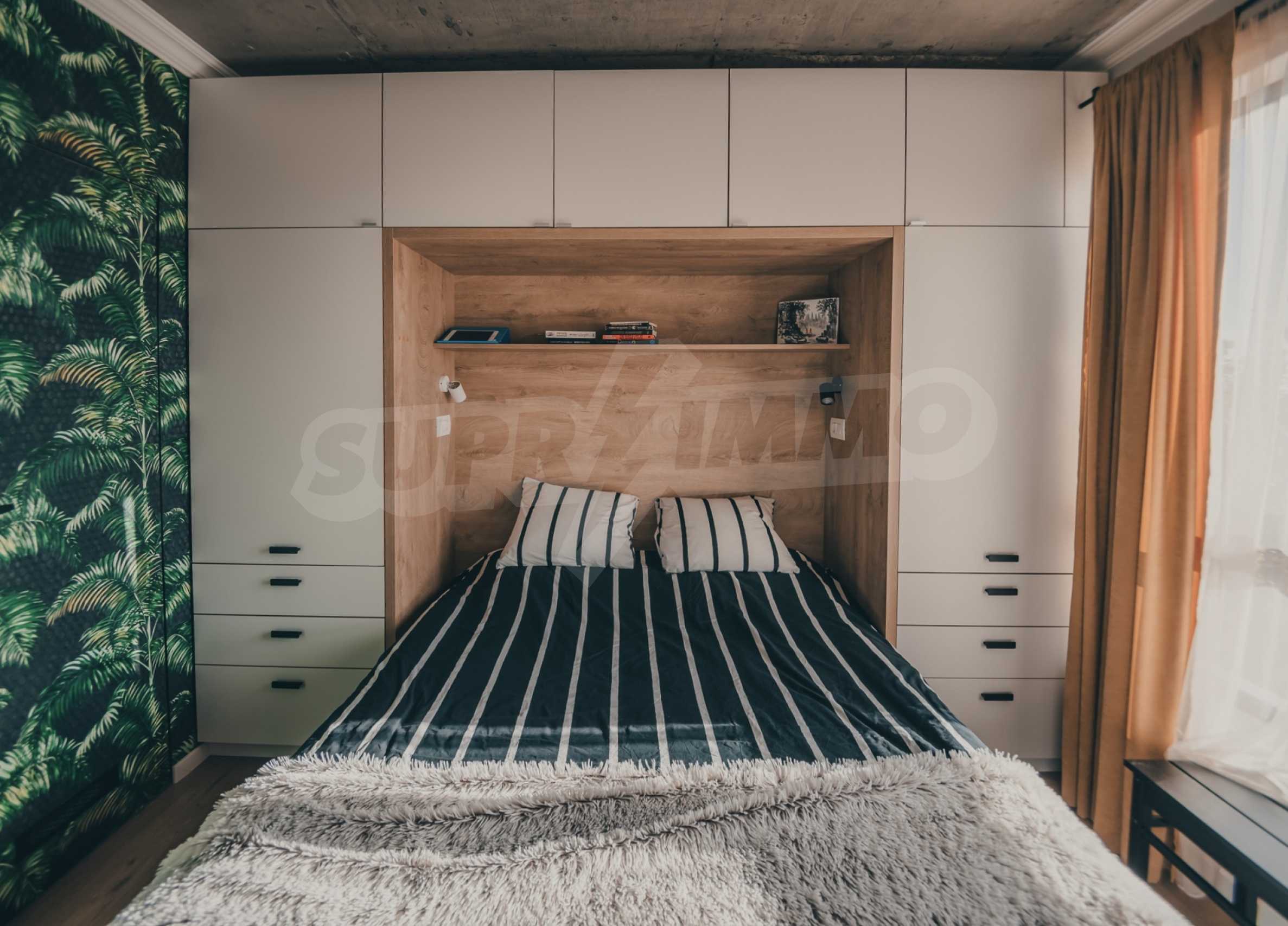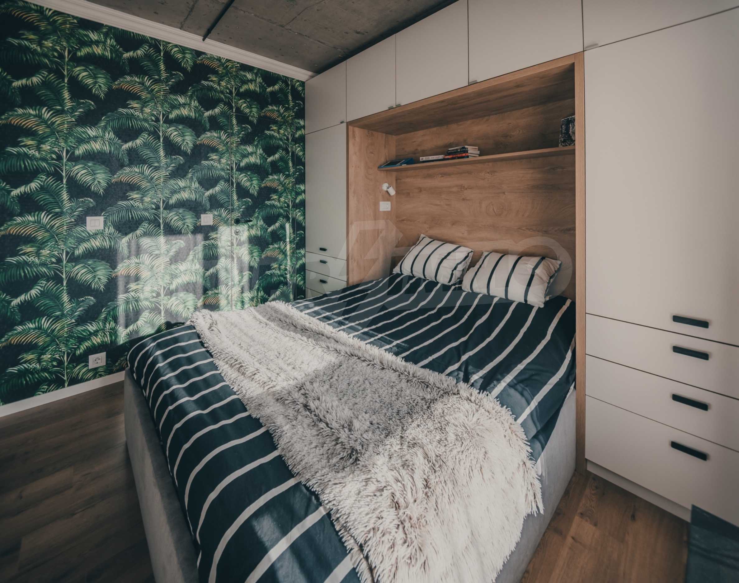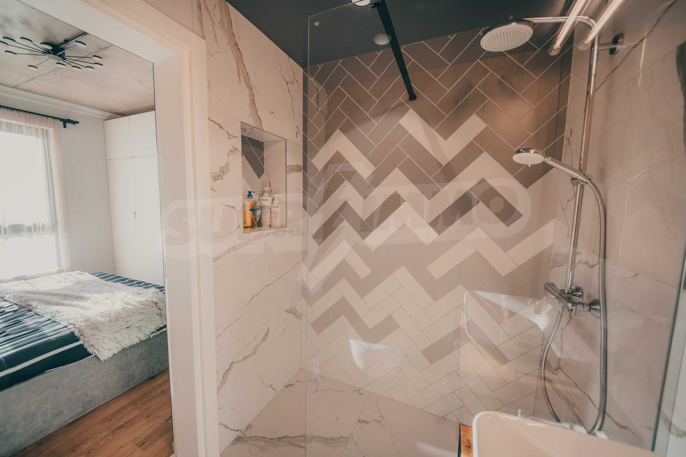 The modern apartment is located on the fifth floor of eight, it is average, with favorable exposure - south. From its living room there is an exit to a terrace of 17.32 m2.