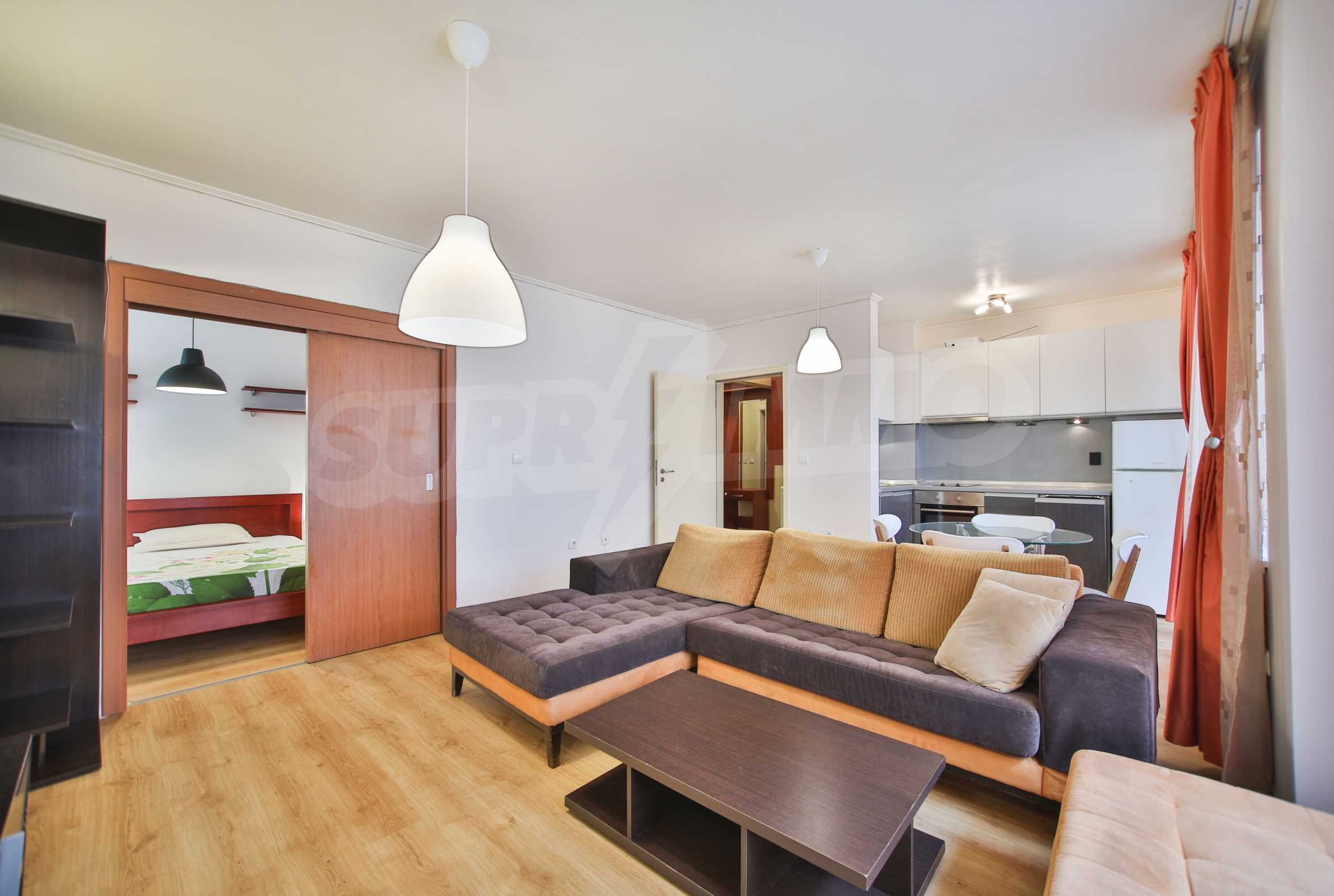 Finishing works and furniture: floor - marble and laminate flooring; walls - latex; kitchenette - dishwasher, oven, extractor, hob and refrigerator with freezer; dining table and chairs, sofas, bedroom set, large wardrobe, extra large closet and storage space in the hallway and much more; an electric boiler has been installed for periods of prophylaxis; WTO.