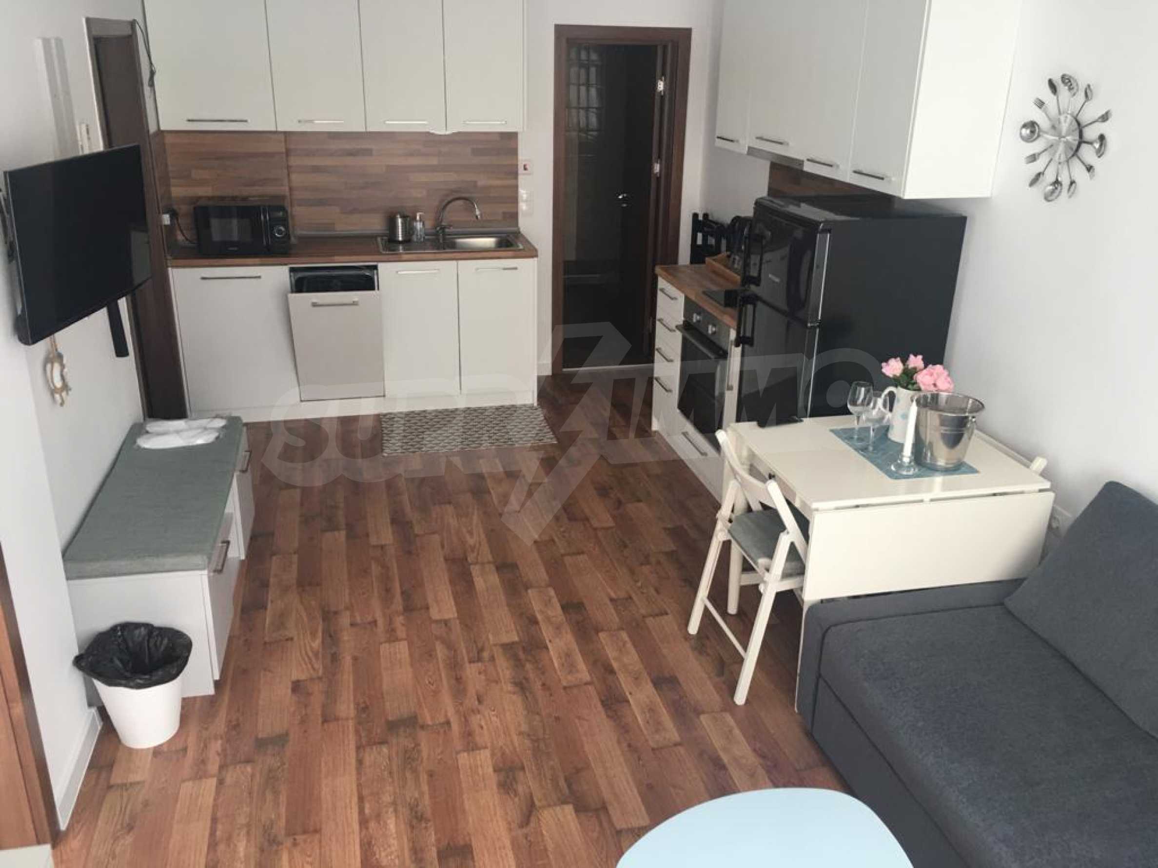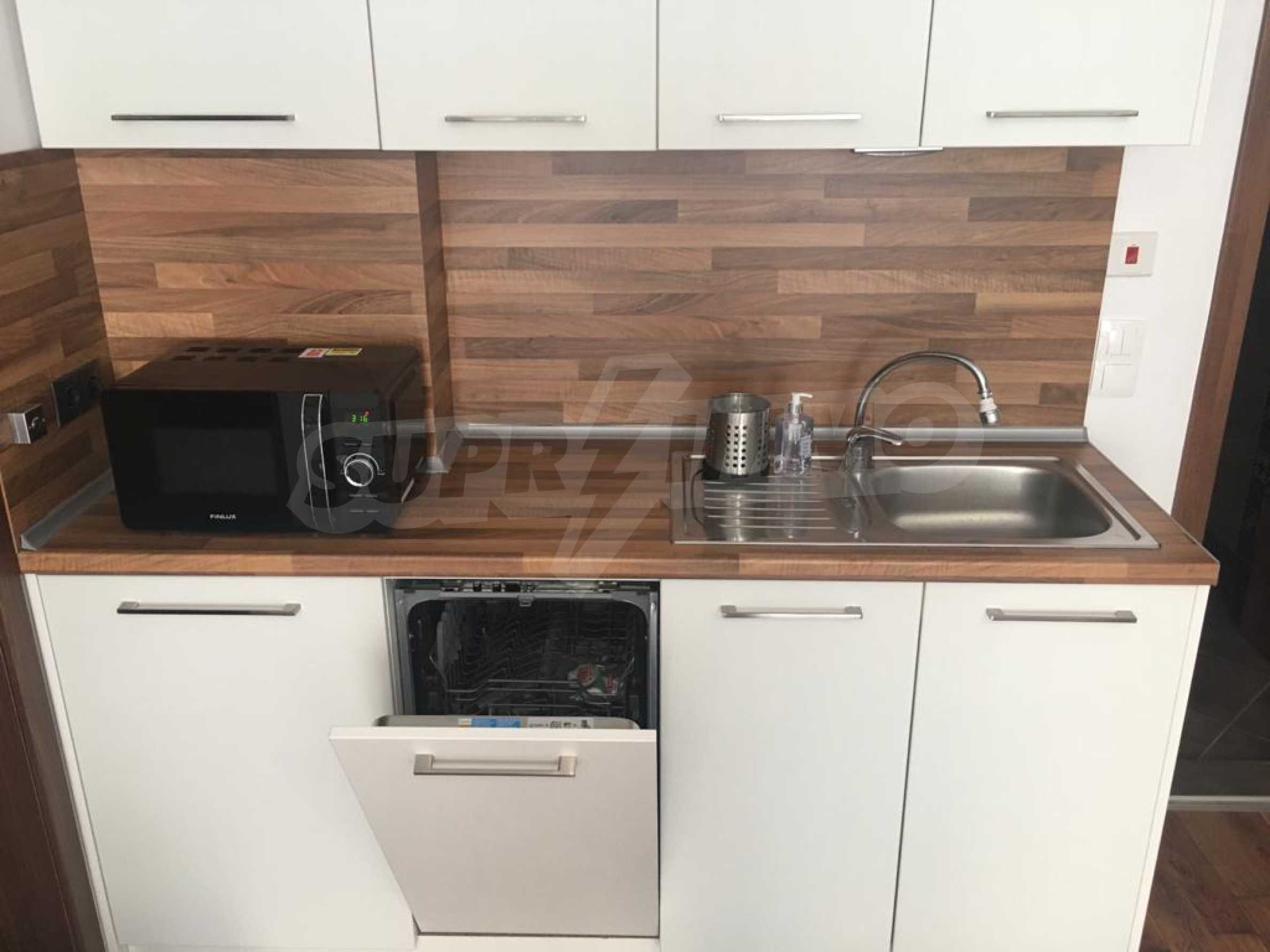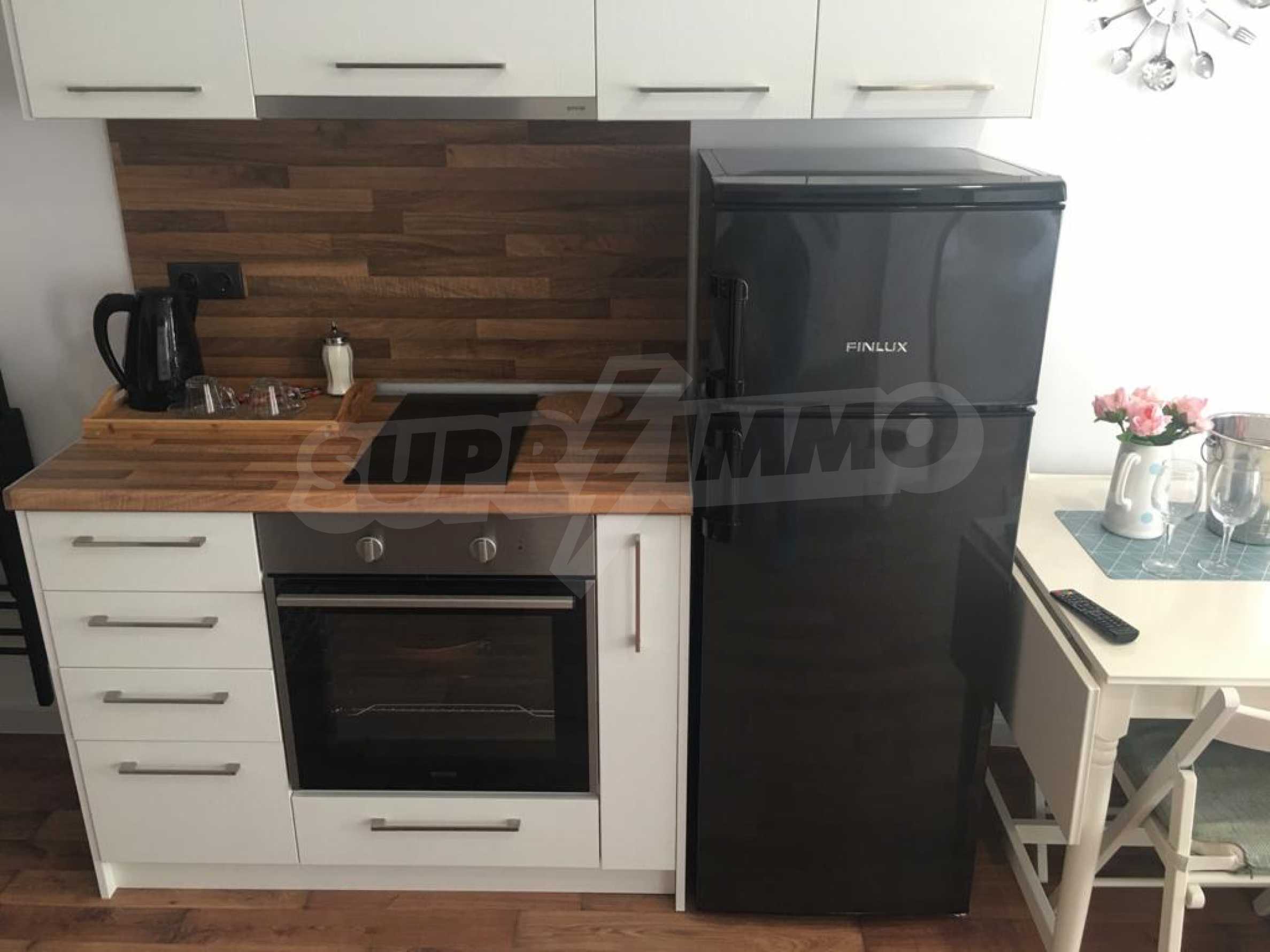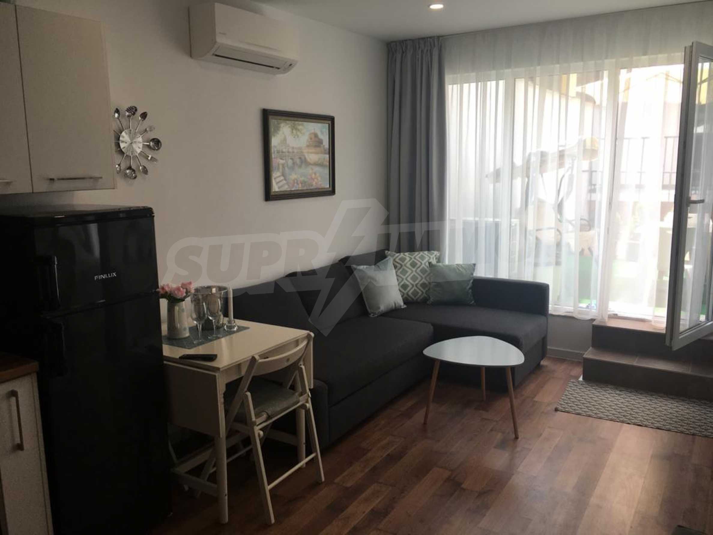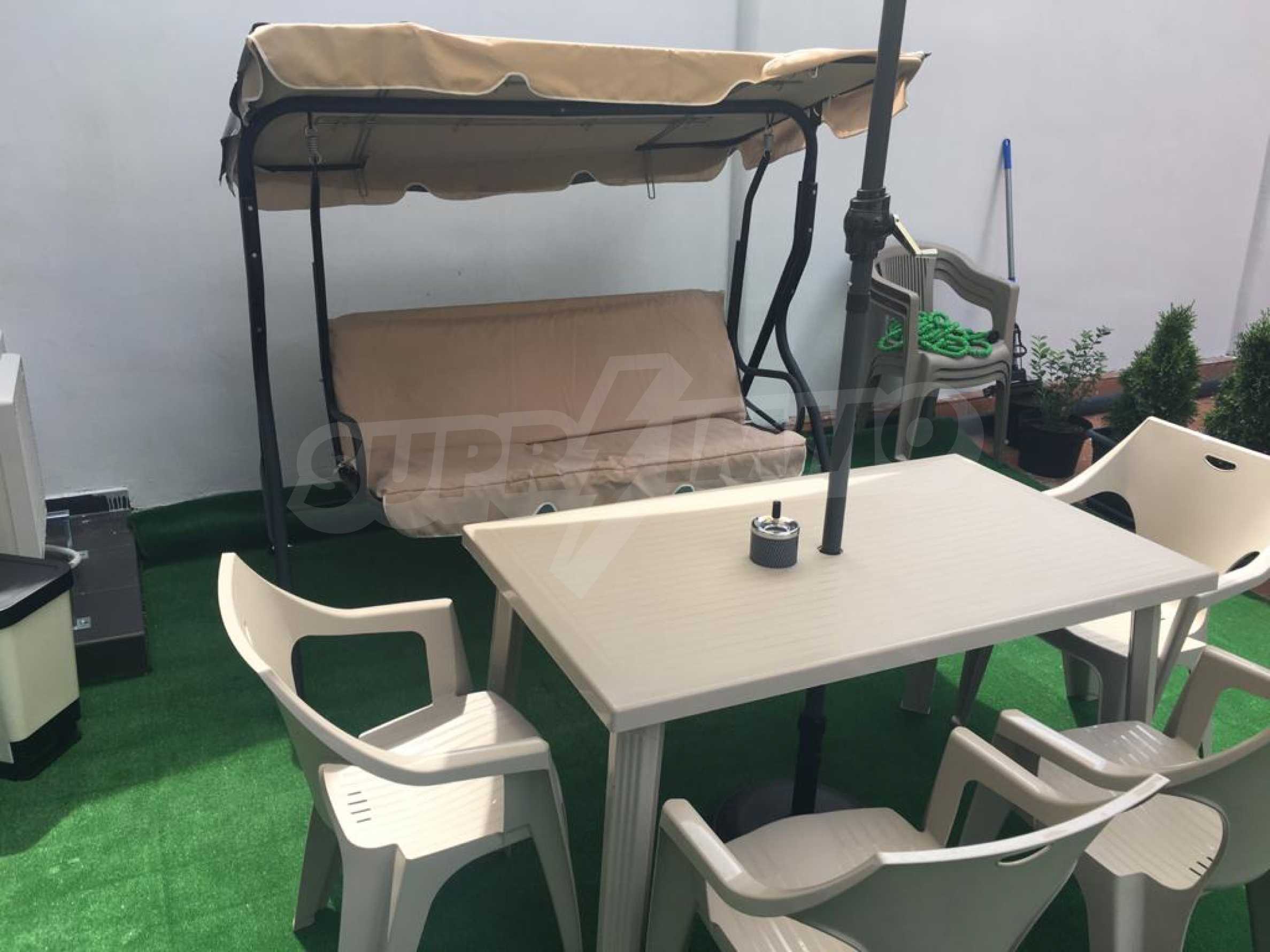 The apartment is located on the 2nd floor of a new building and has an area of 55 m2. The property is nicely furnished and is fully equipped with all necessary appliances. It consists of a bedroom, a combined bathroom, a kitchenette with a dining table and a living room, a spacious terrace with an area of 90 m2.