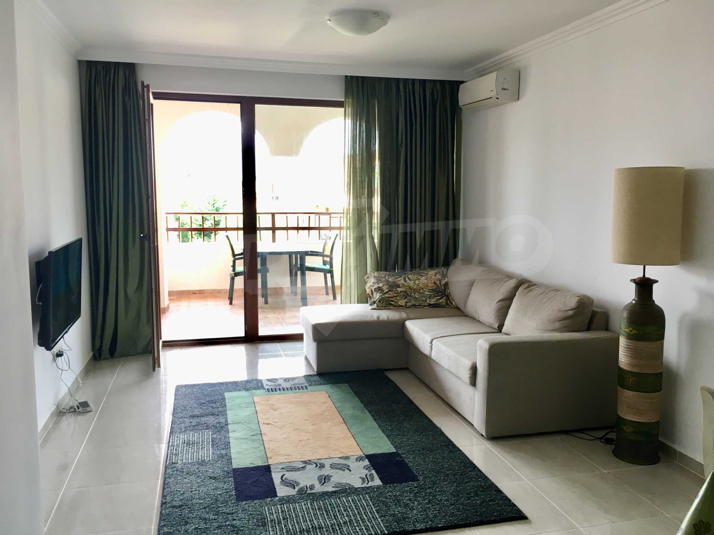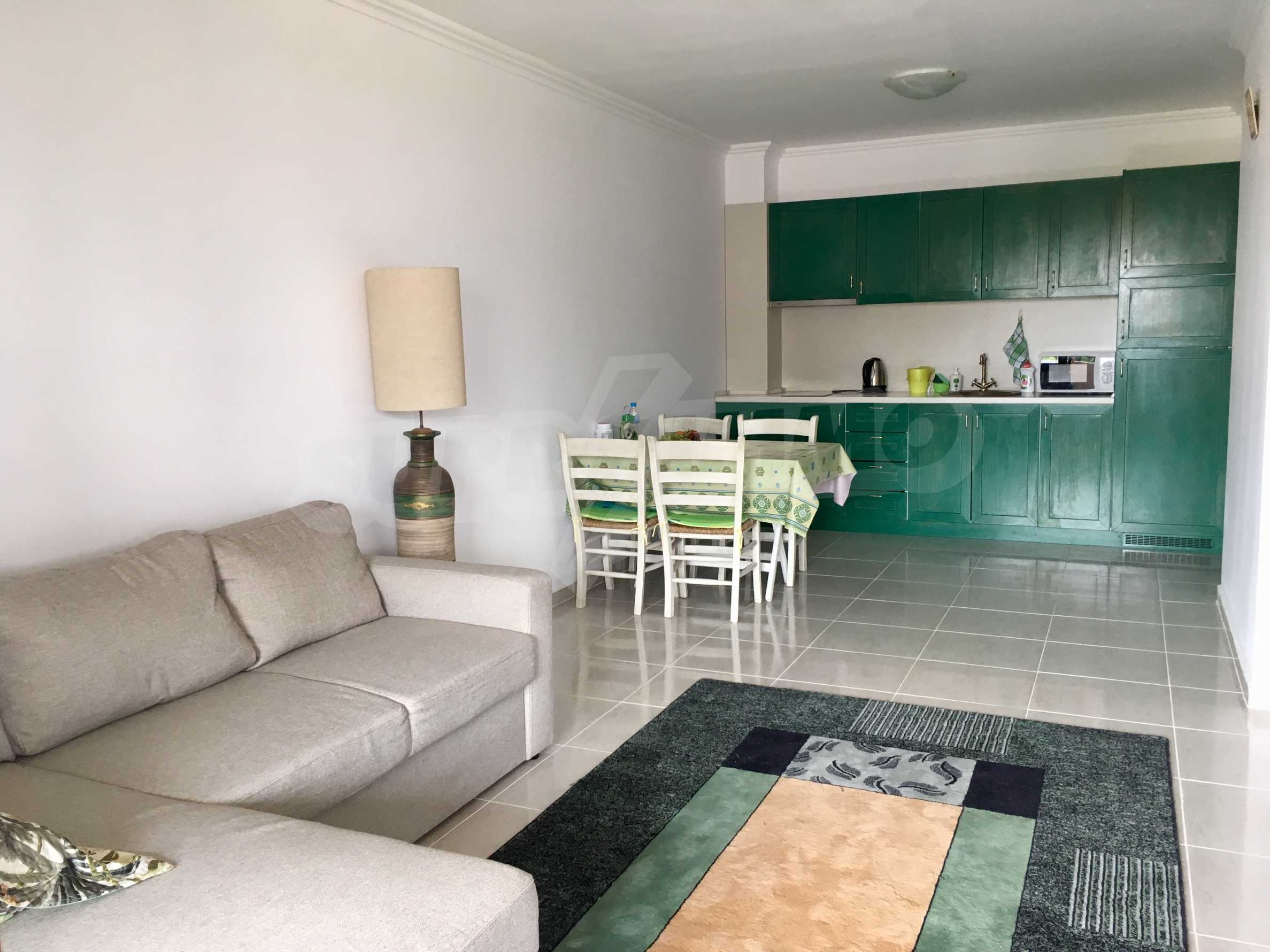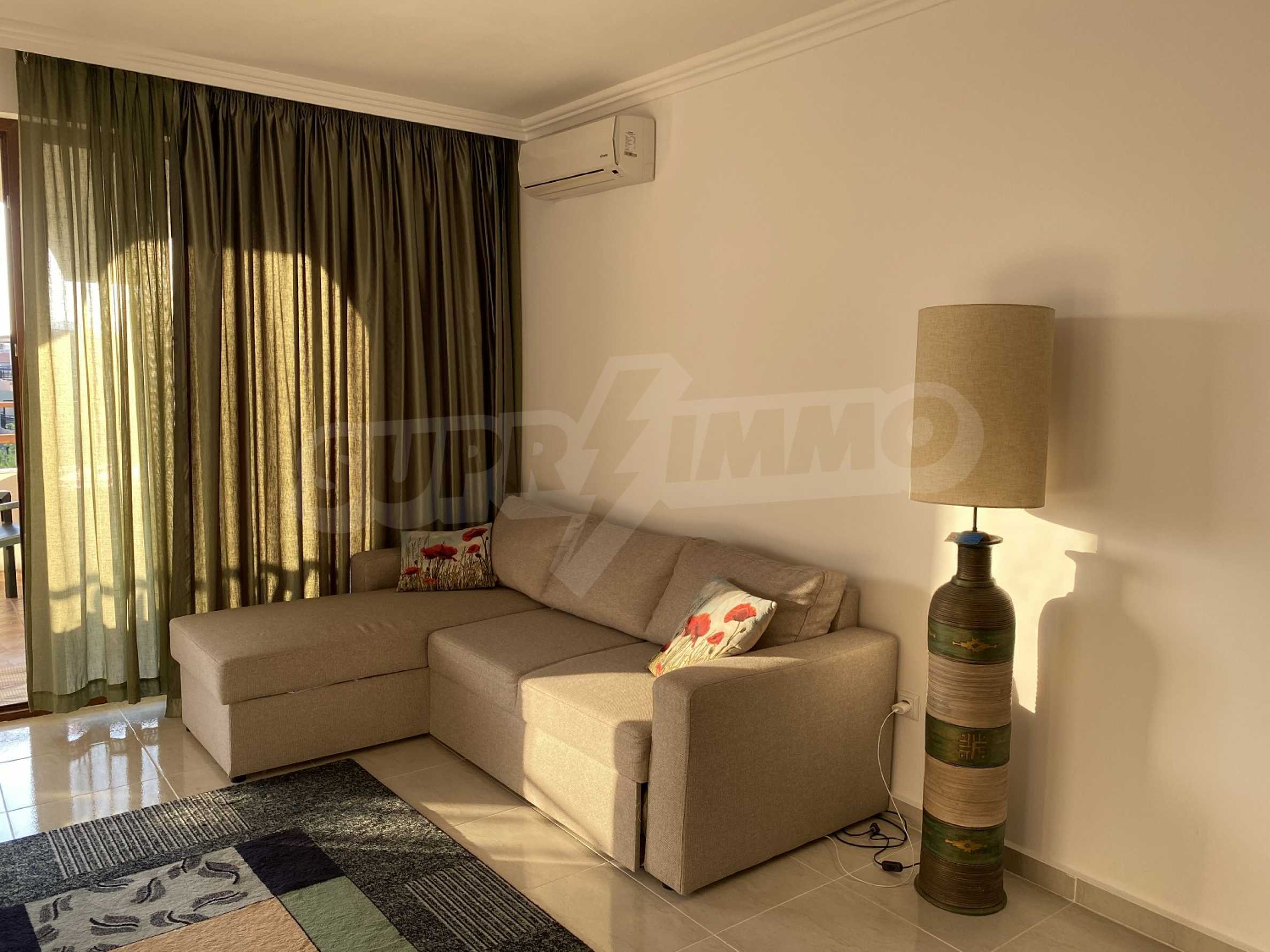 We present to you a panoramic one-bedroom apartment with beautiful spacious terraces for sale in the heart of Saint Vlas.