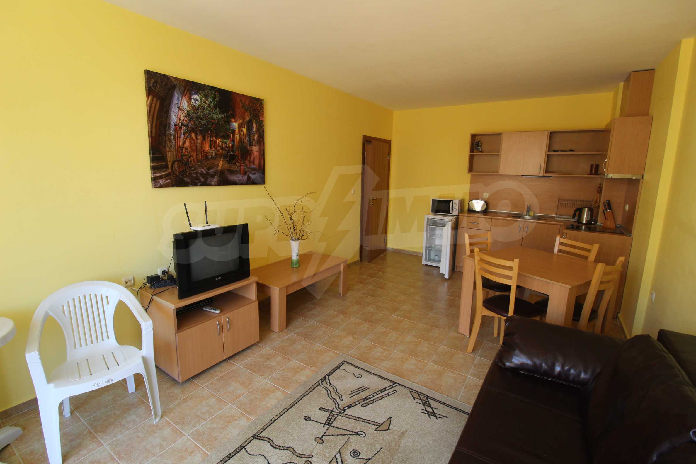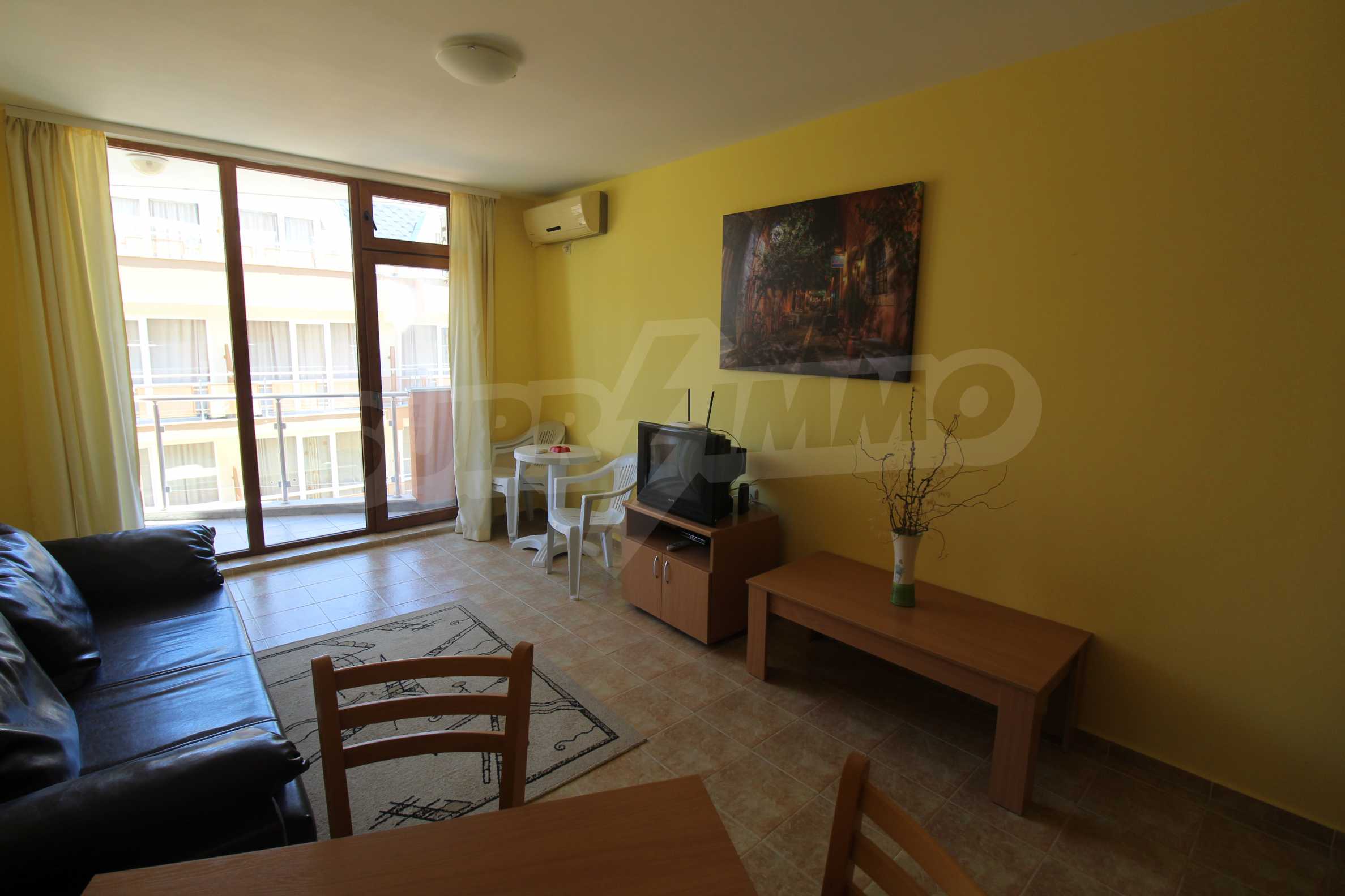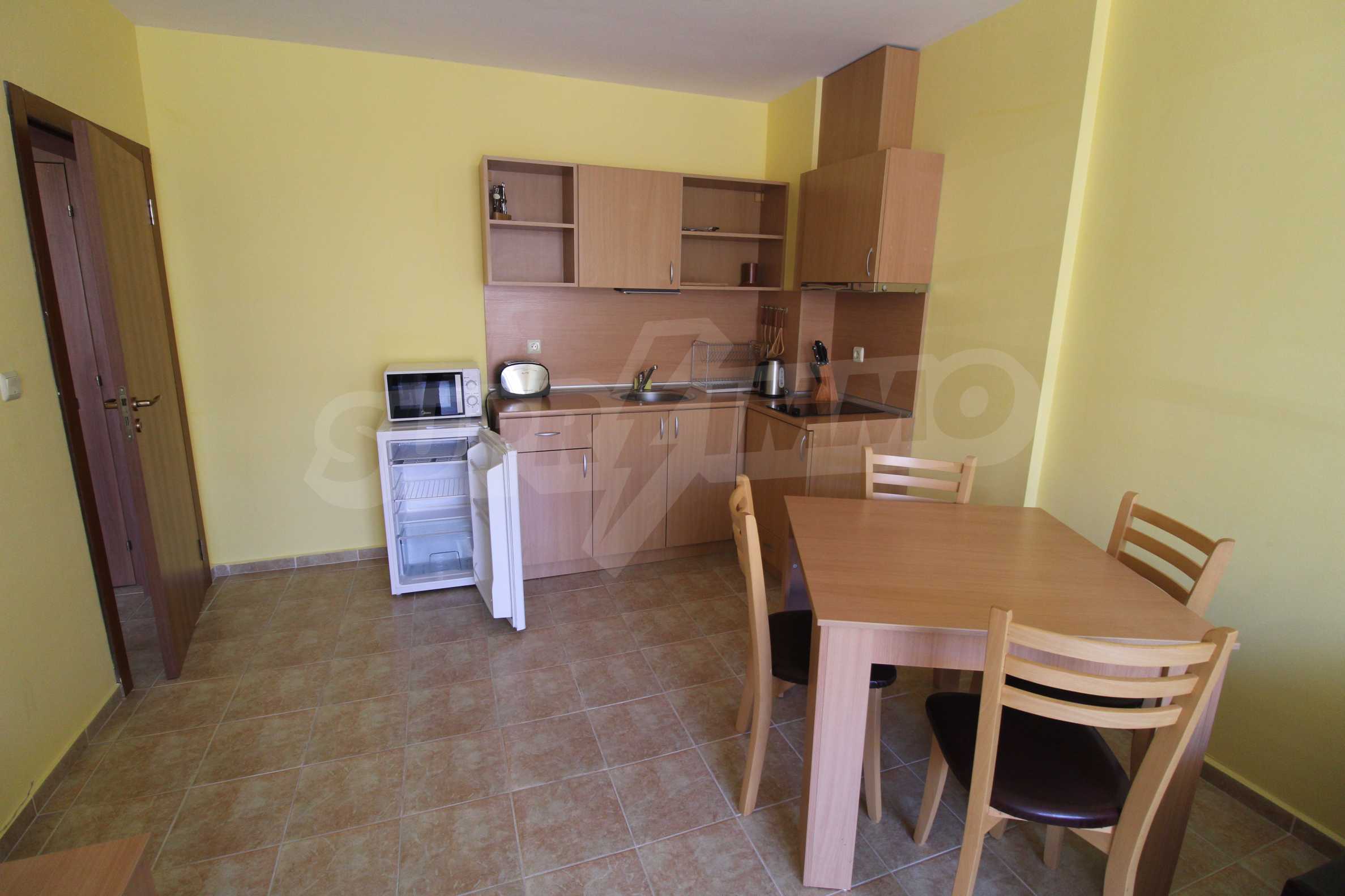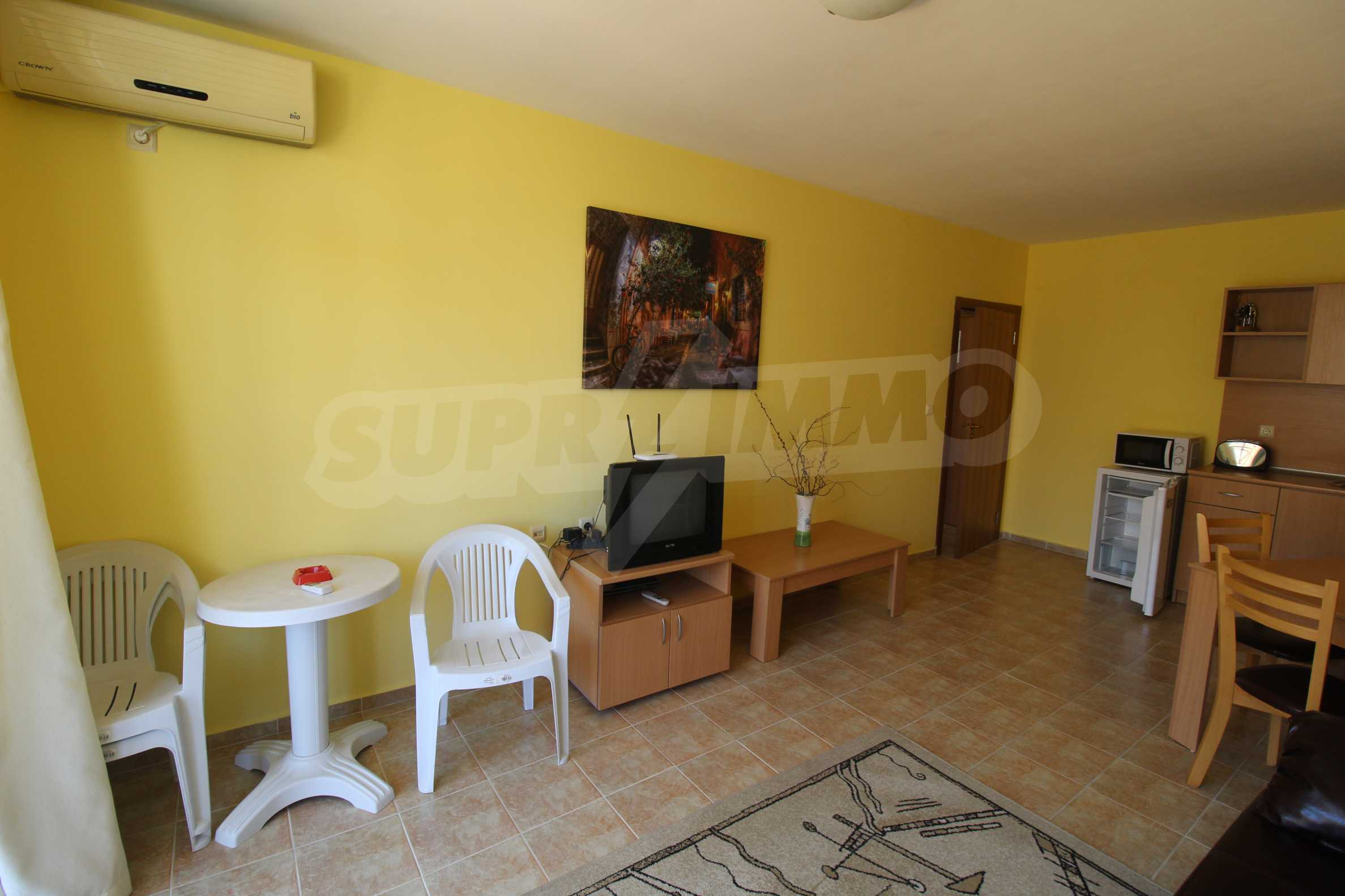 The furnished apartment we present for sale offers a cozy bedroom, equipped kitchen and a balcony overlooking the sea. The property is located on the 3rd floor of a hotel complex, only 200 meters from the beach of Ravda.