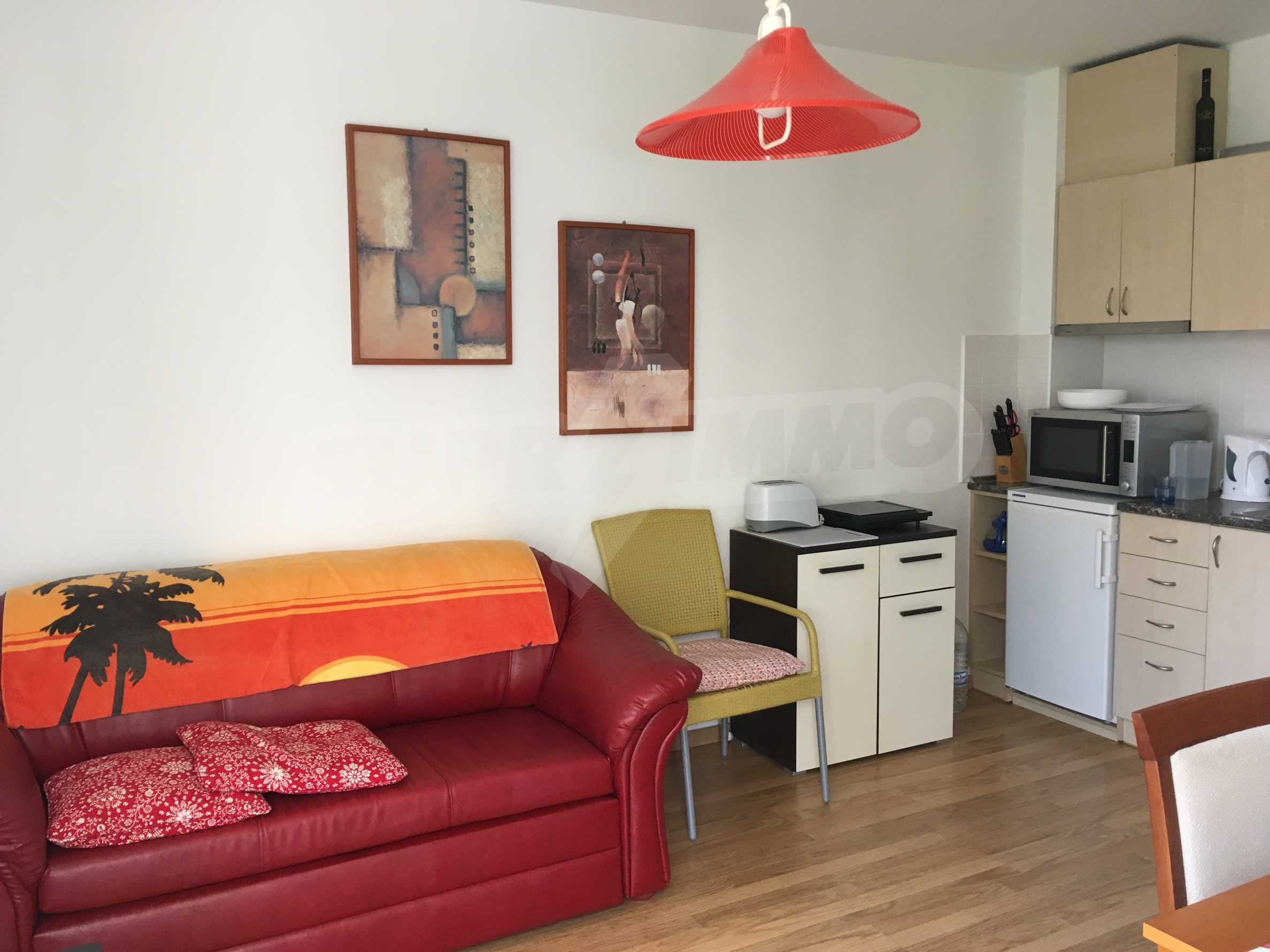 The furnished one-bedroom property that we present to you for sale is located in a complex with a swimming pool and amenities, close to the beach of Saint Vlas.