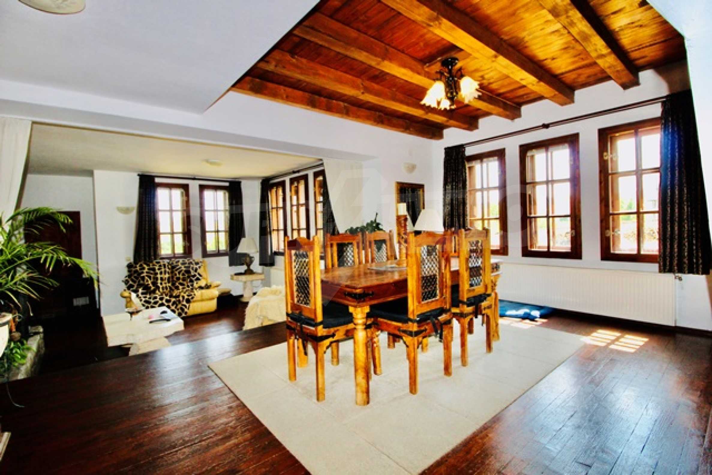 The property is supplied with beautiful furniture made of natural materials - solid wood, stone and metal, in the traditional Bulgarian style. The windows and interior doors are also made of wood. The floors are with ceramic tiles and wood of very good quality.