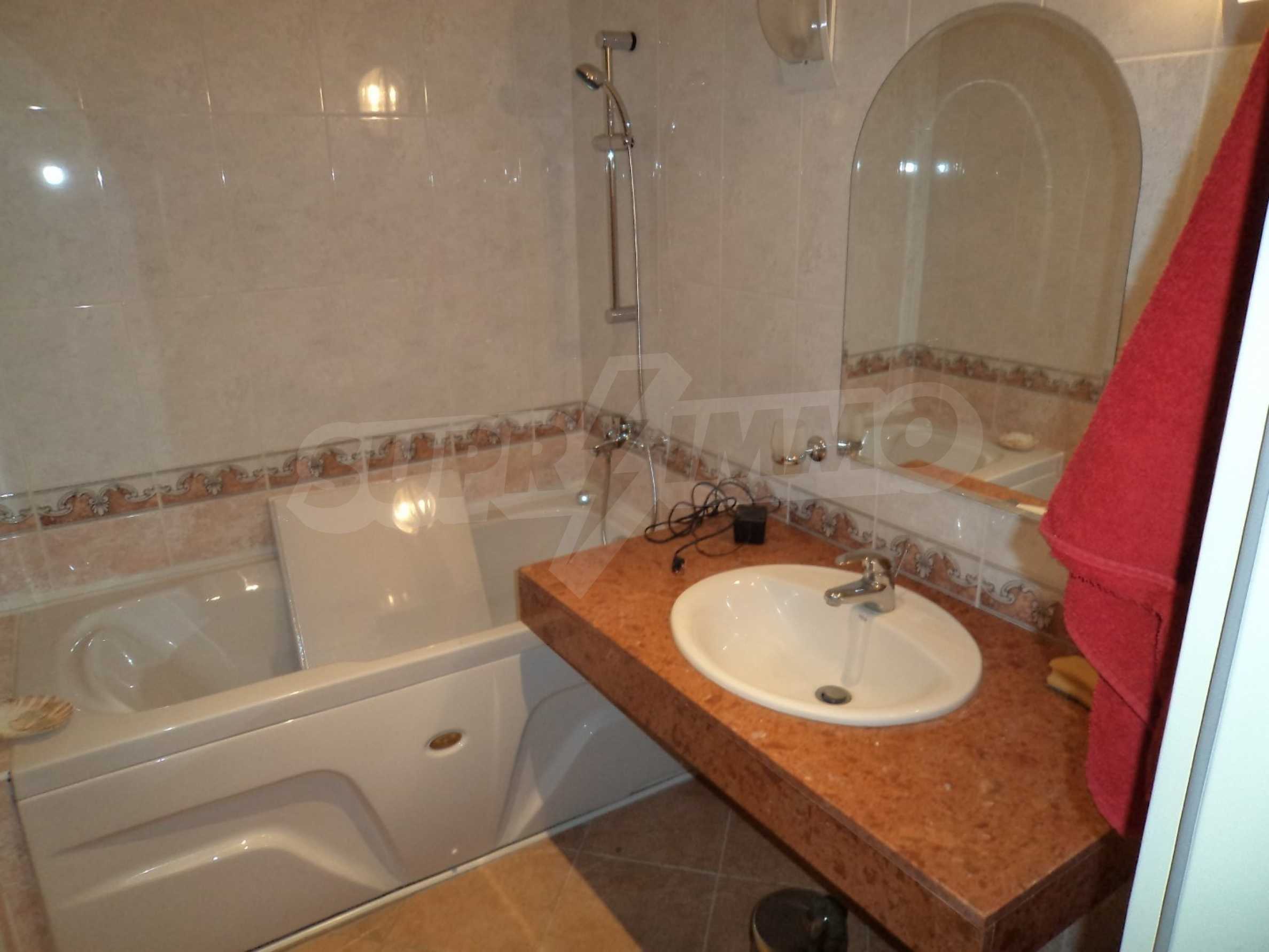 The apartment is offered with quality flooring, walls - latex, PVC windows, equipped bathroom and kitchen, furniture, air conditioning and TV.