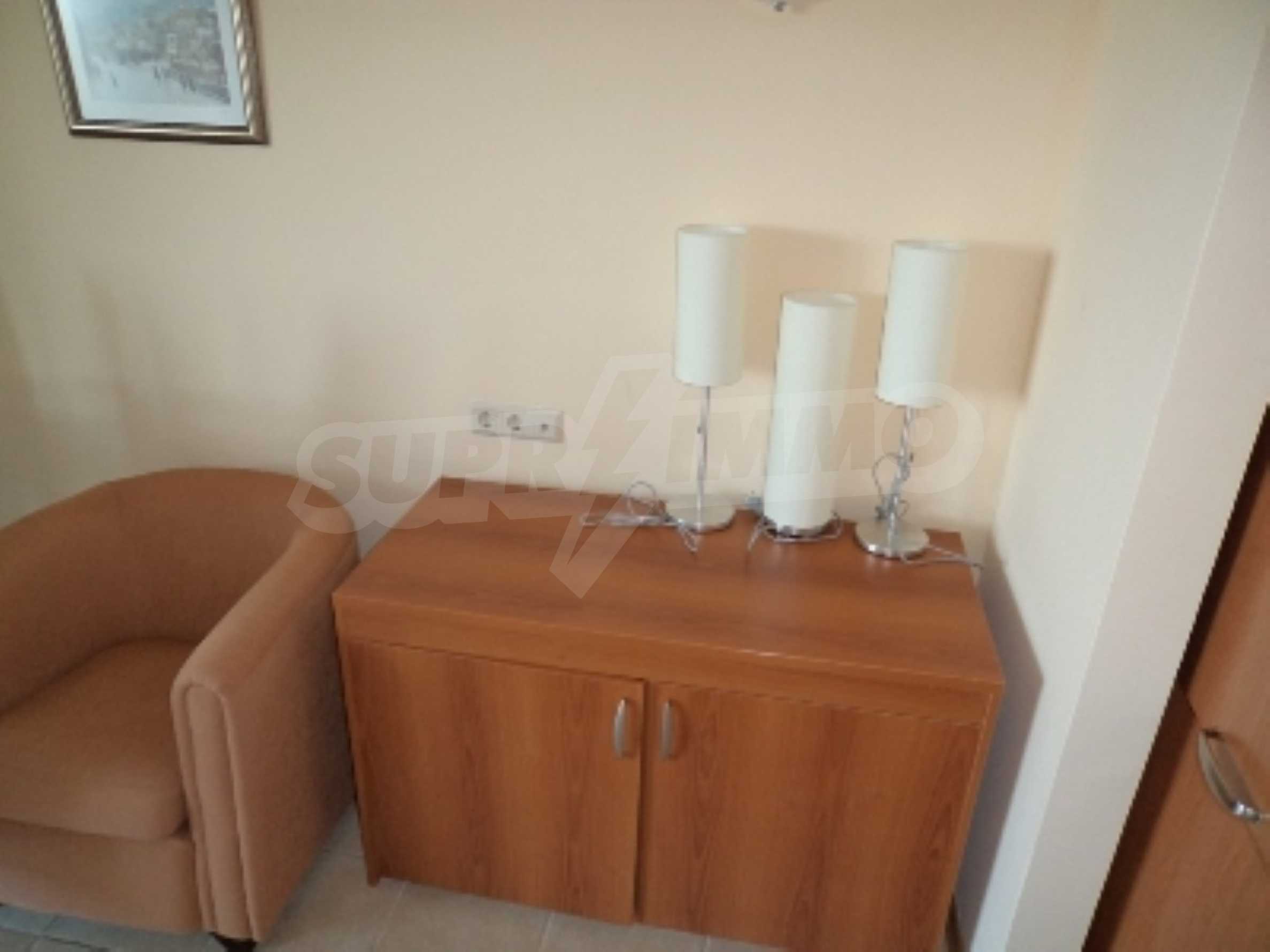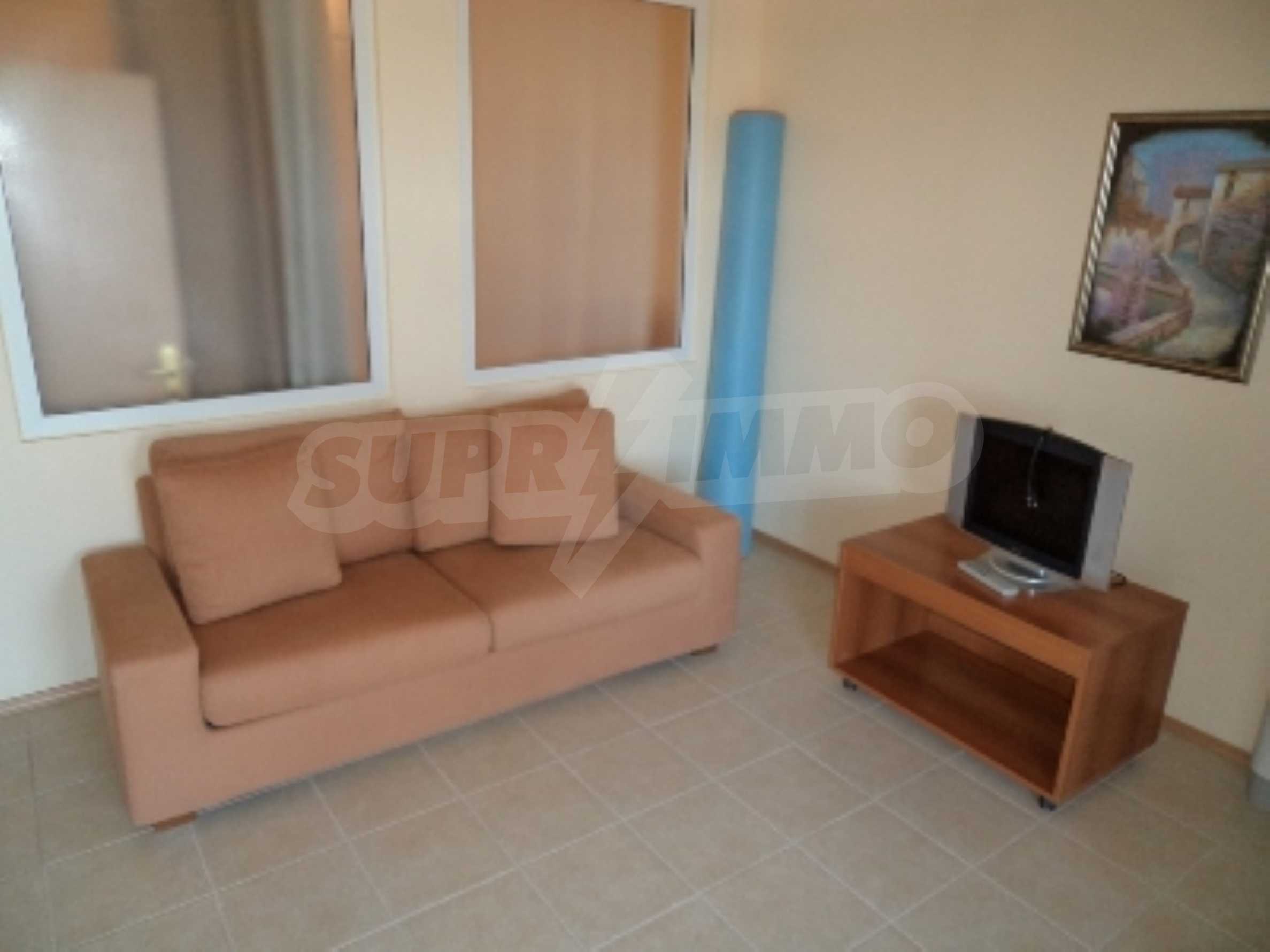 We present for sale a first class, fully furnished one bedroom apartment, located on the 5th floor in an elite complex on the first line of the sea in the town of Pomorie.