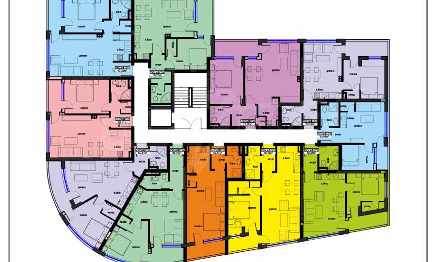 The apartments for sale are studios, one-bedroom and two-bedroom apartments, finished "turnkey", without furniture: