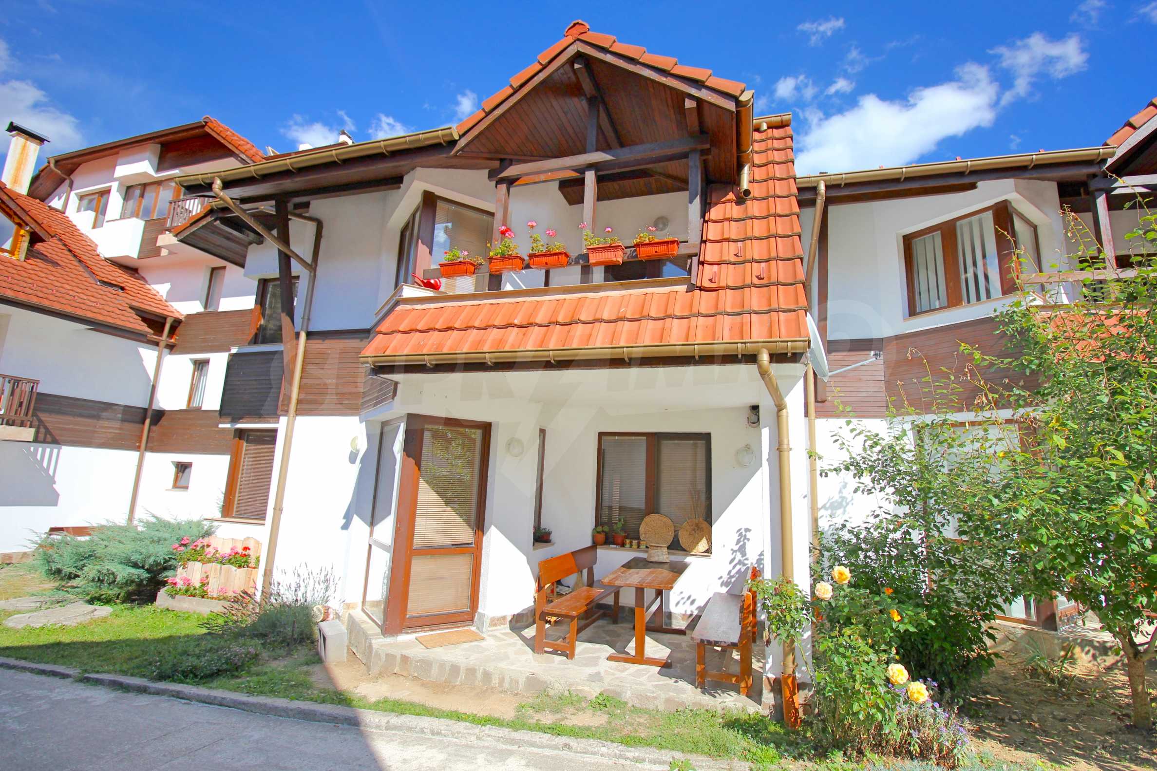 We are glad to offer this fully furnished terraced house on two floors located in a gated complex in the village of Mala Tsarkva. The apartment has a total area of 170.83 sq.m, facing west/east and is characterized by a comfortable living environment and functional layout: