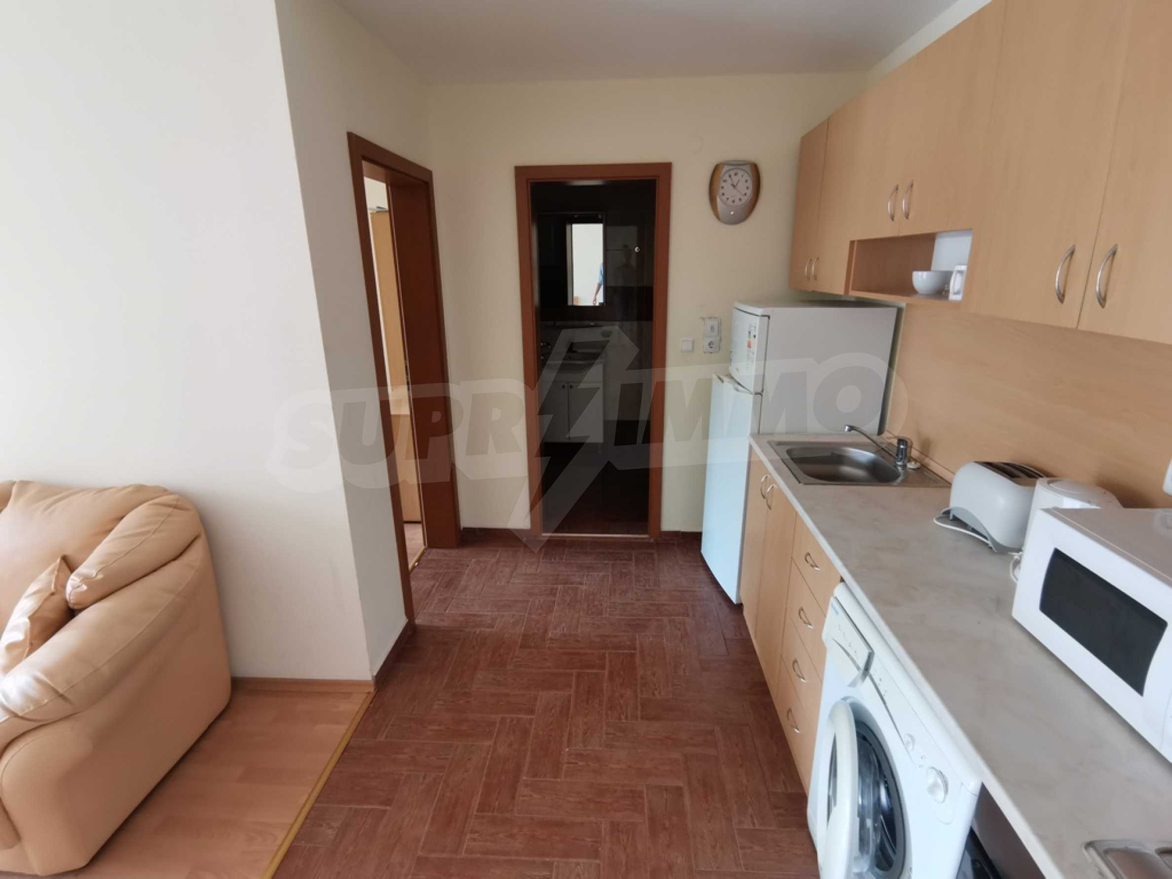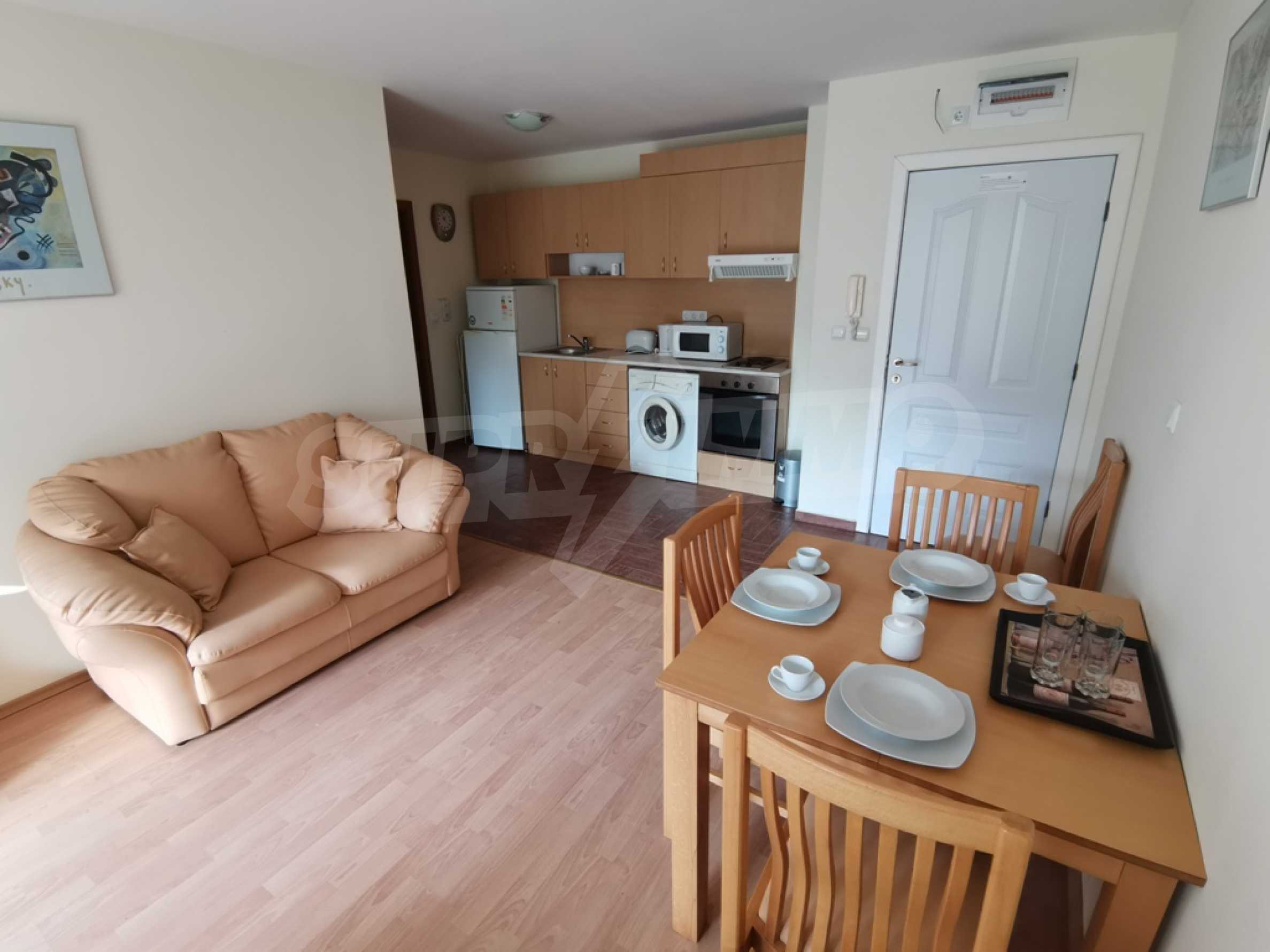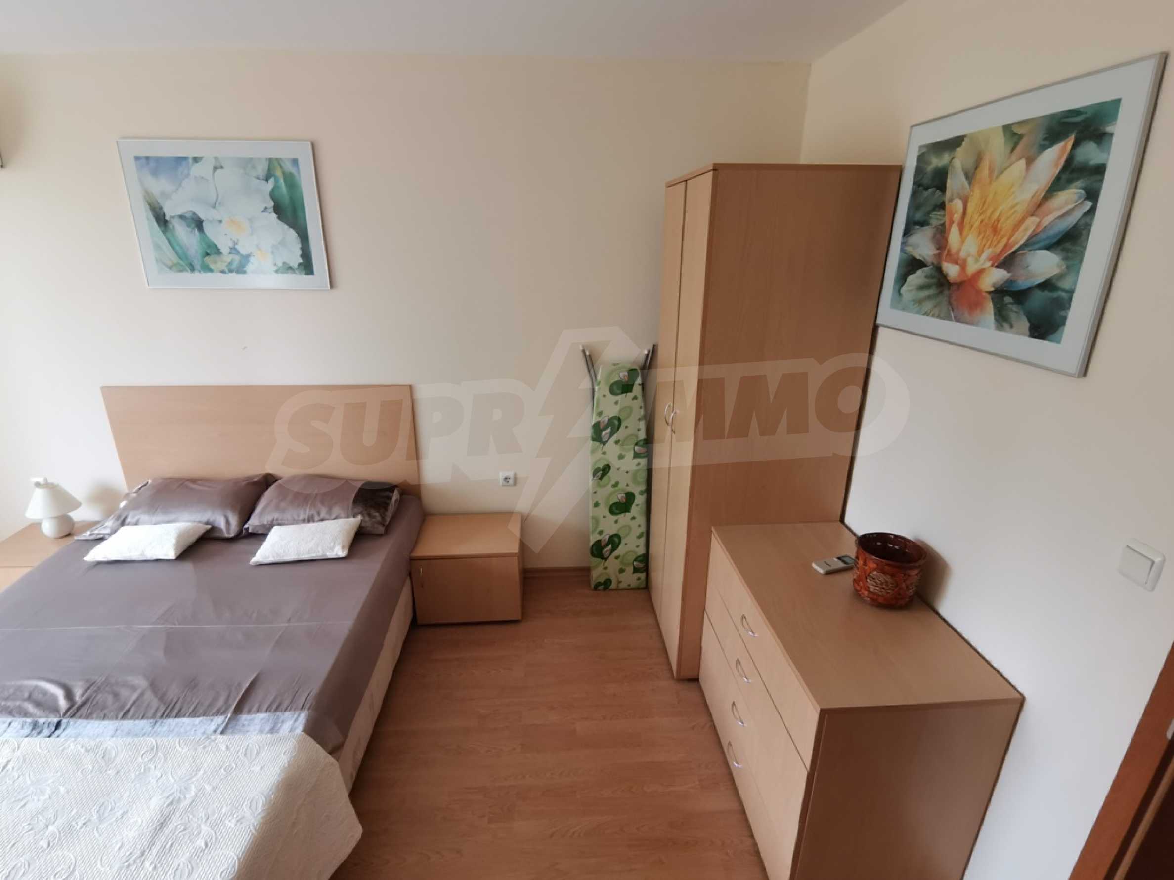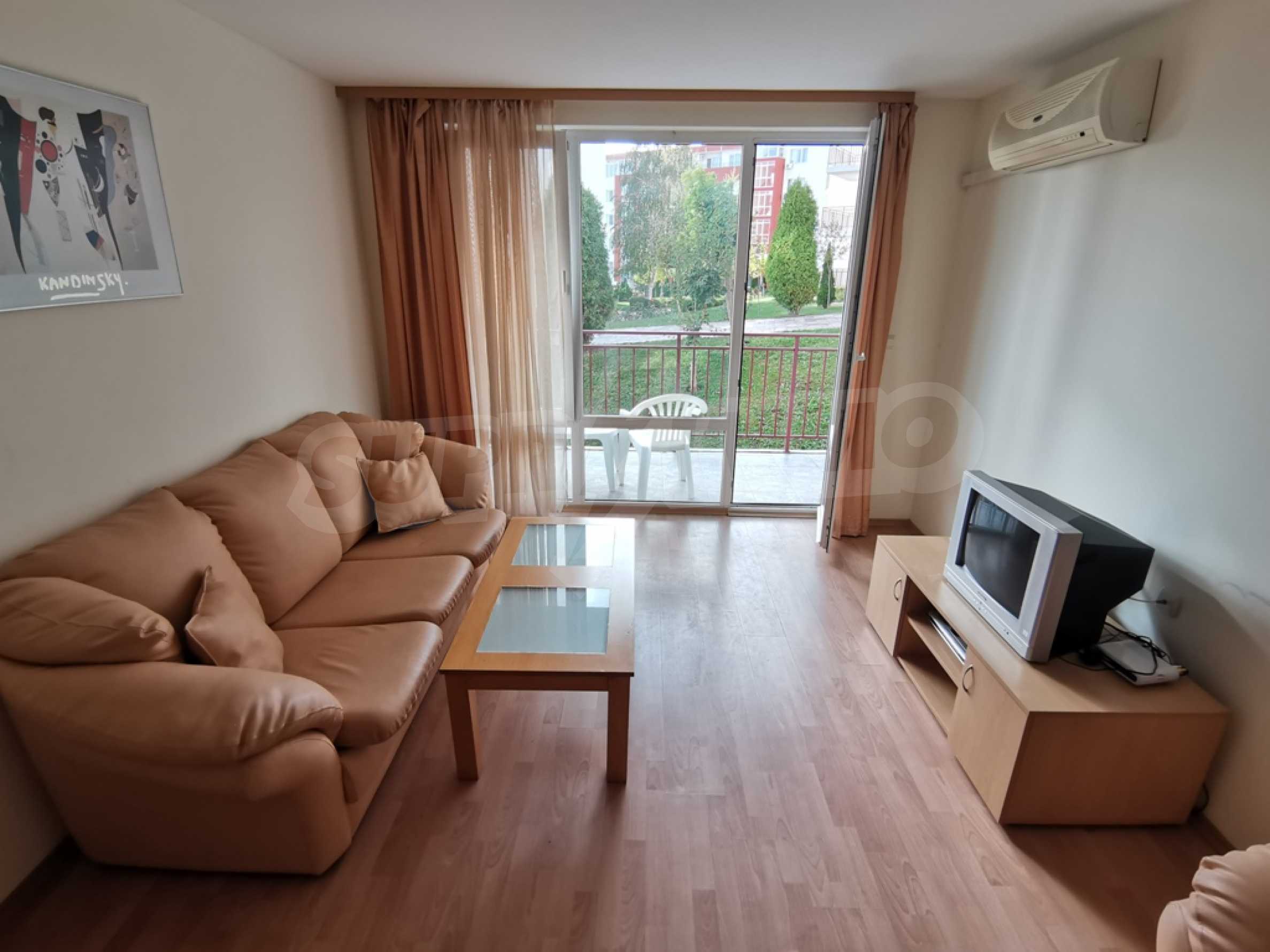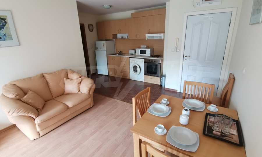 The furnished one-bedroom apartment we present to you for sale is located on a high first floor in an attractive complex near the beach of Saint Vlas.