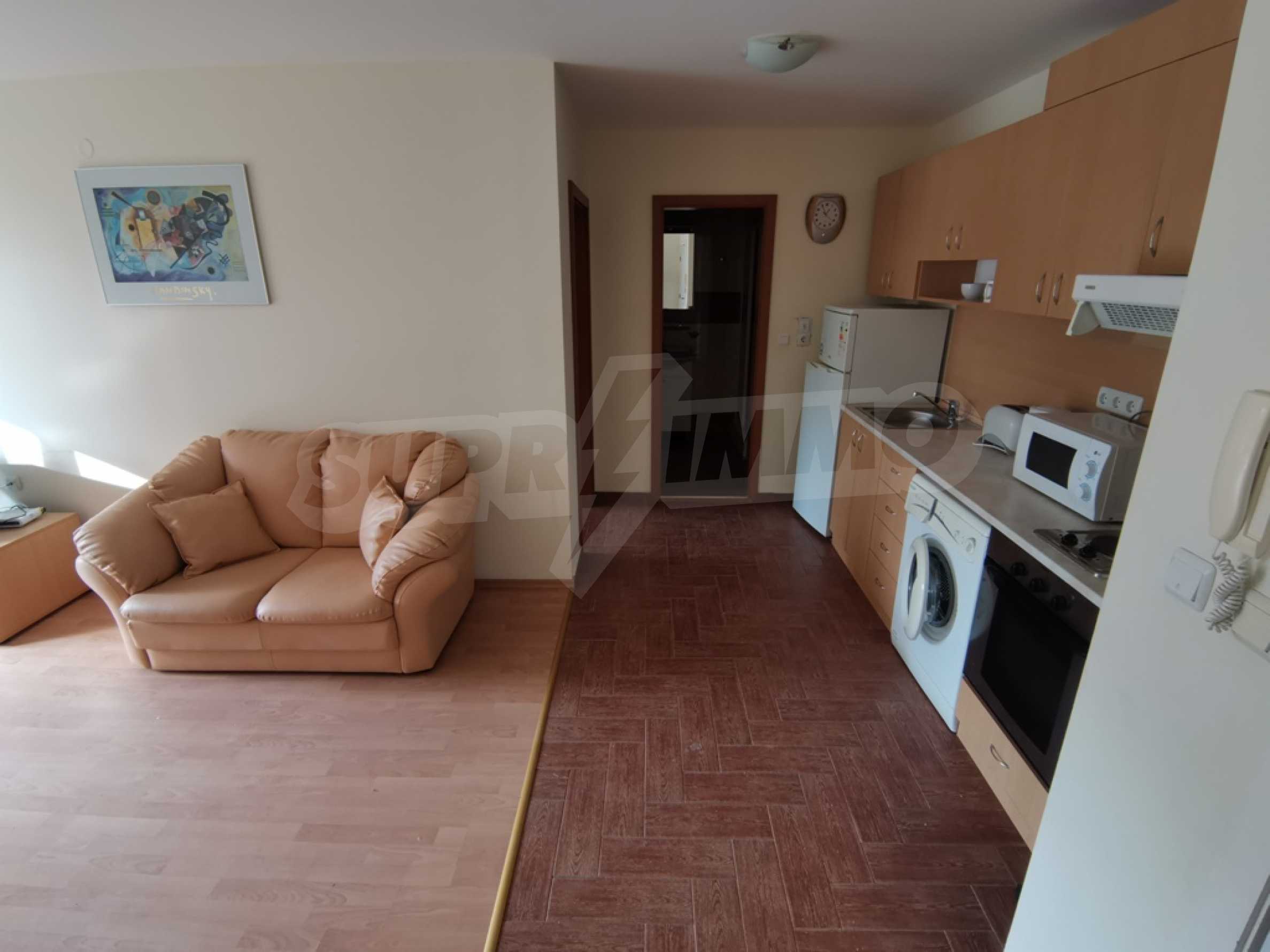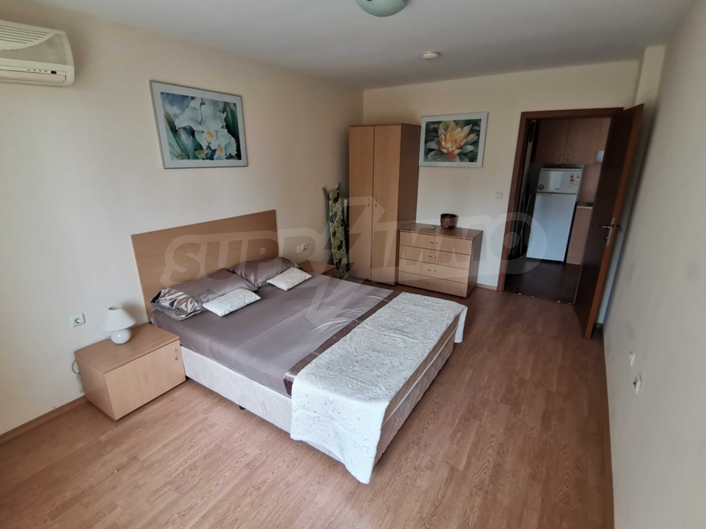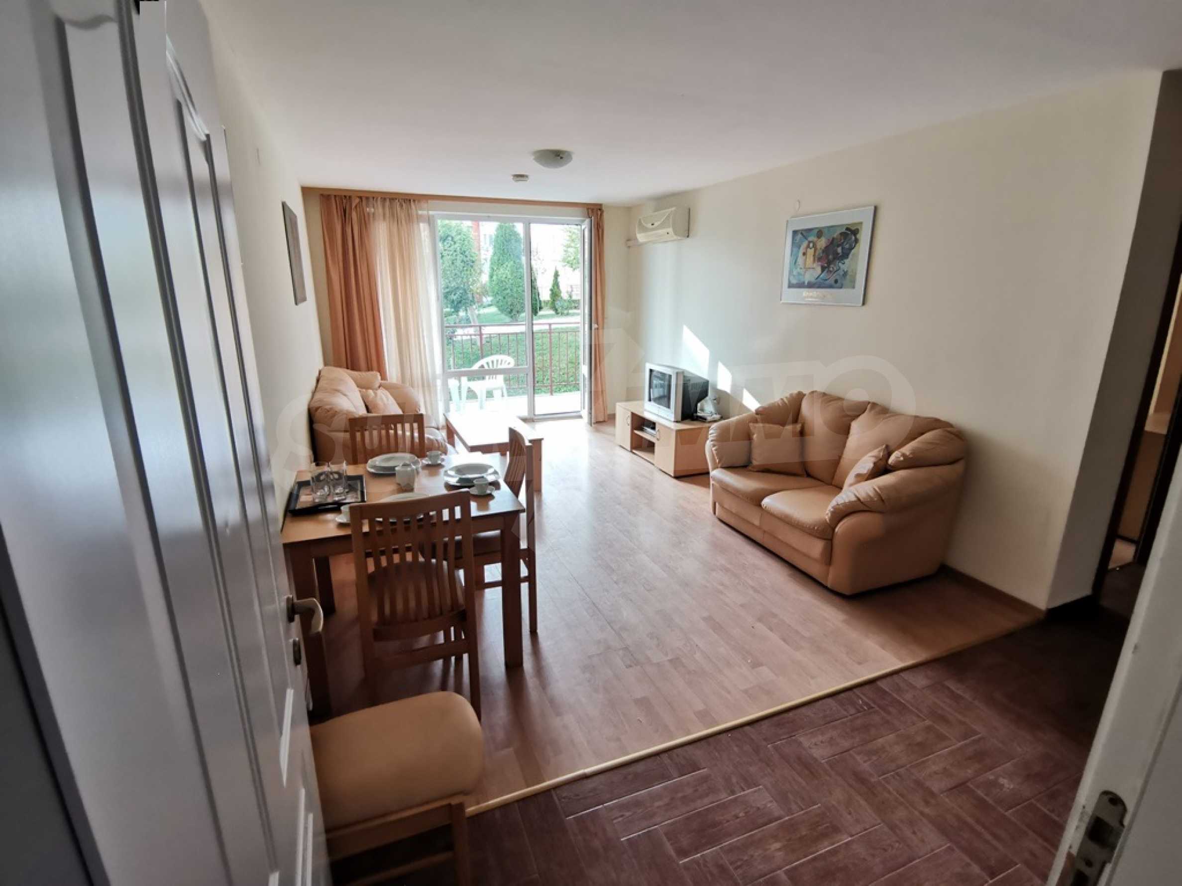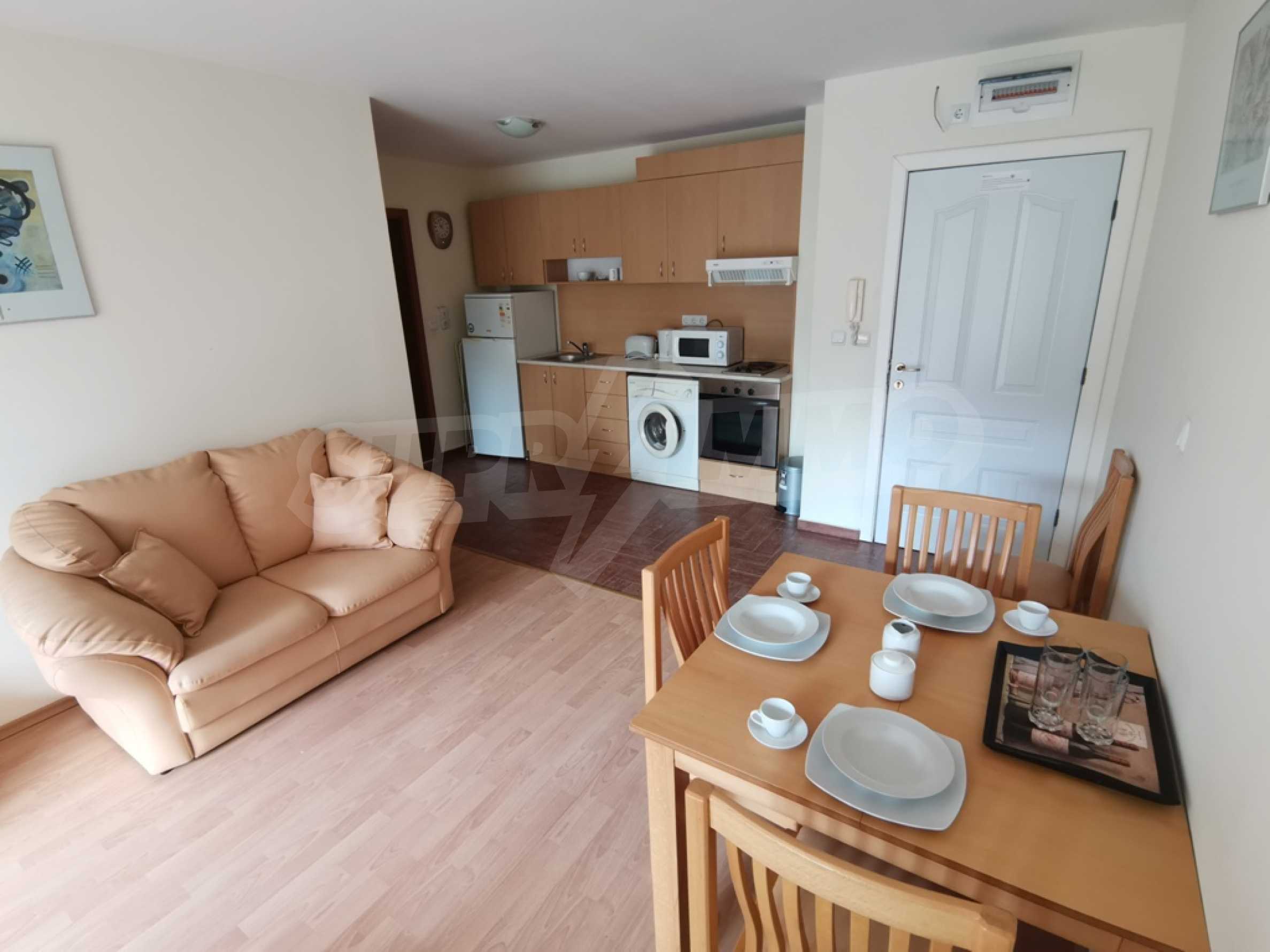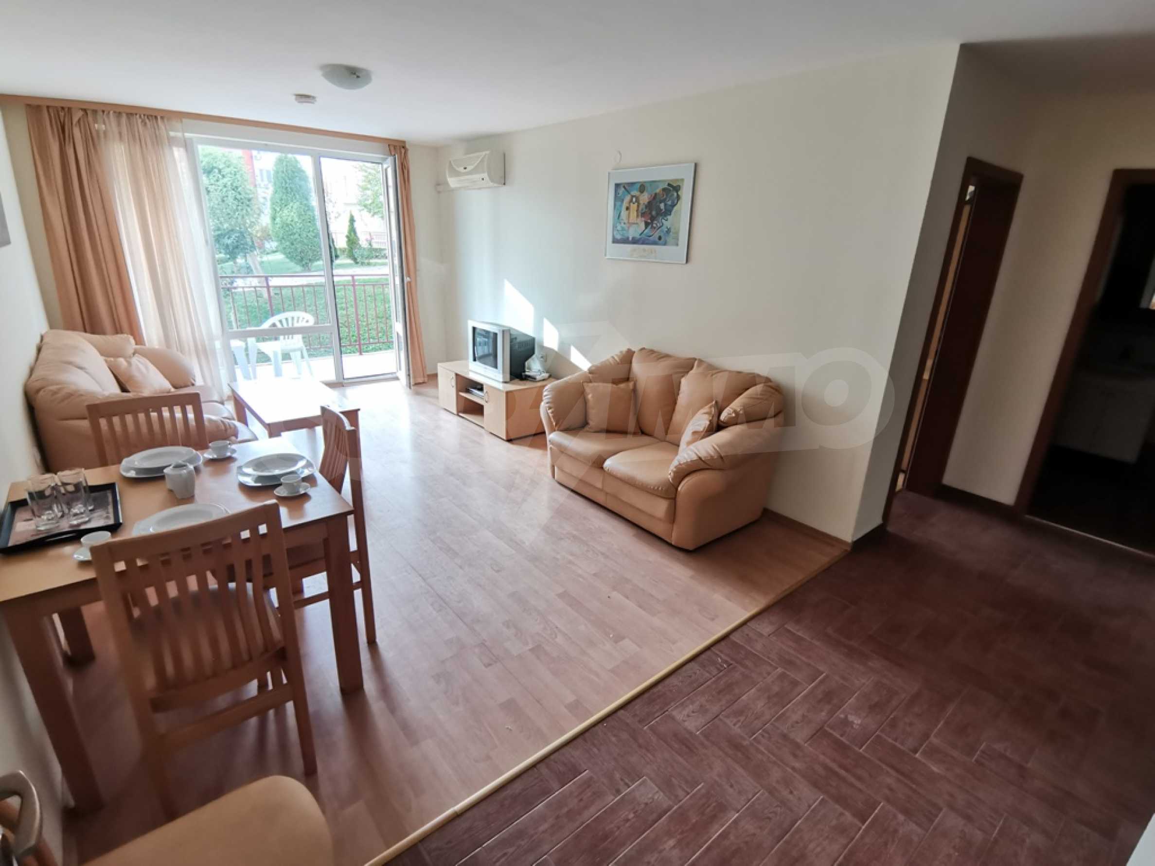 The furnished one-bedroom apartment we present to you for sale is located on a high first floor in an attractive complex near the beach of Saint Vlas.