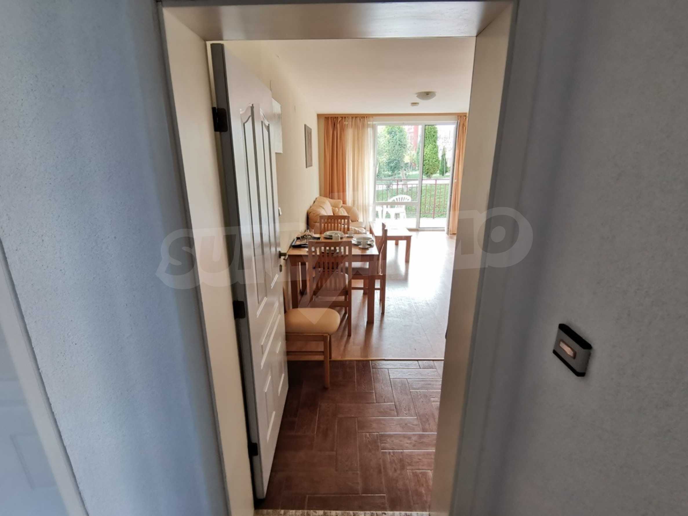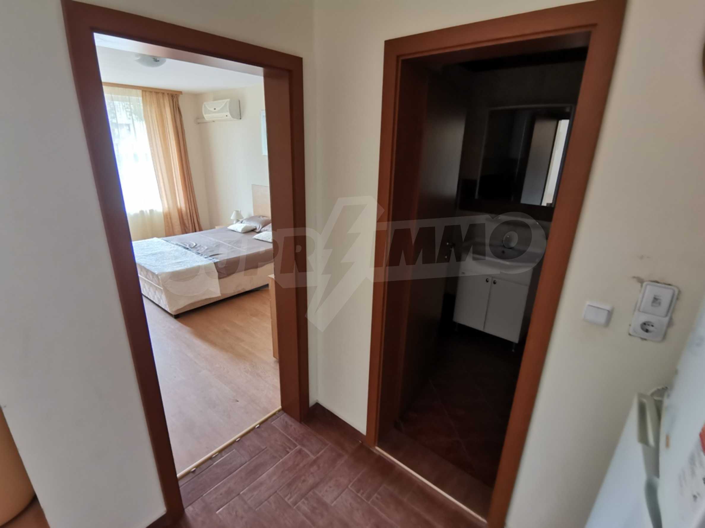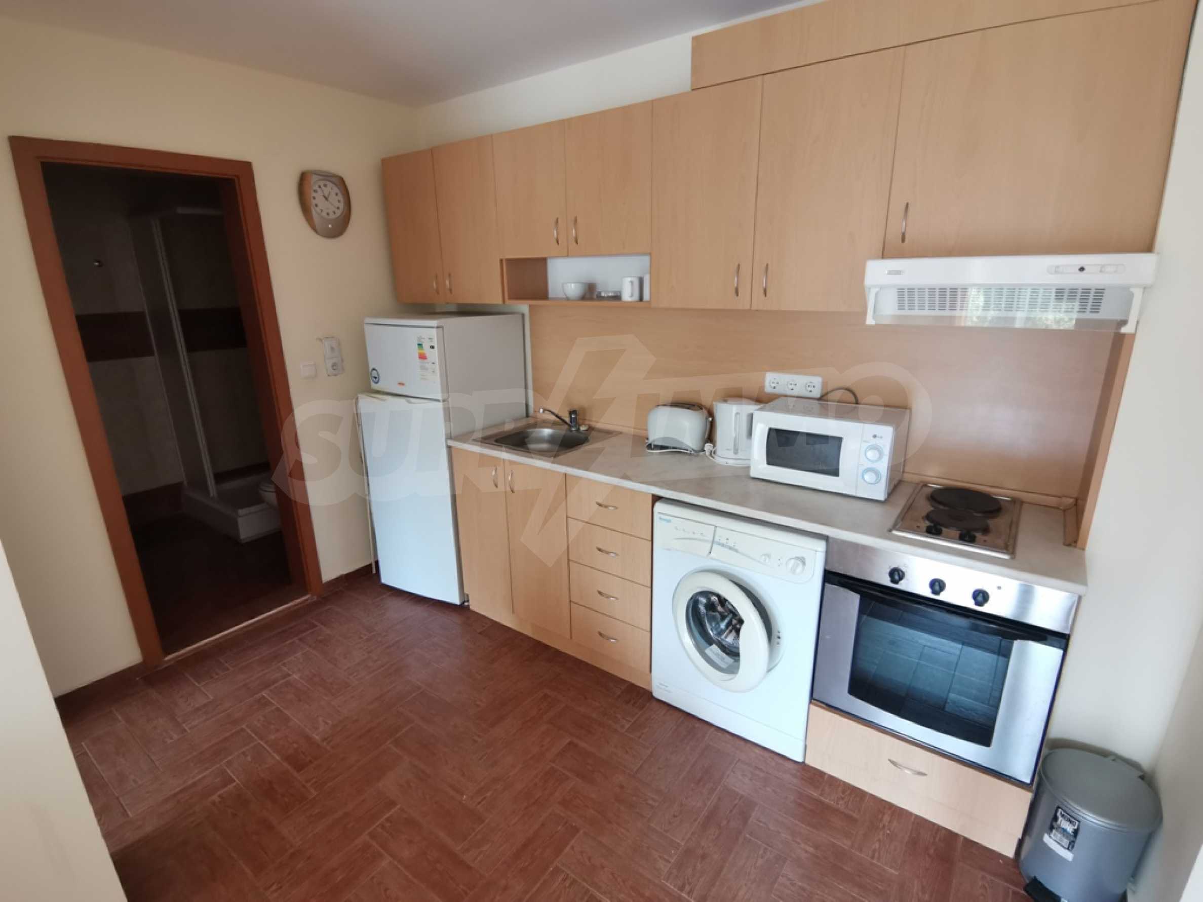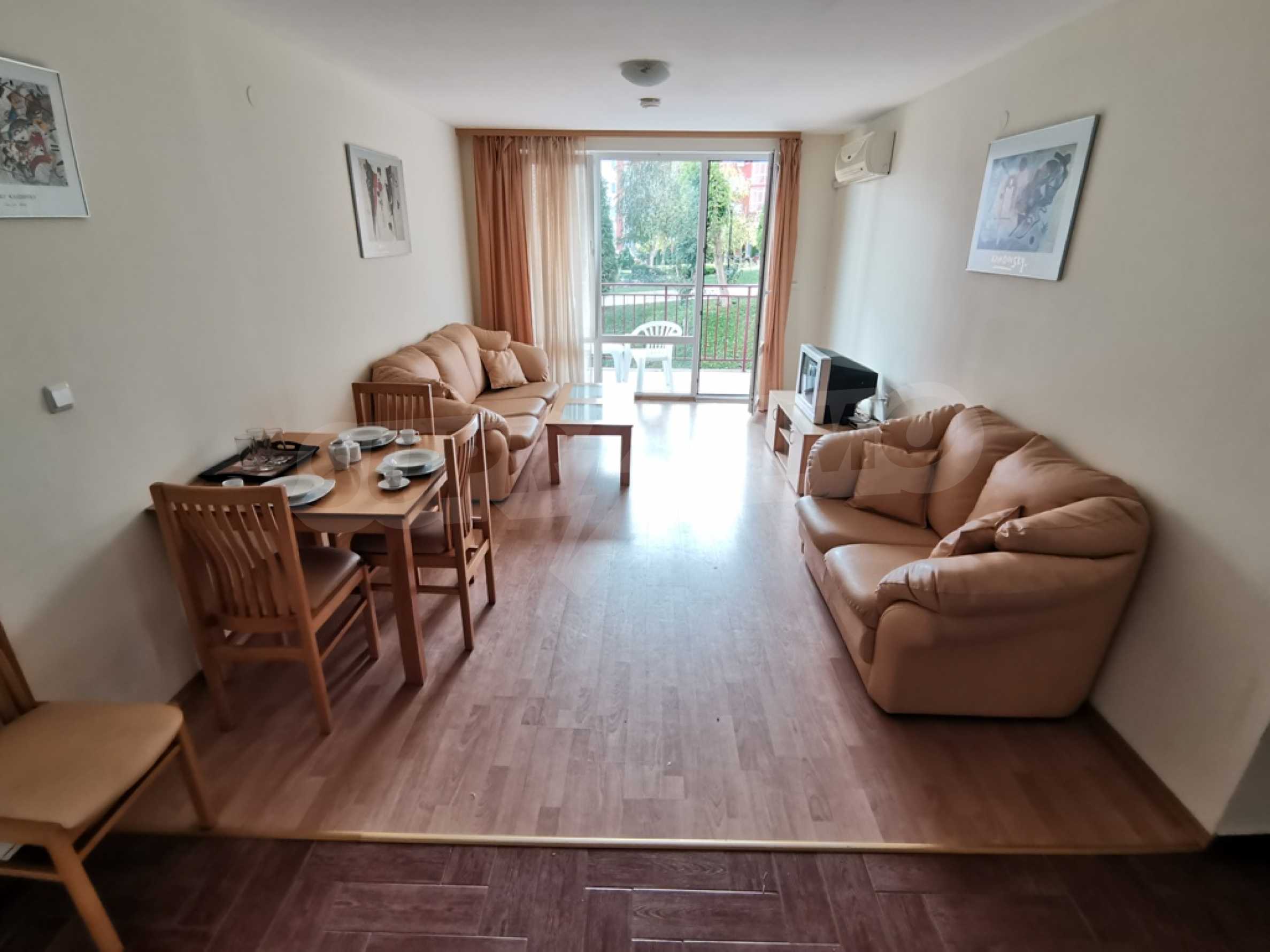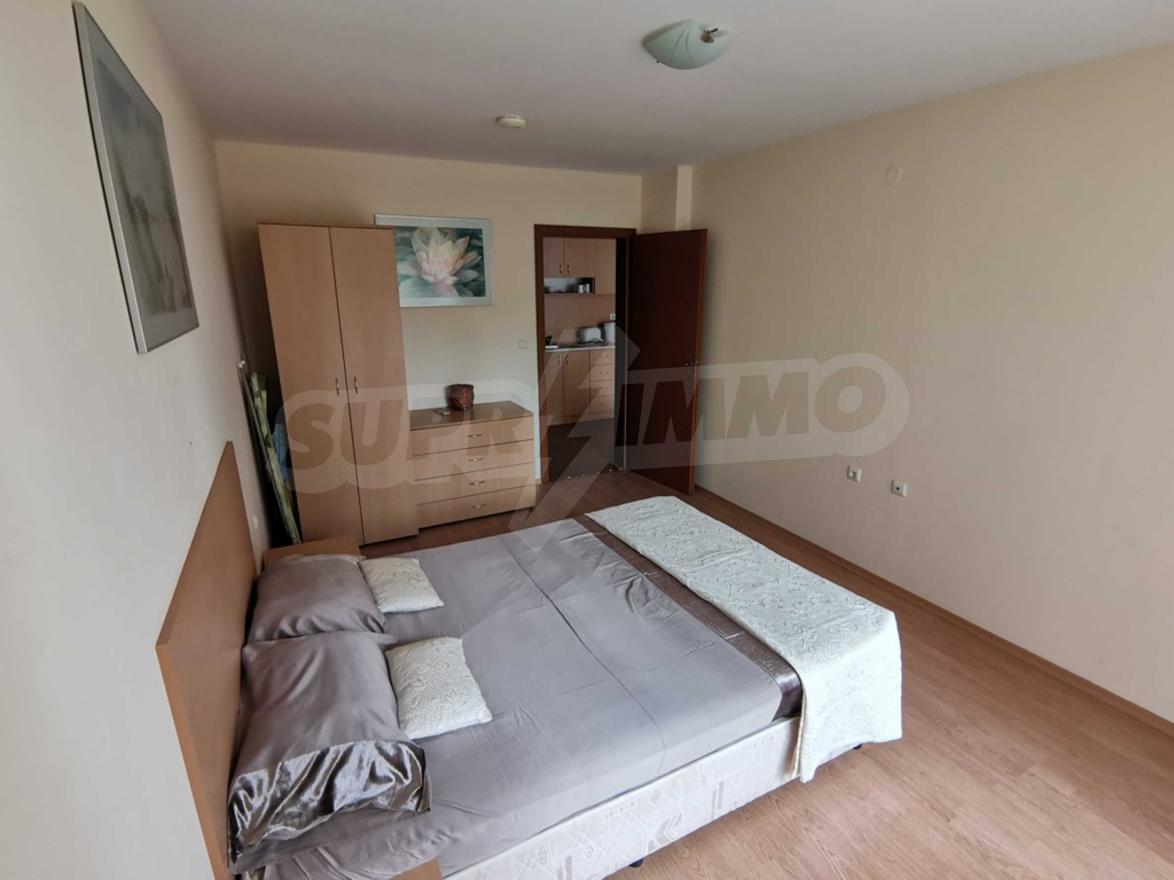 The furnished one-bedroom apartment we present to you for sale is located on a high first floor in an attractive complex near the beach of Saint Vlas.