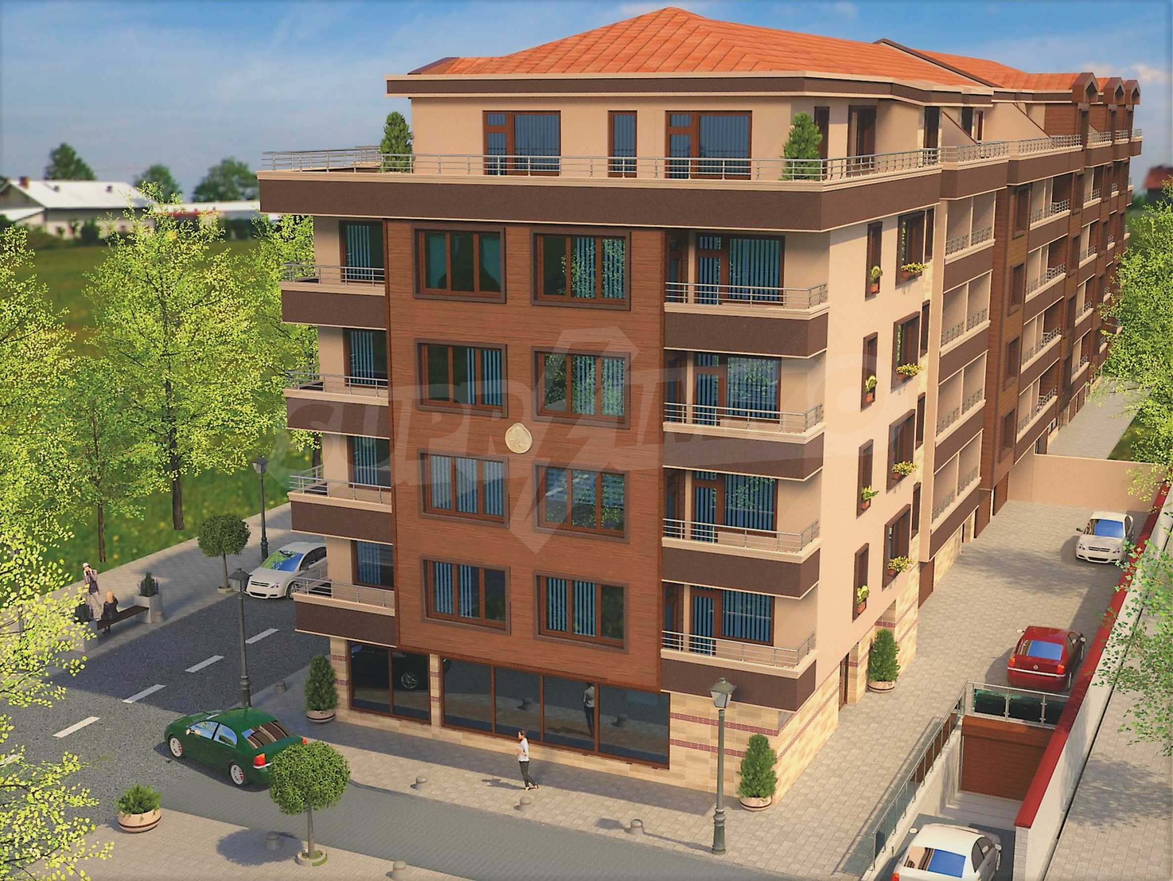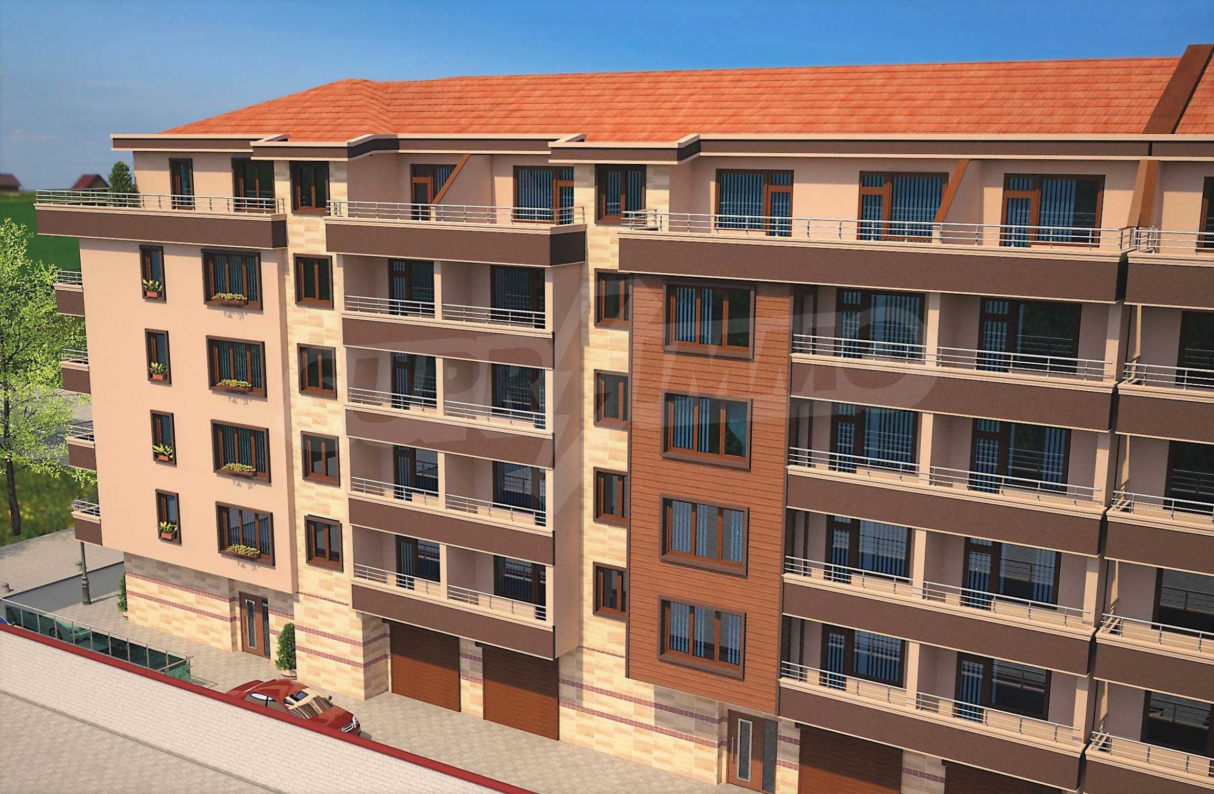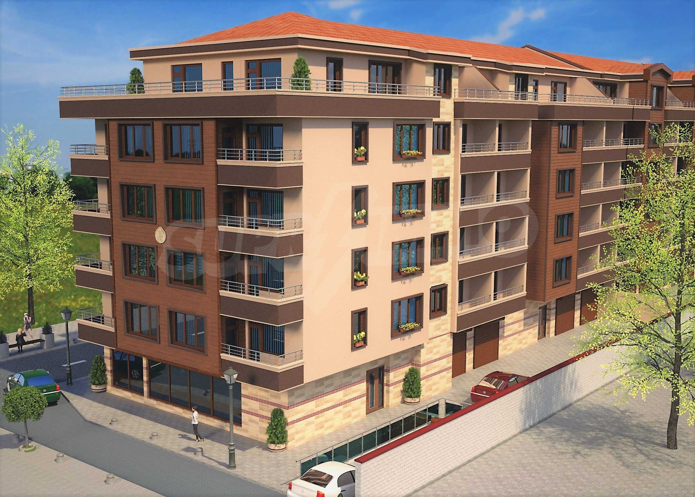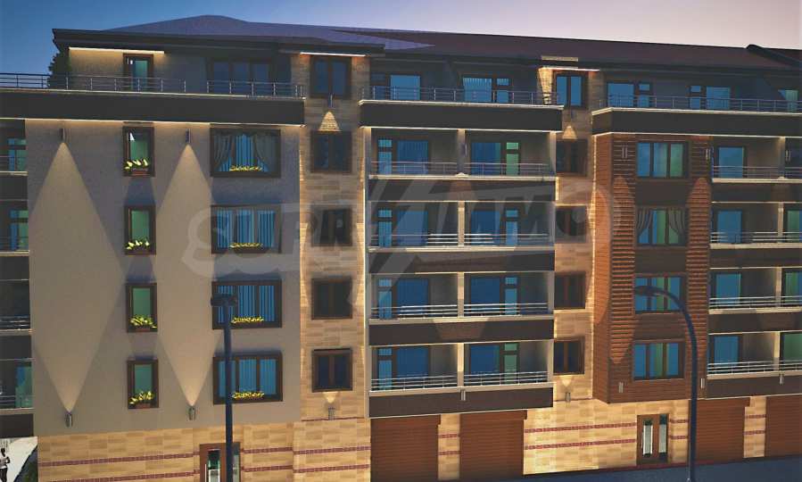 All apartments in the building are issued in the degree of completion according to BDS: walls - plaster and floors with screed, plumbing with water meters, quality PVC windows - 8 chambers with triple glazing, color "golden oak", metal entrance and MDF interior doors, electrical installations, bell intercom installation, telephone and Internet installations, internal cable network to the exit, granite terraces and aluminum railings.