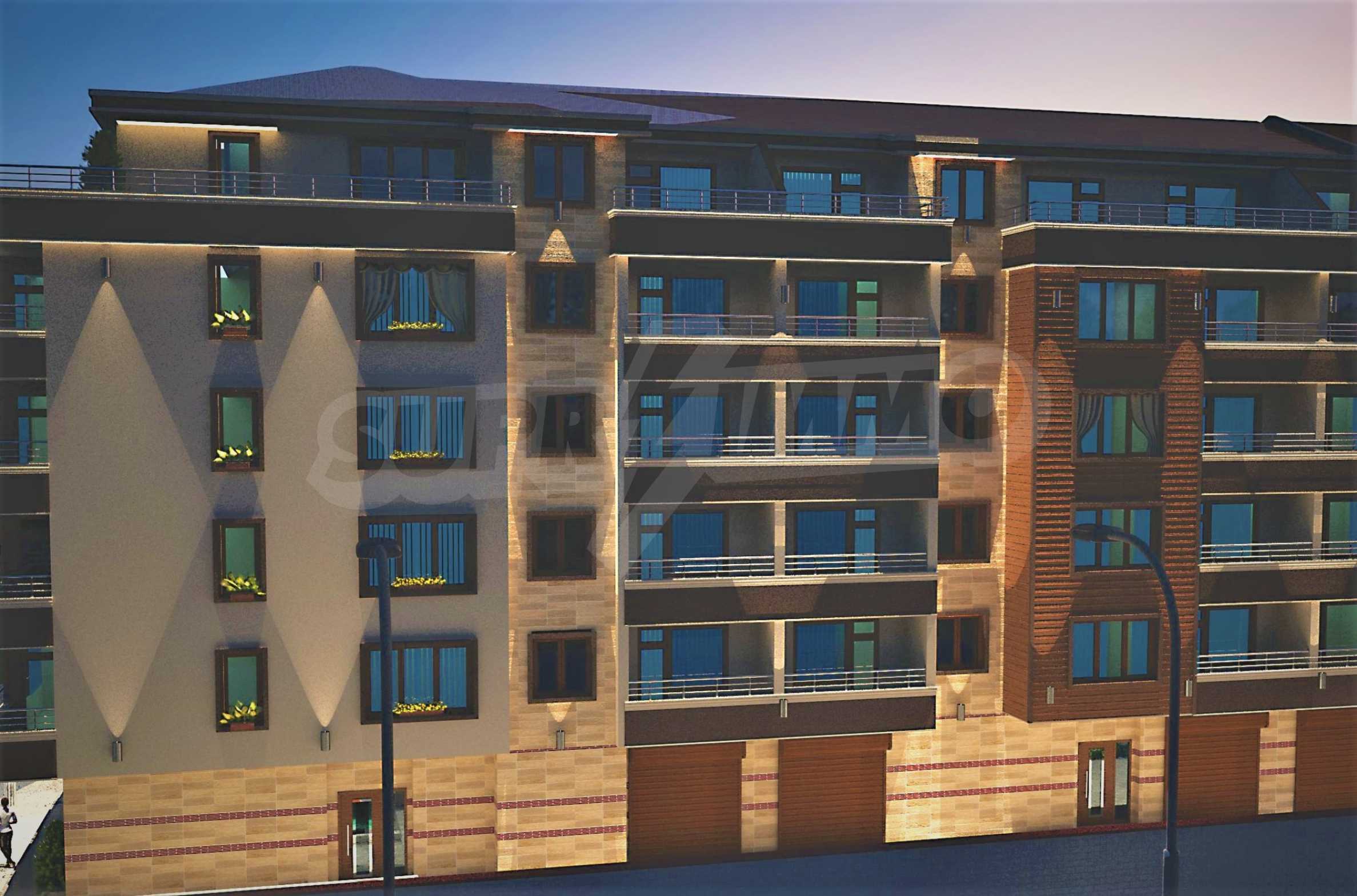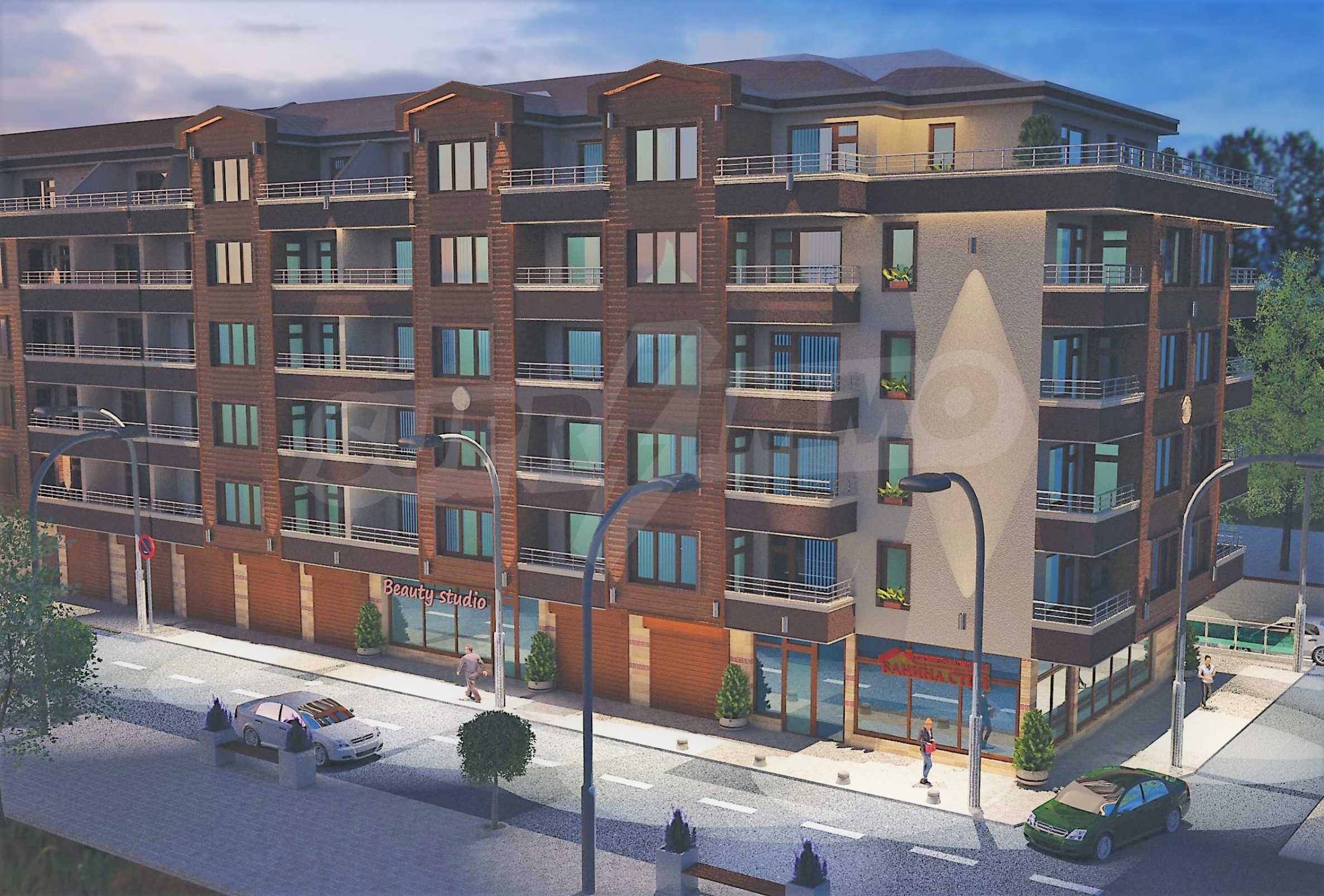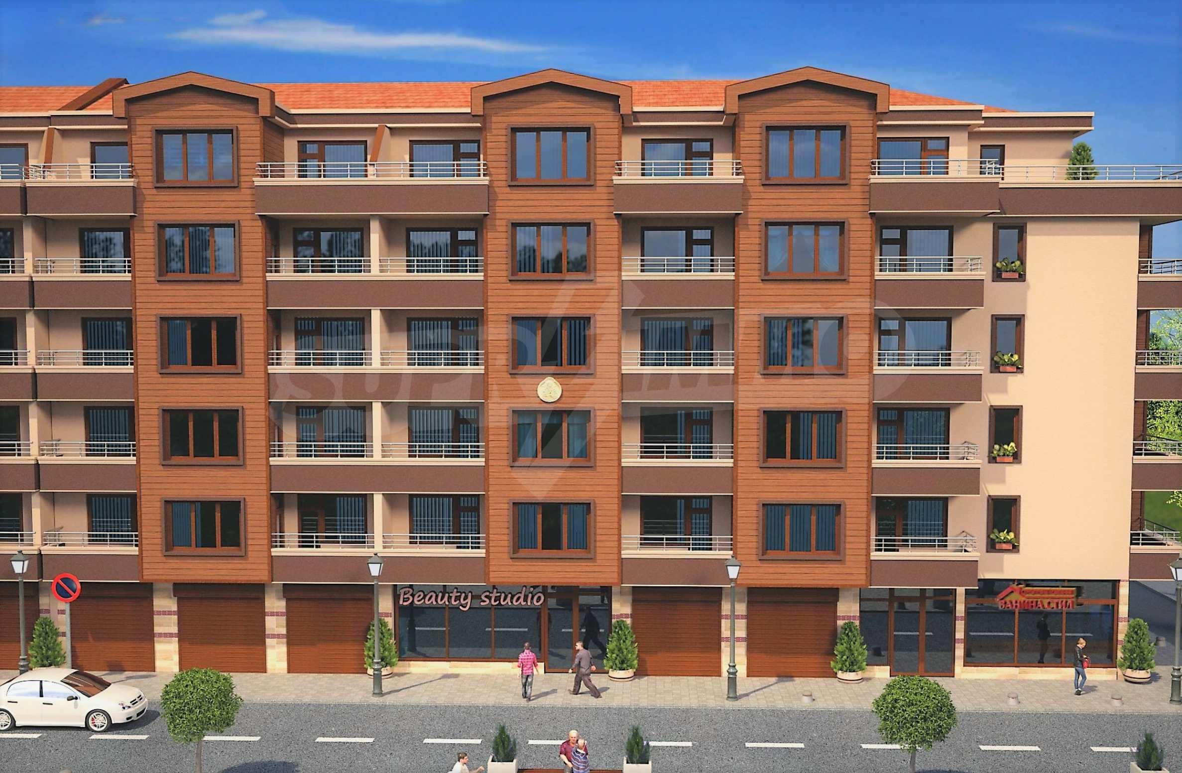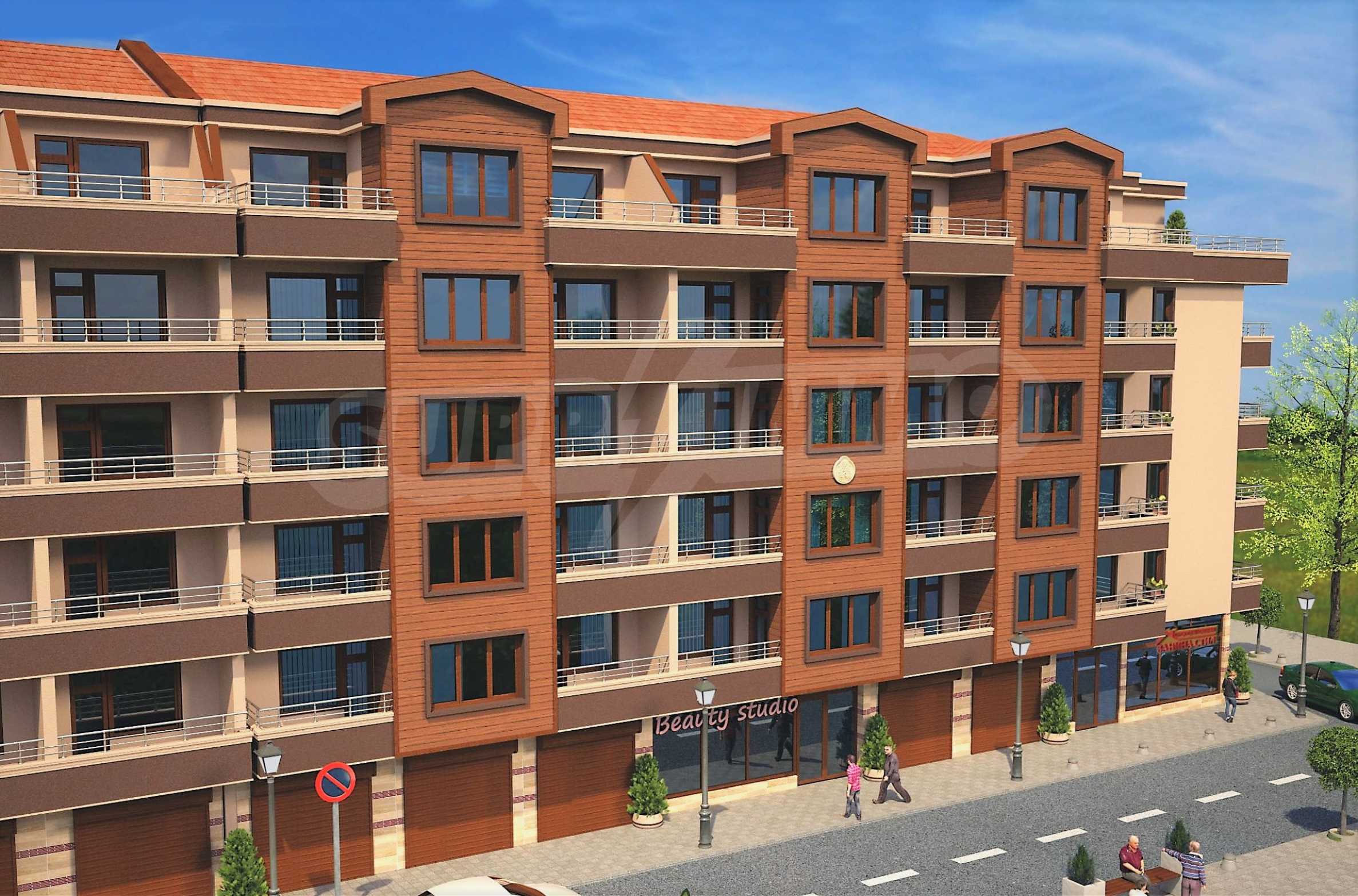 All apartments in the building are issued in the degree of completion according to BDS: walls - plaster and floors with screed, plumbing with water meters, quality PVC windows - 8 chambers with triple glazing, color "golden oak", metal entrance and MDF interior doors, electrical installations, bell intercom installation, telephone and Internet installations, internal cable network to the exit, granite terraces and aluminum railings.