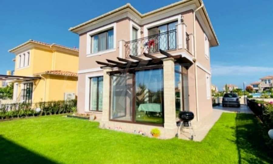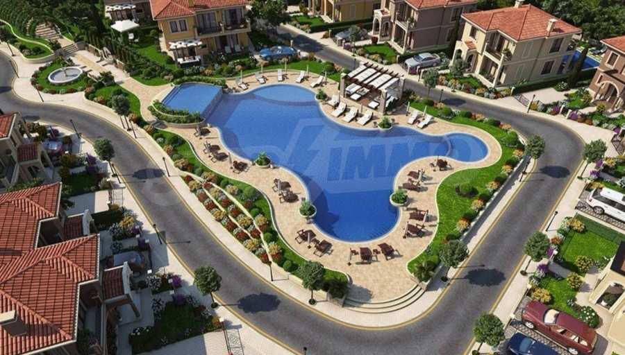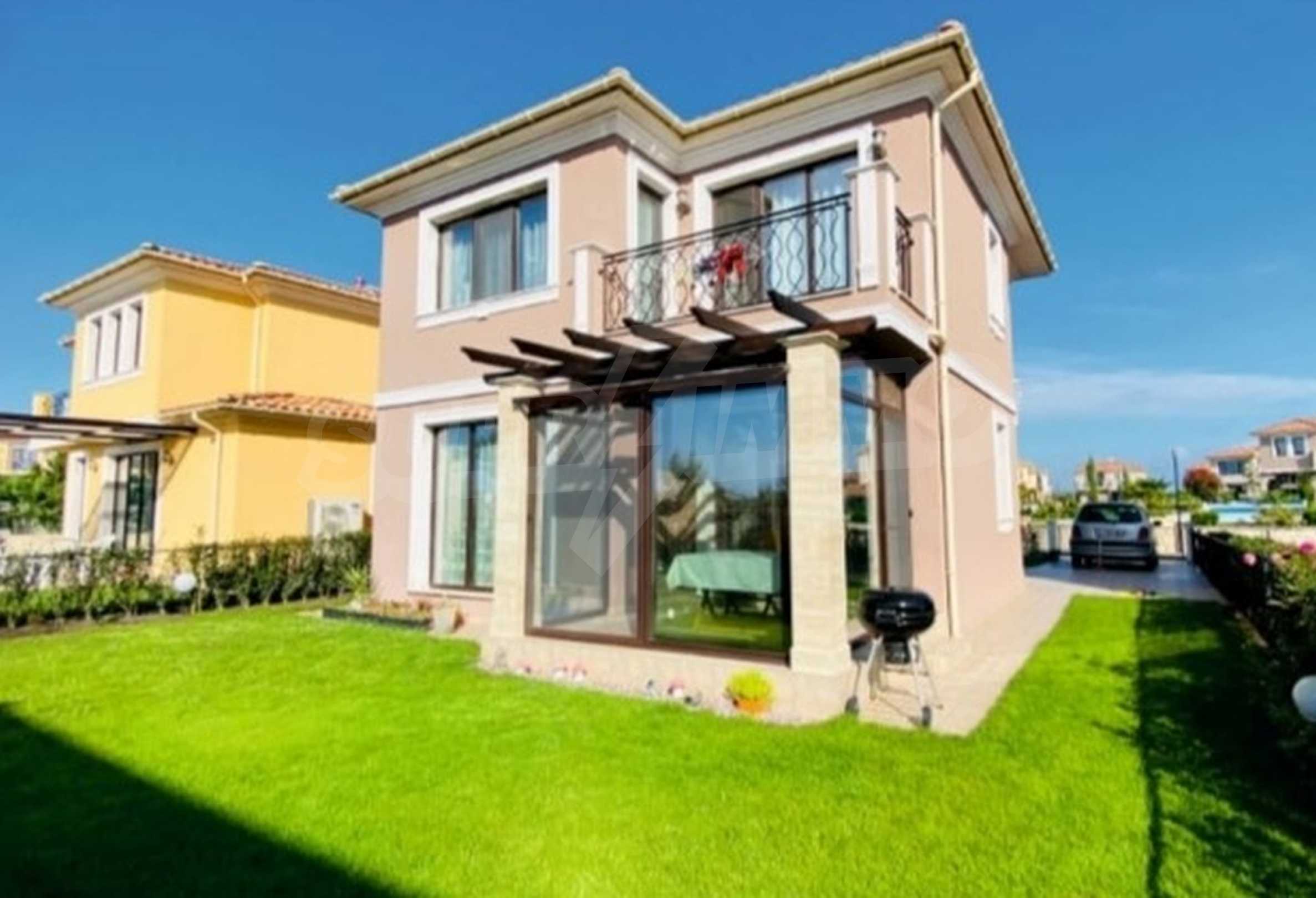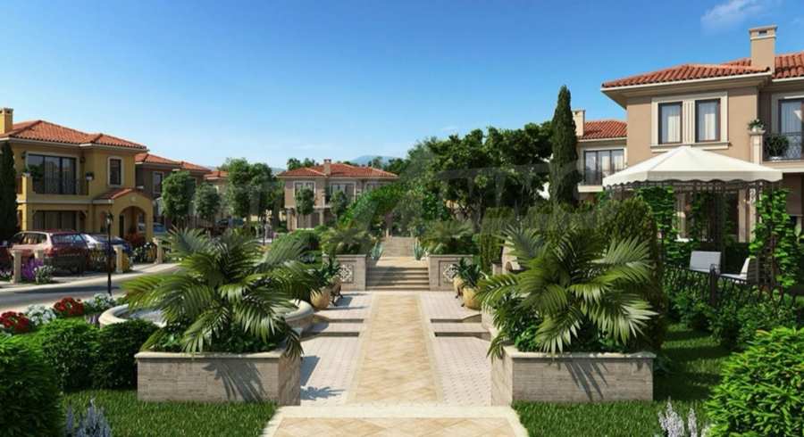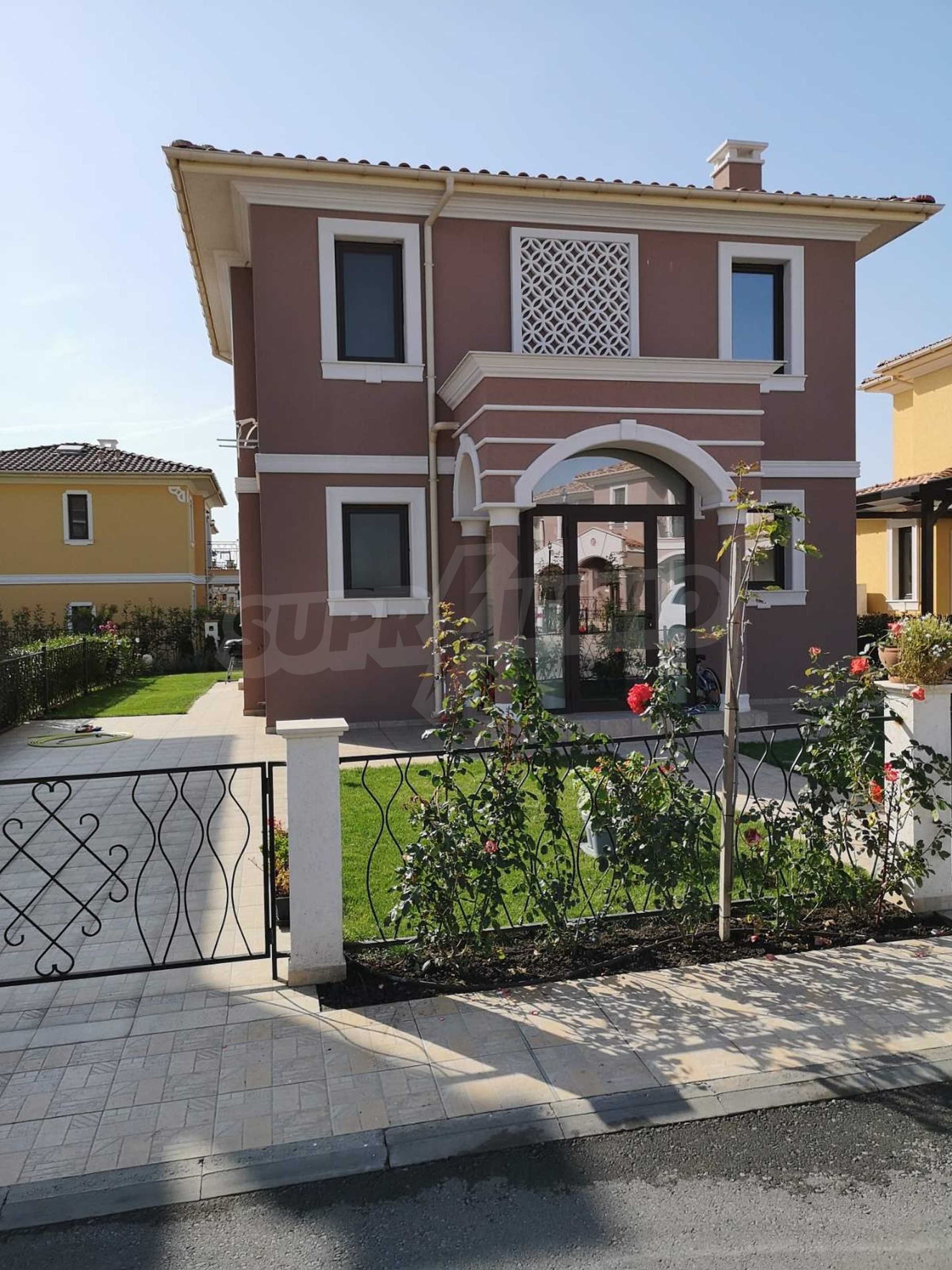 We present you a detached house in an elegant gated complex, offering individually designed houses and townhouses, surrounded by rich landscape, amenities and swimming pools, in an eco area among beautiful vineyards, typical of the region near Pomorie and Bourgas. The complex is situated less than 1 km from the sandy beaches of the Black Sea, in the area near Sarafovo.