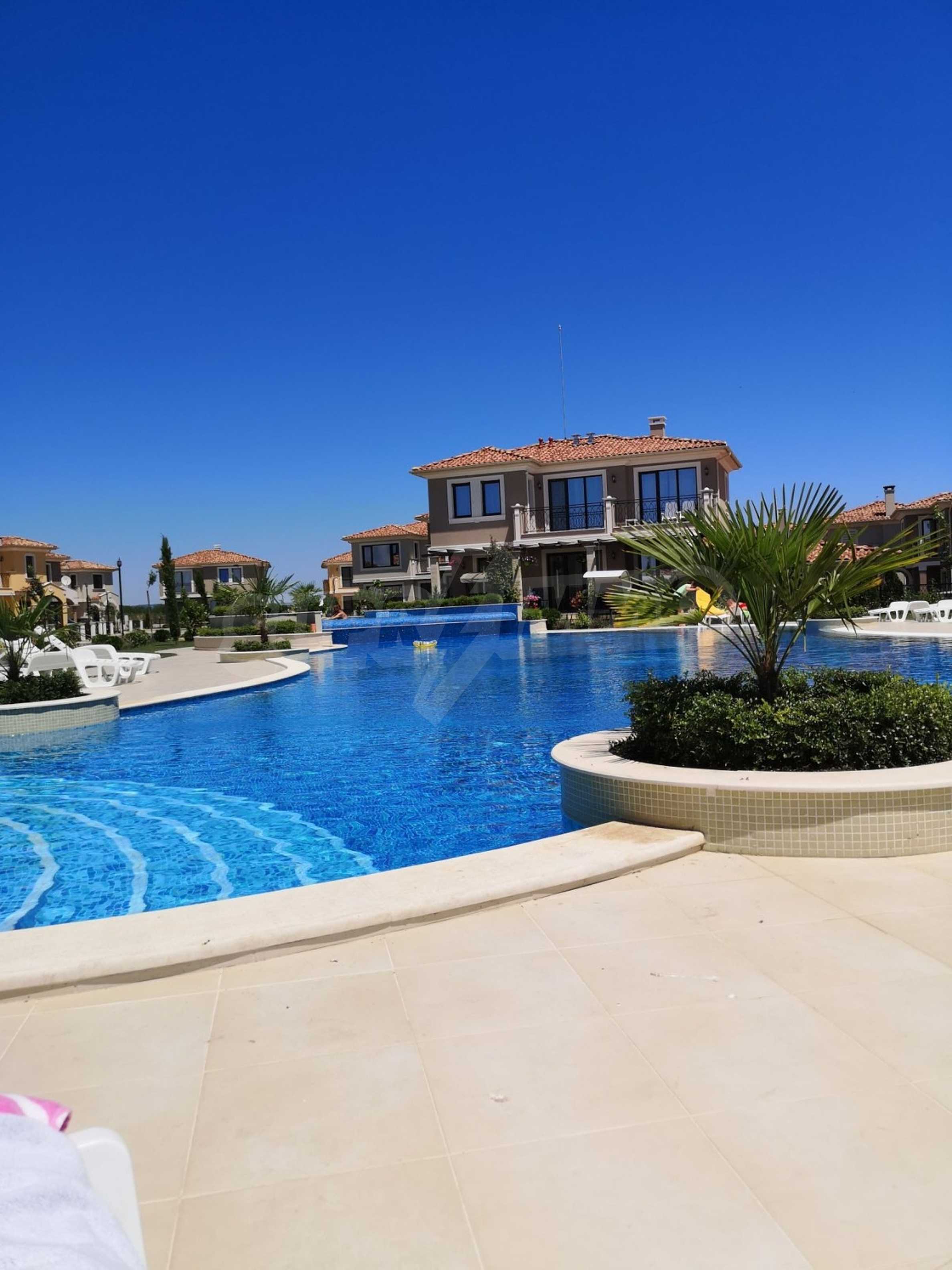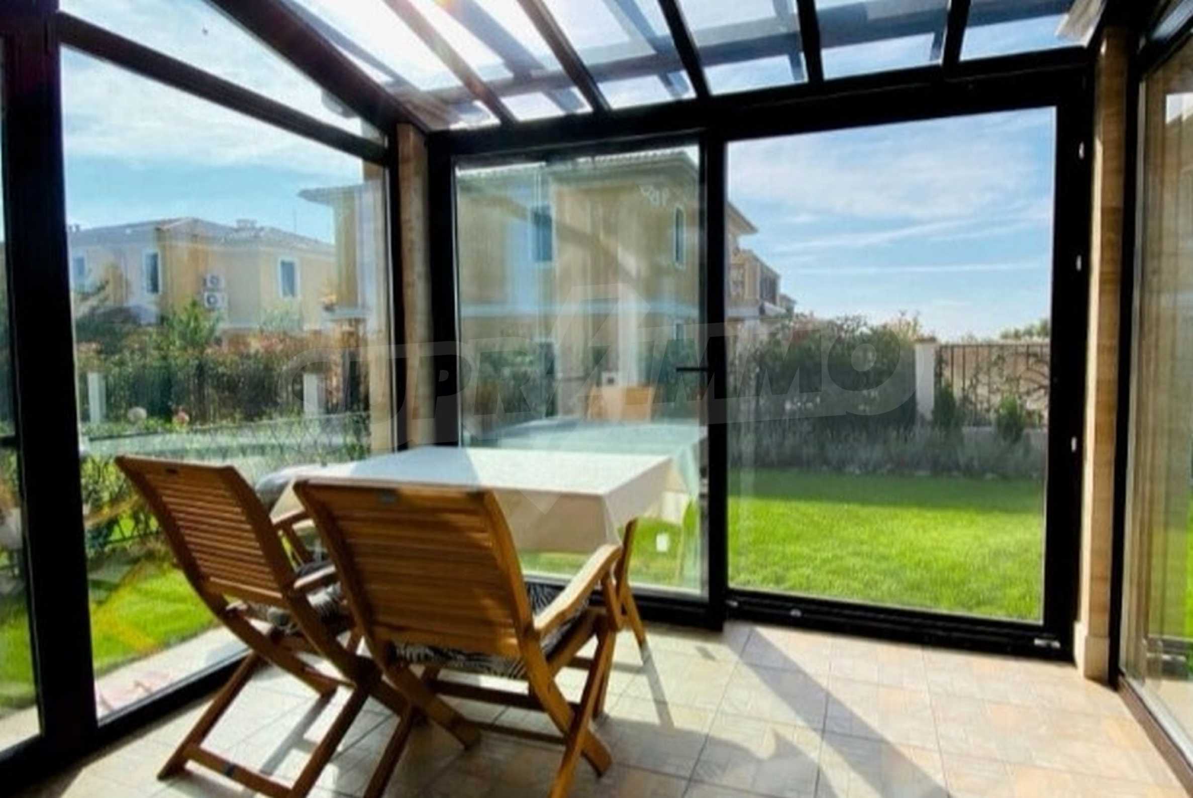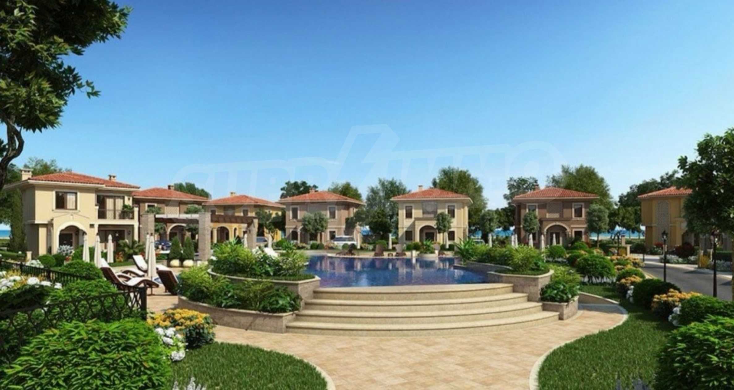 We present you a detached house in an elegant gated complex, offering individually designed houses and townhouses, surrounded by rich landscape, amenities and swimming pools, in an eco area among beautiful vineyards, typical of the region near Pomorie and Bourgas. The complex is situated less than 1 km from the sandy beaches of the Black Sea, in the area near Sarafovo.