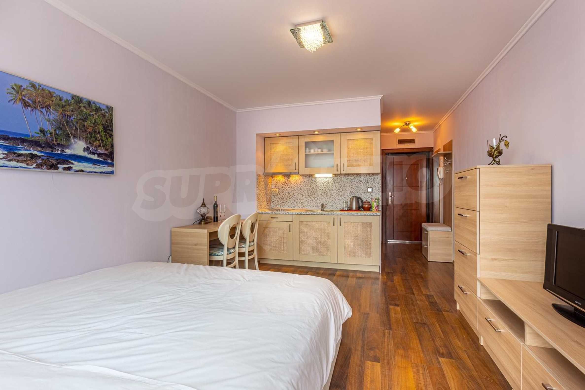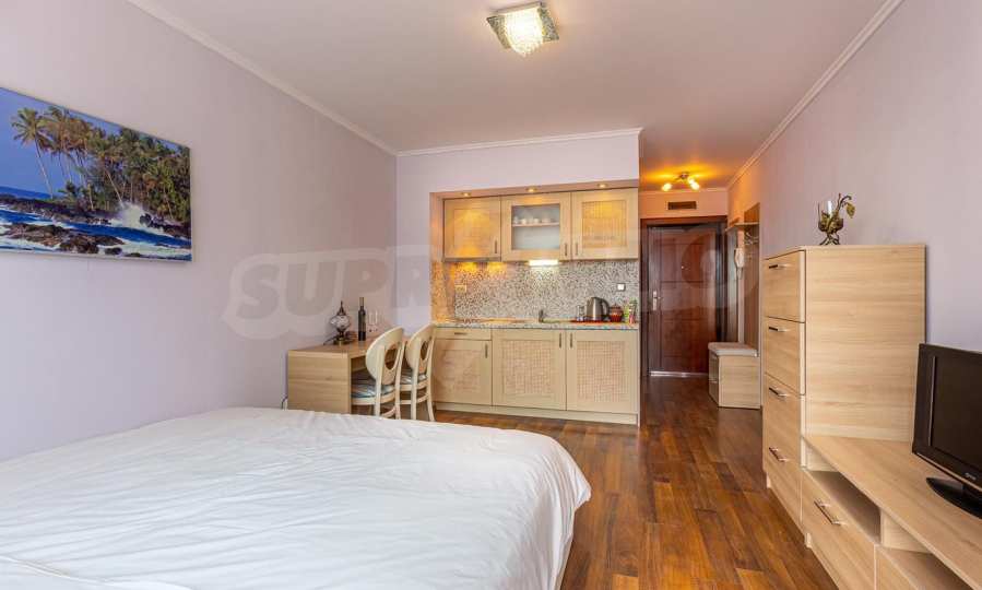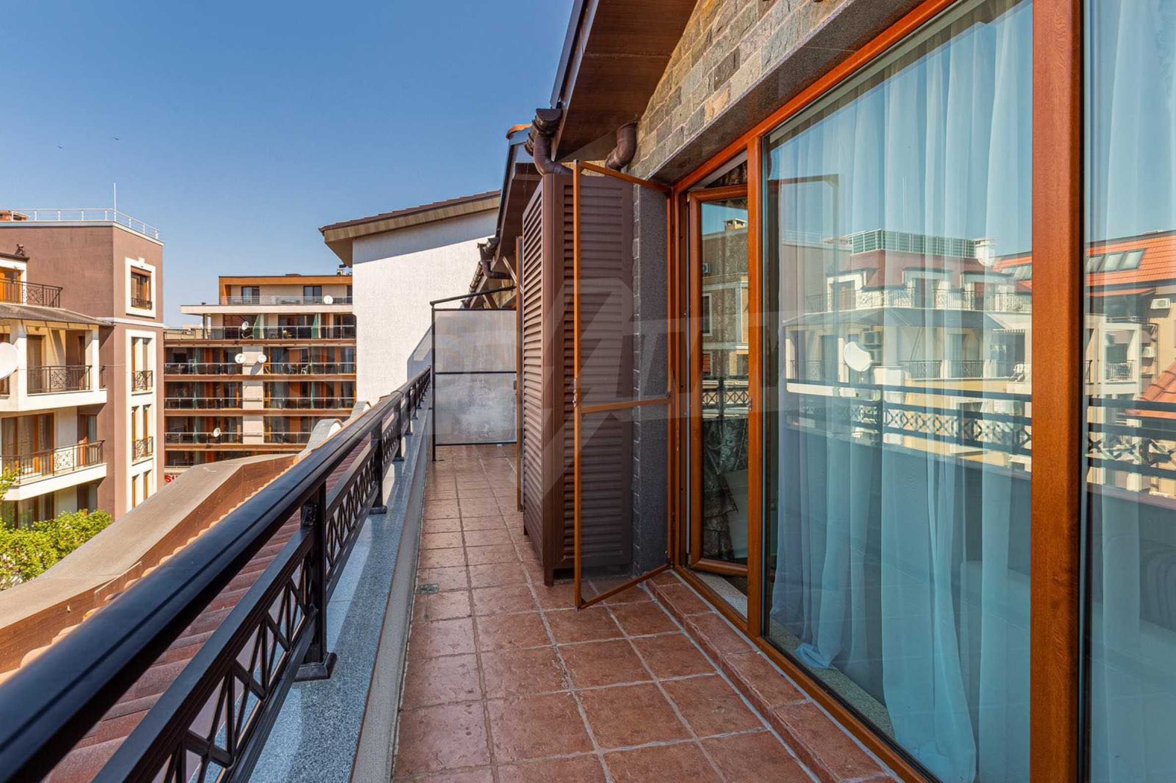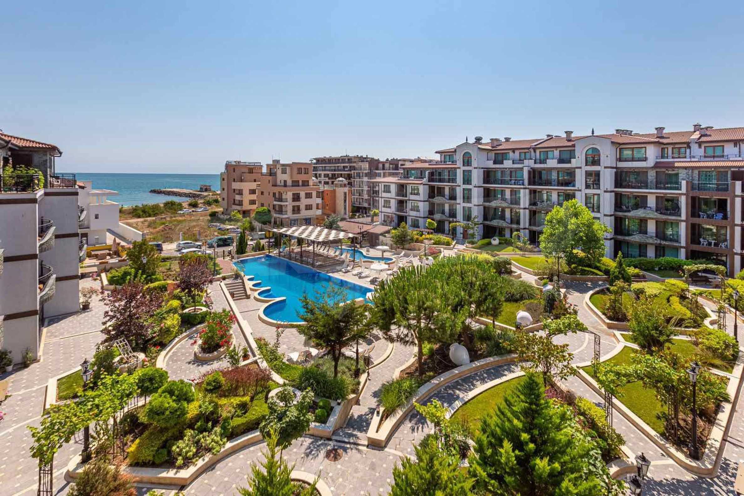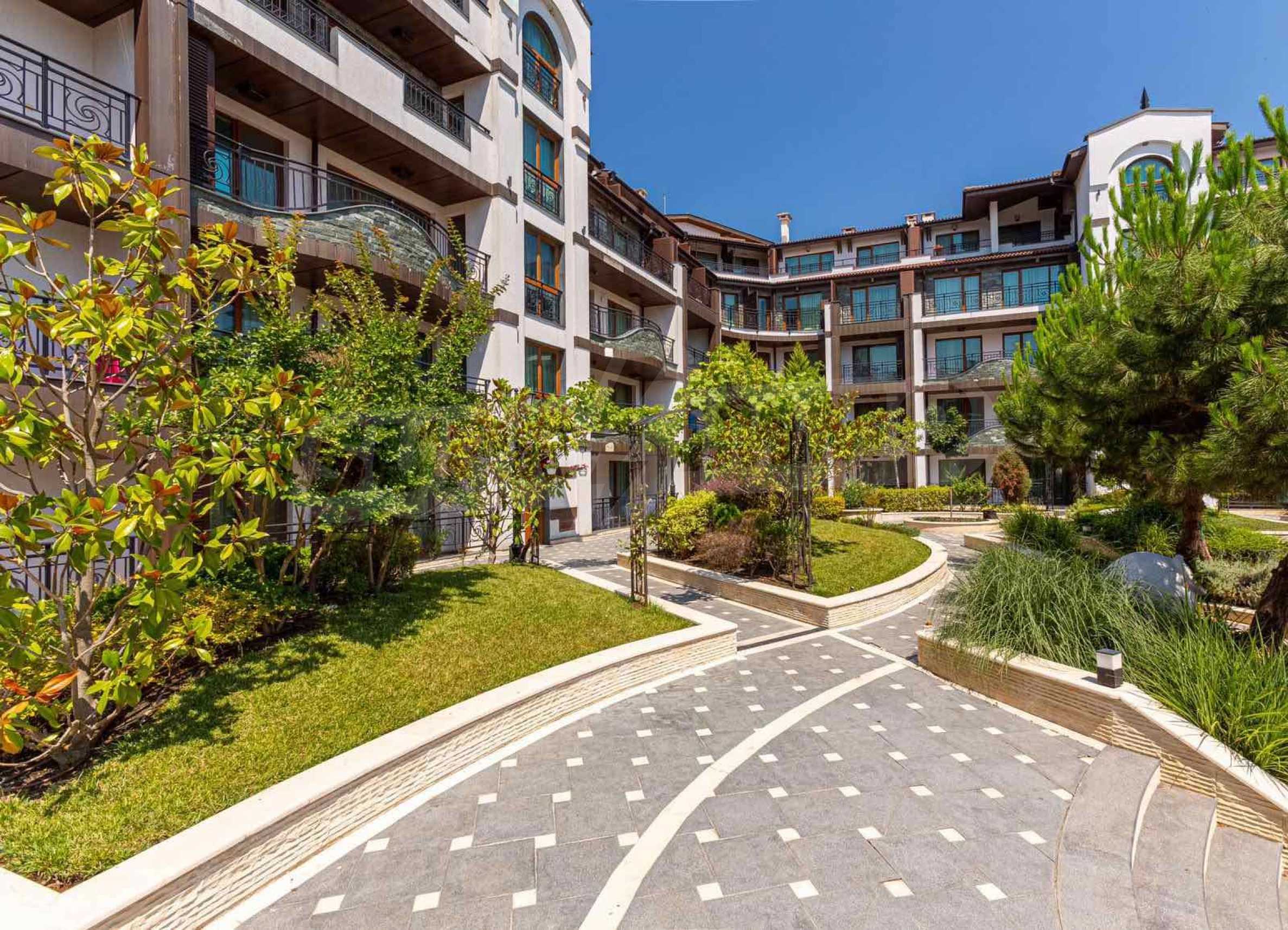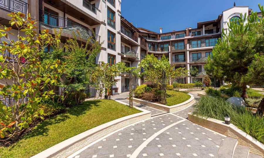The property is part of an elegant gated complex, located on the 4th floor of a total of 5 floors in a building with an elevator. The complex offers a seasonal spa, a beautiful swimming pool, a restaurant and bar, and free on-site parking. The distinctive feature of this complex - a richly landscaped garden with a variety of roses and rare flowers, with romantic gazebos and recreation areas.
