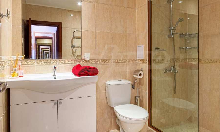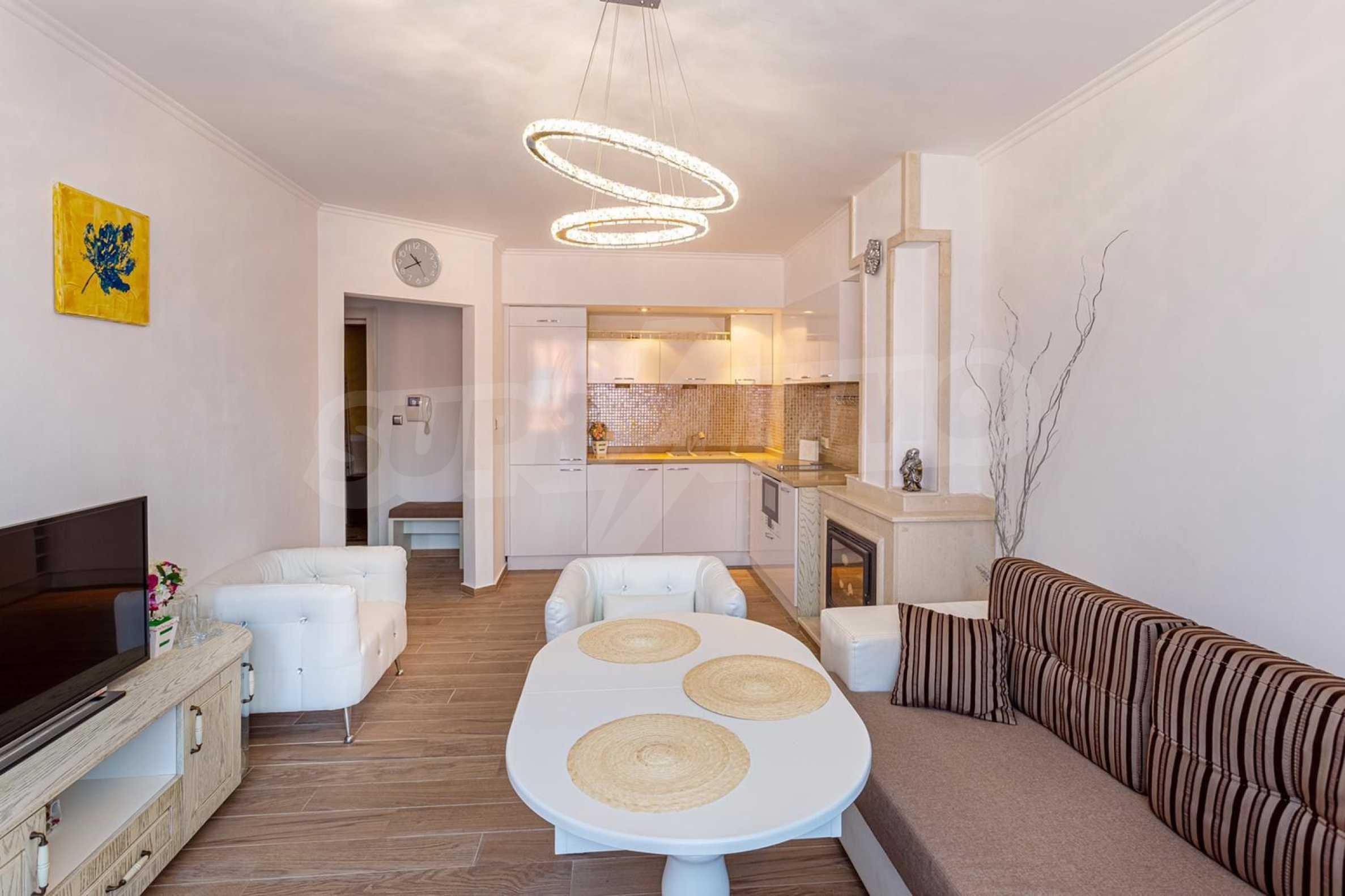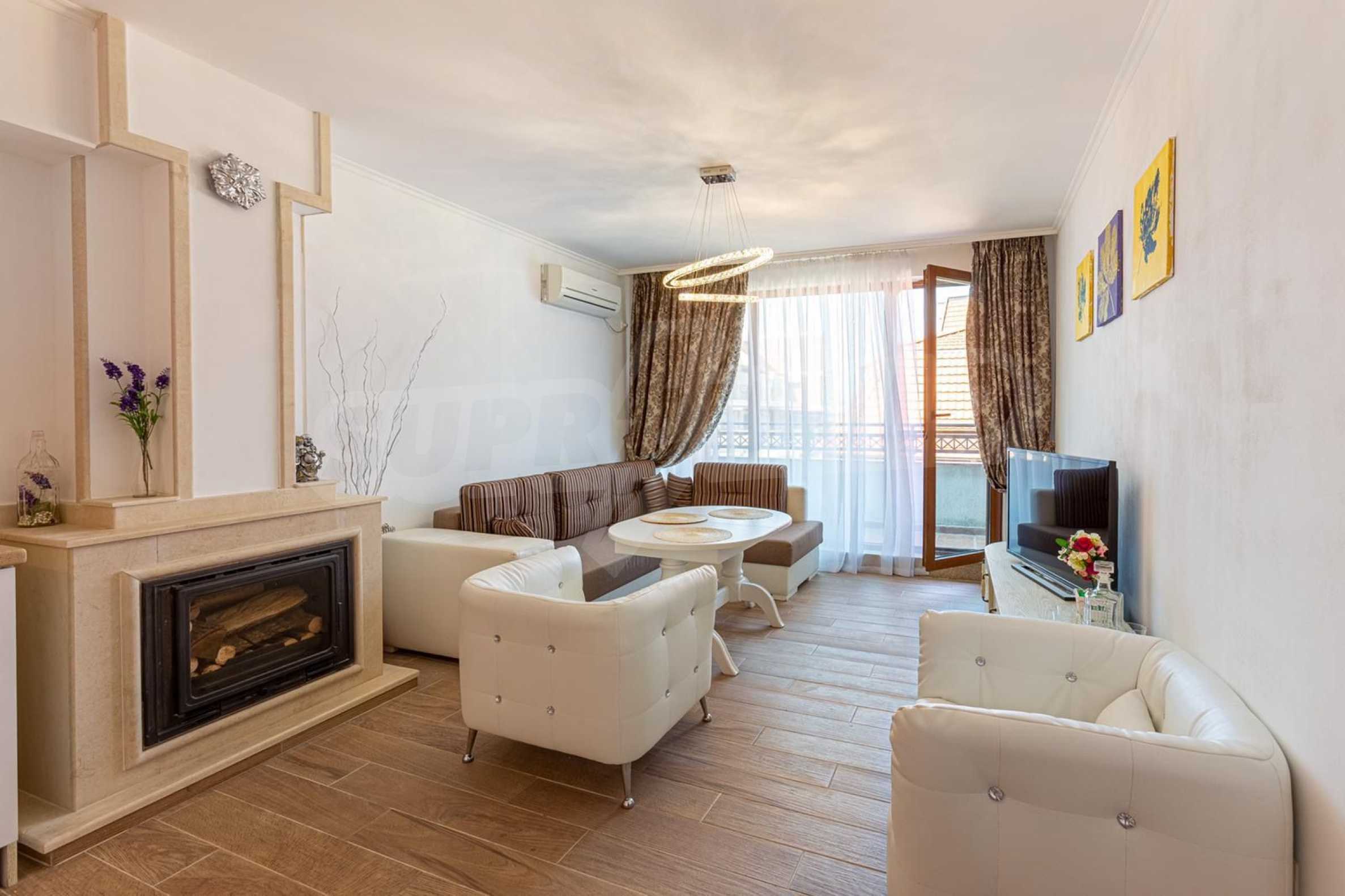 The comfortable apartment is for sale with furniture and appliances, after first-class renovation, fully furnished with modern furniture and appliances. The apartment consists of: entrance hall, spacious living room with fireplace, 2 kitchenettes, dining room, two bedrooms with comfortable double beds, 2 bathrooms and 2 private terraces.