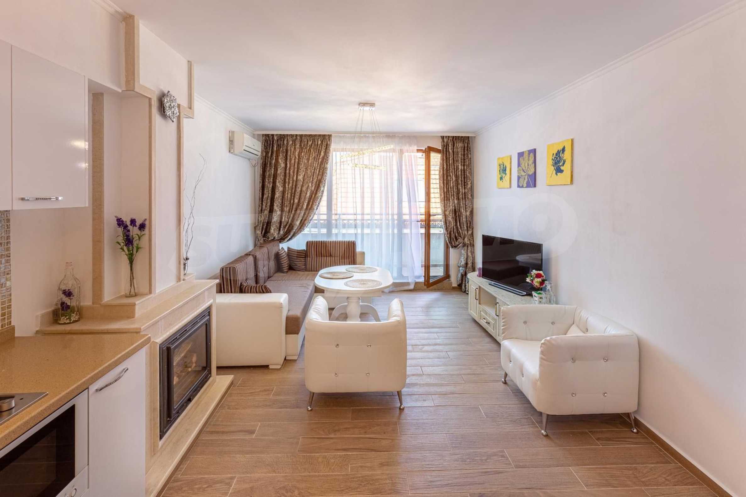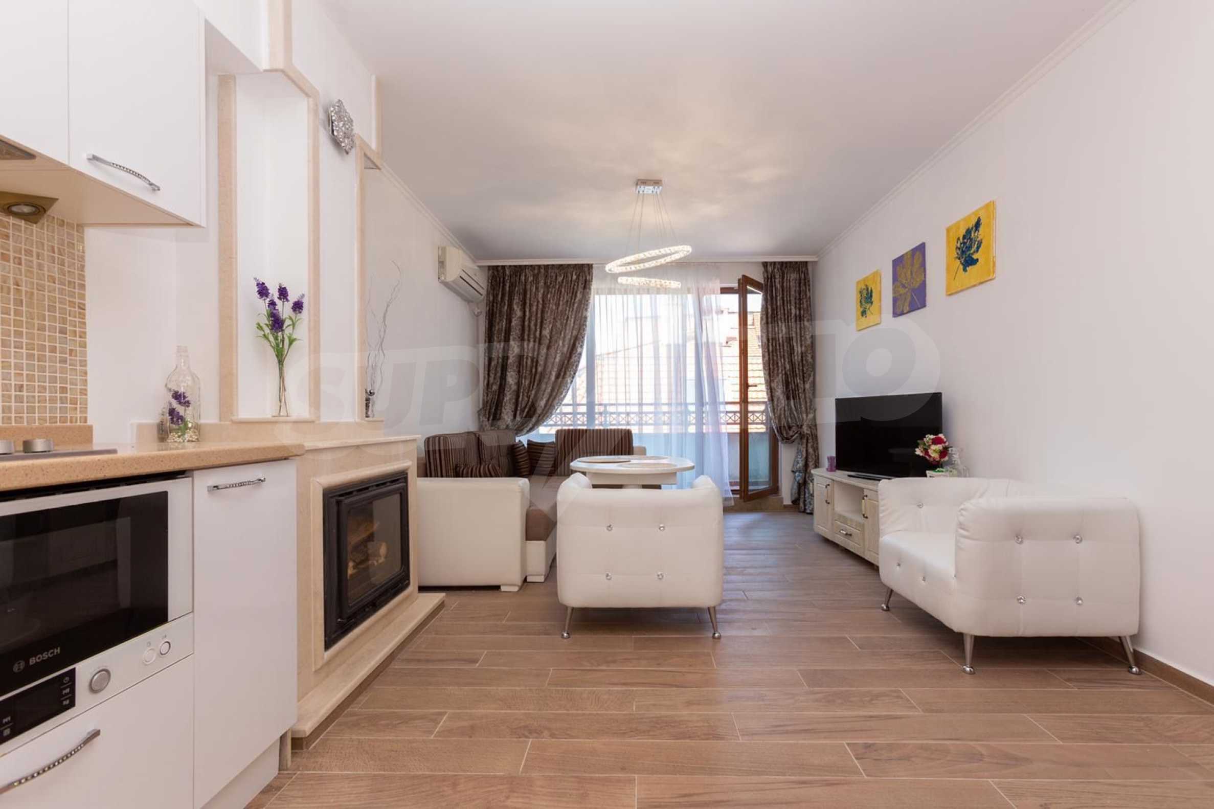 We present for sale a luxury two-bedroom apartment, consisting of a combined one-bedroom and studio apartment, with a total area of 110 m2 in the town of Pomorie.