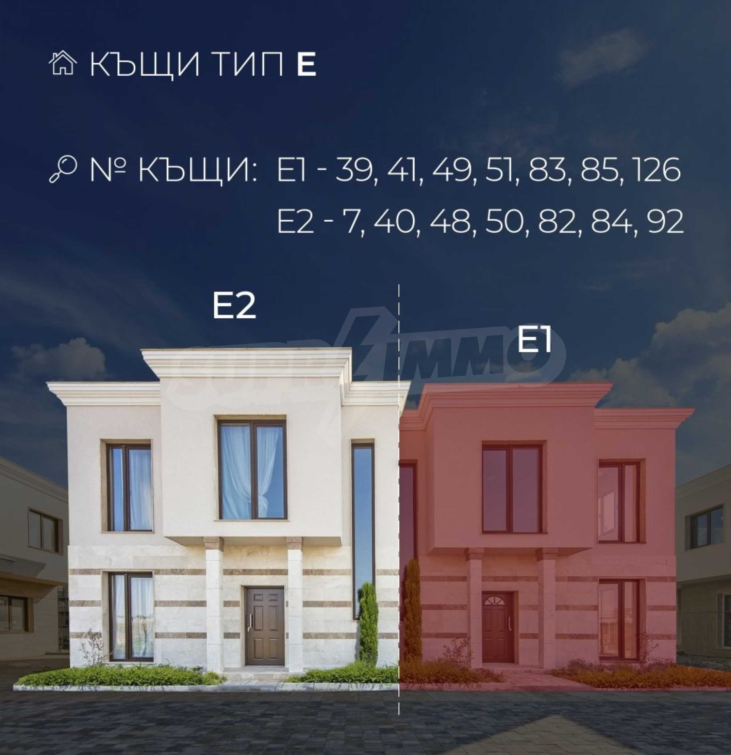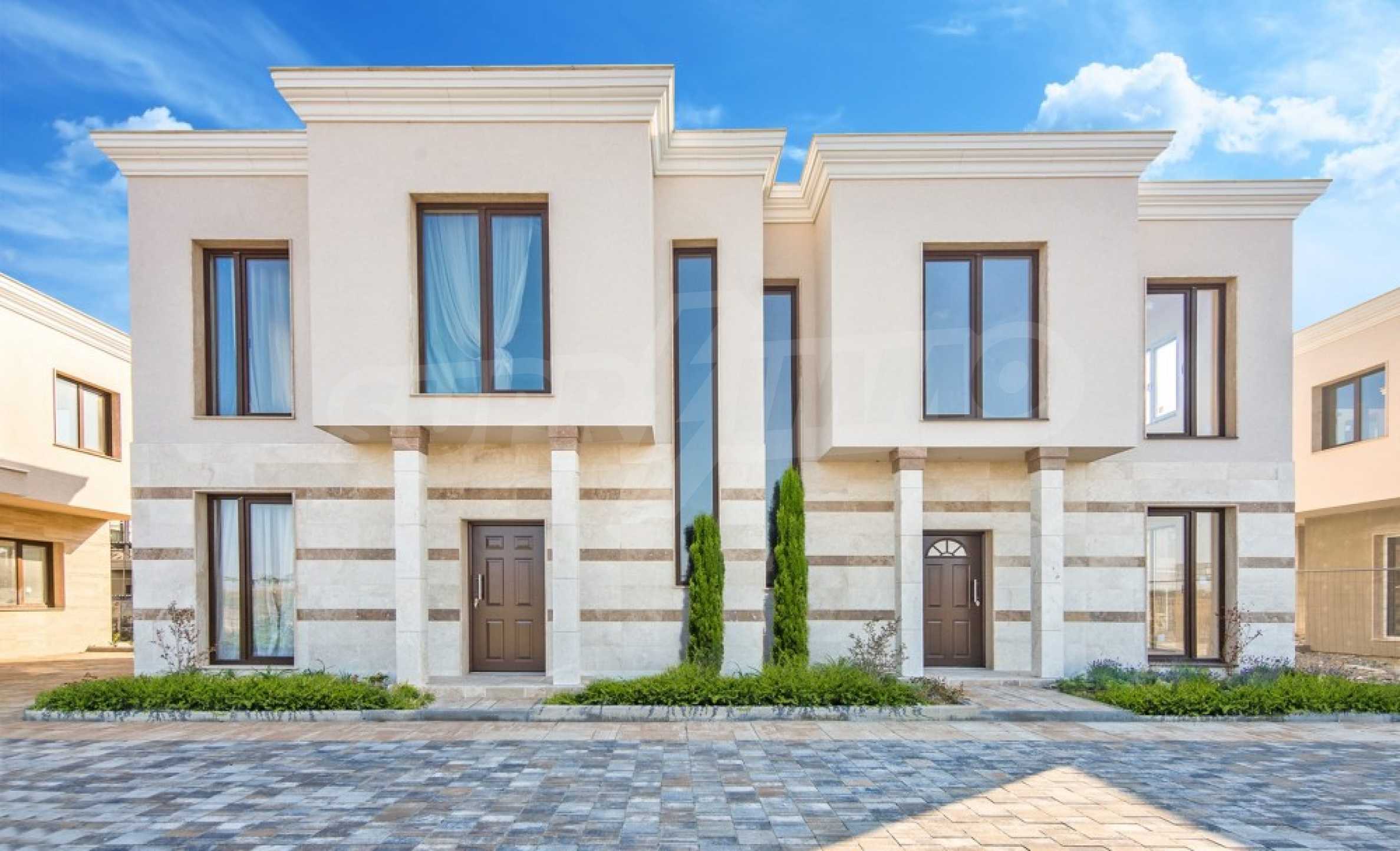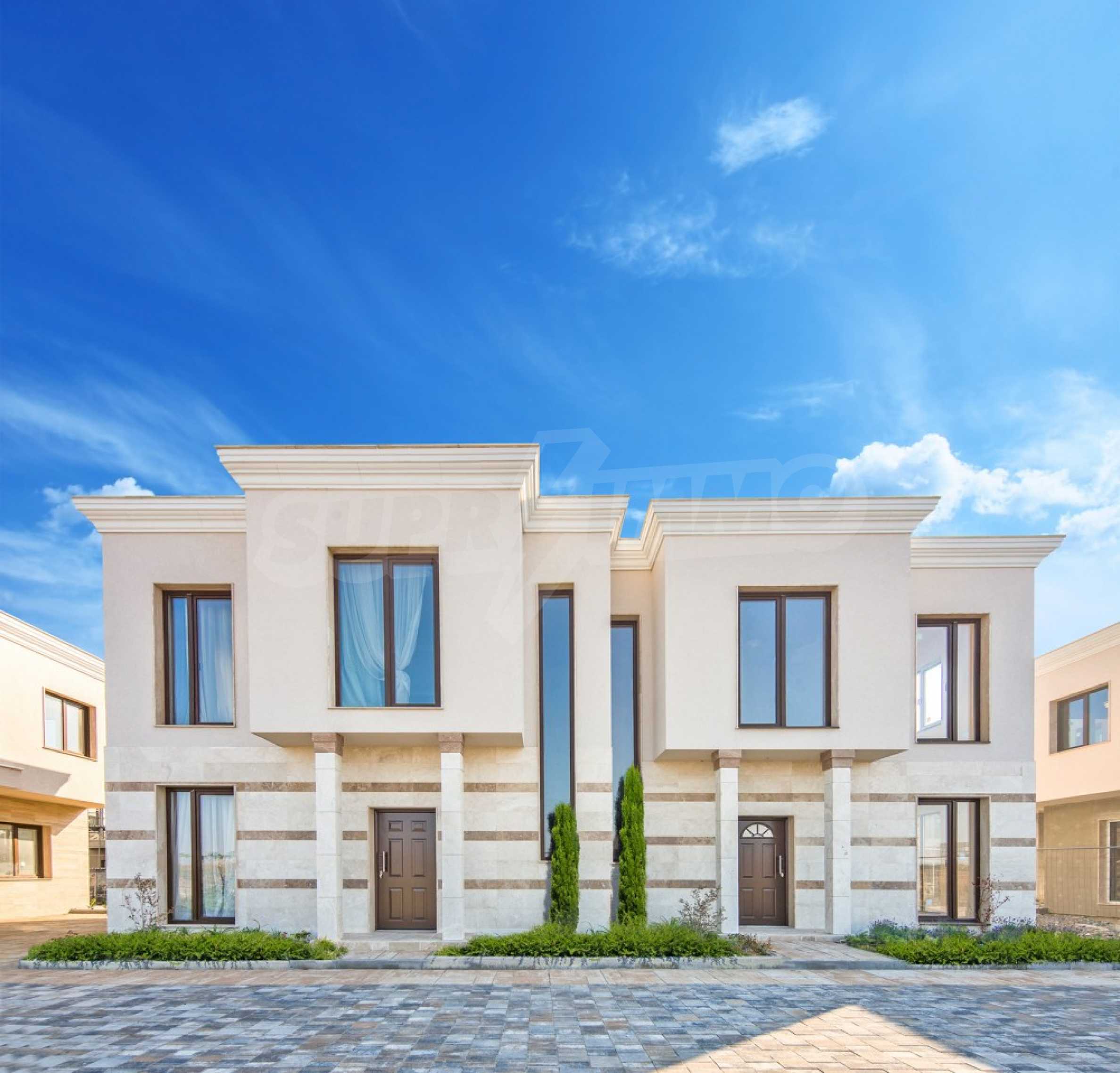 The project is the work of a respected construction and investment company, relying on professionalism, modern standards and quality of its activities. It consists of 126 built single-family houses, divided into 11 types with an area from 89 to 165 m2. The houses are arranged in 6 rows, served by 5 streets. The facades stand out with a clear vision in sandy tones, with a lining of durable natural stone travertine on the first level, beautiful French windows and wrought iron elements on the balconies, as well as a modern flat roof with all kinds of high-class insulation coatings.