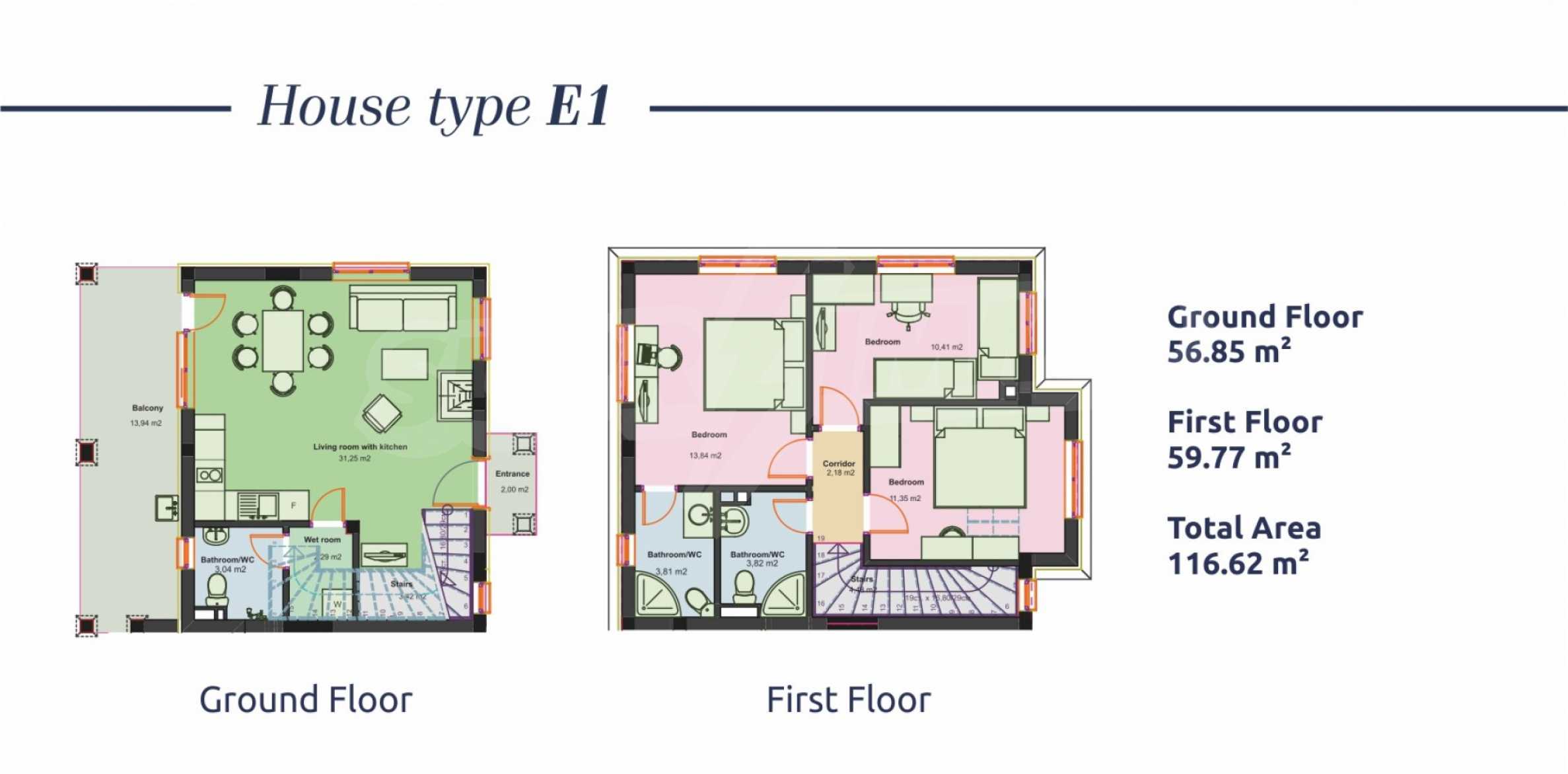 - First floor: 56.85 m2;
