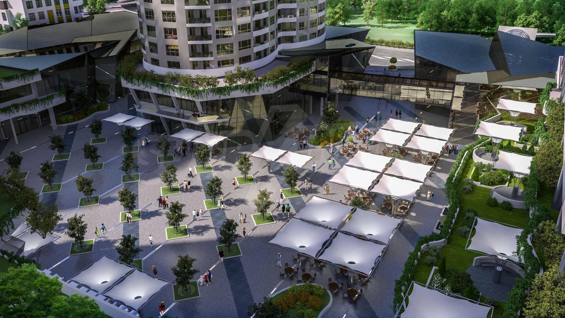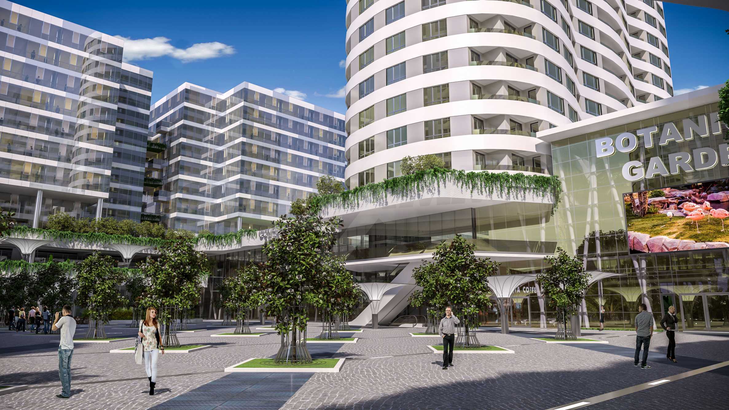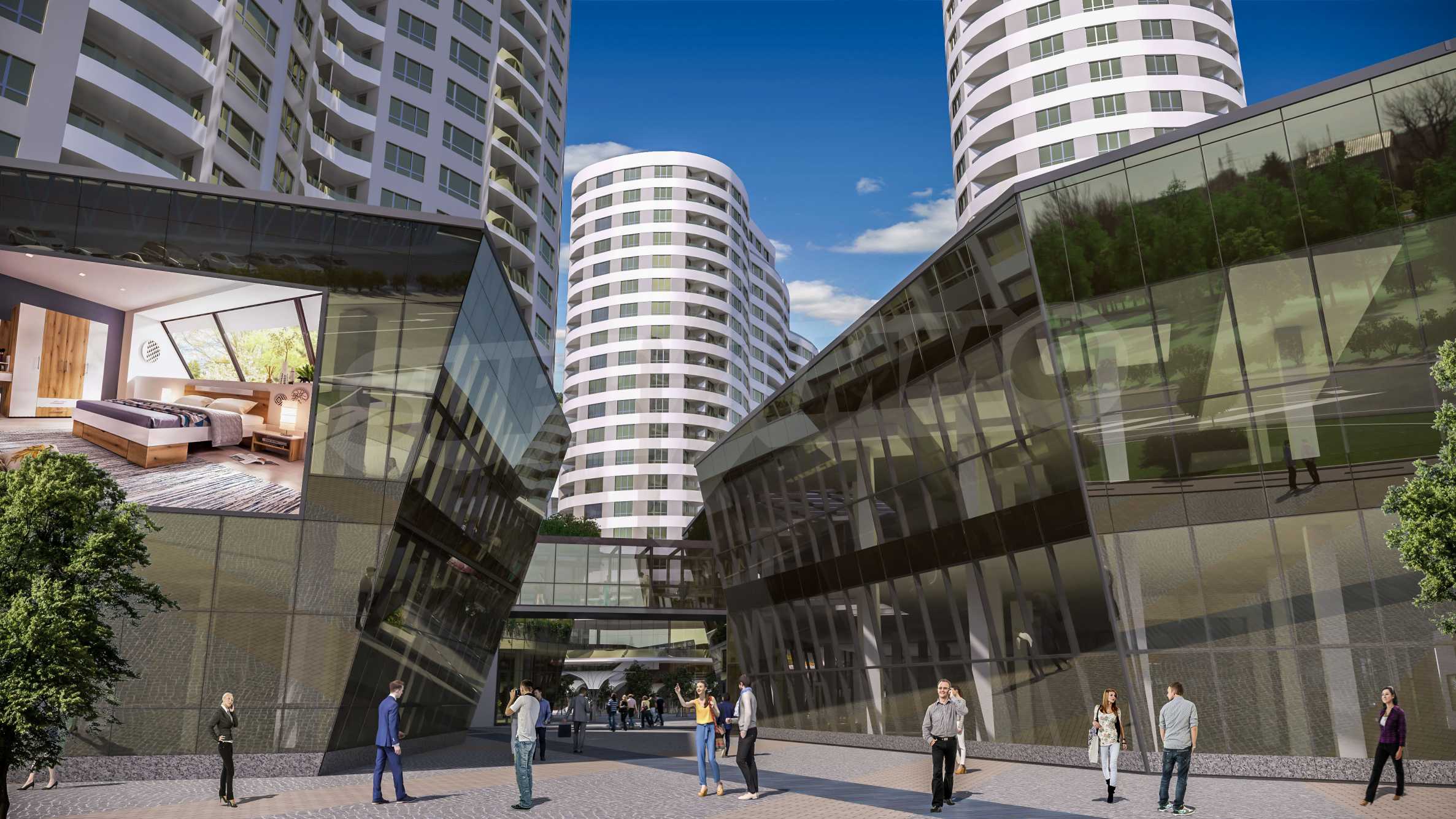 A newly built complex will consist of several residential buildings, 3 office buildings "class A" with a capacity of up to 5,000 jobs, underground parking on 2 levels with 1555 spaces (500 parking spaces adjacent to business buildings, 690 parking spaces to residential buildings, as well as and 360 parking spaces for public use).