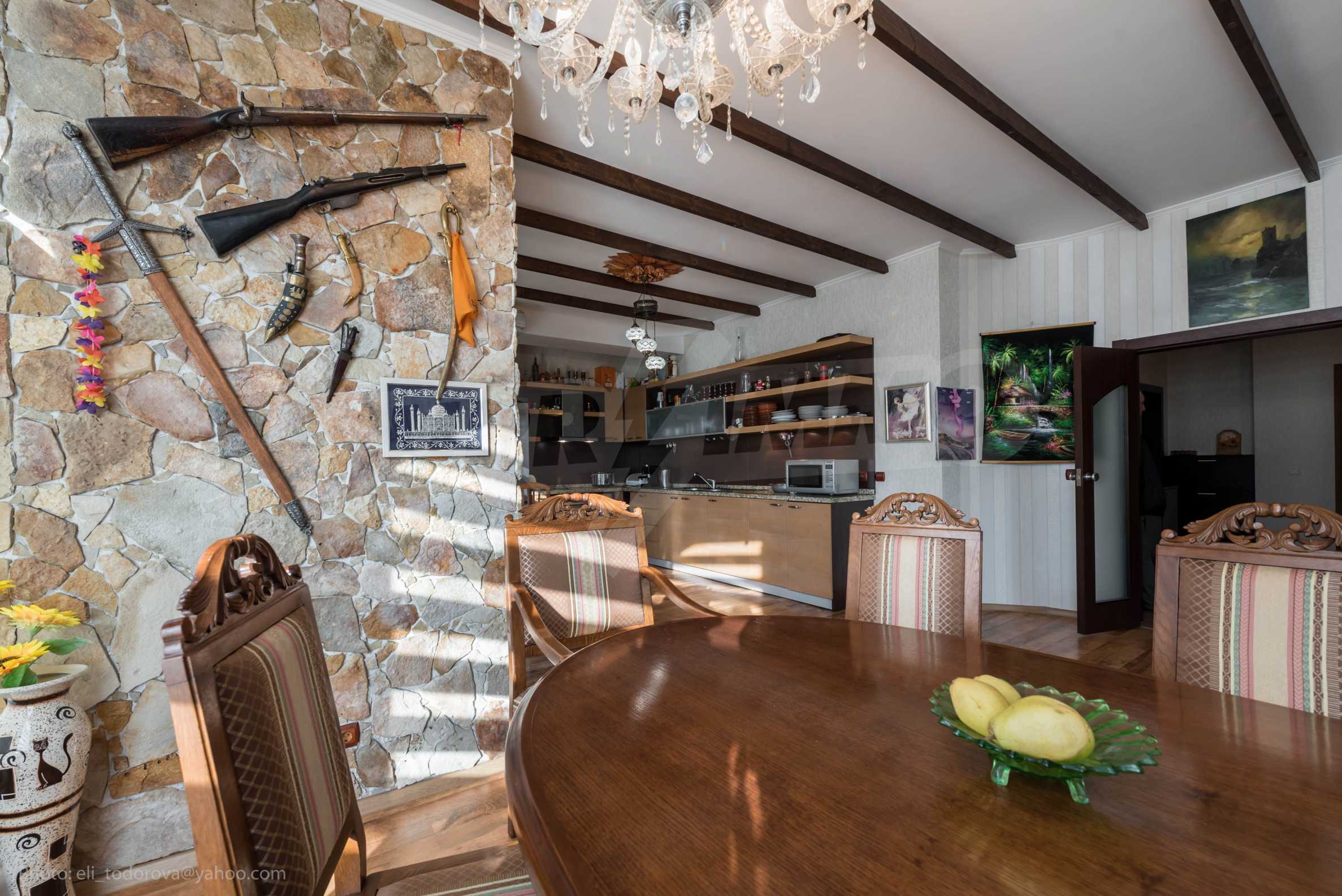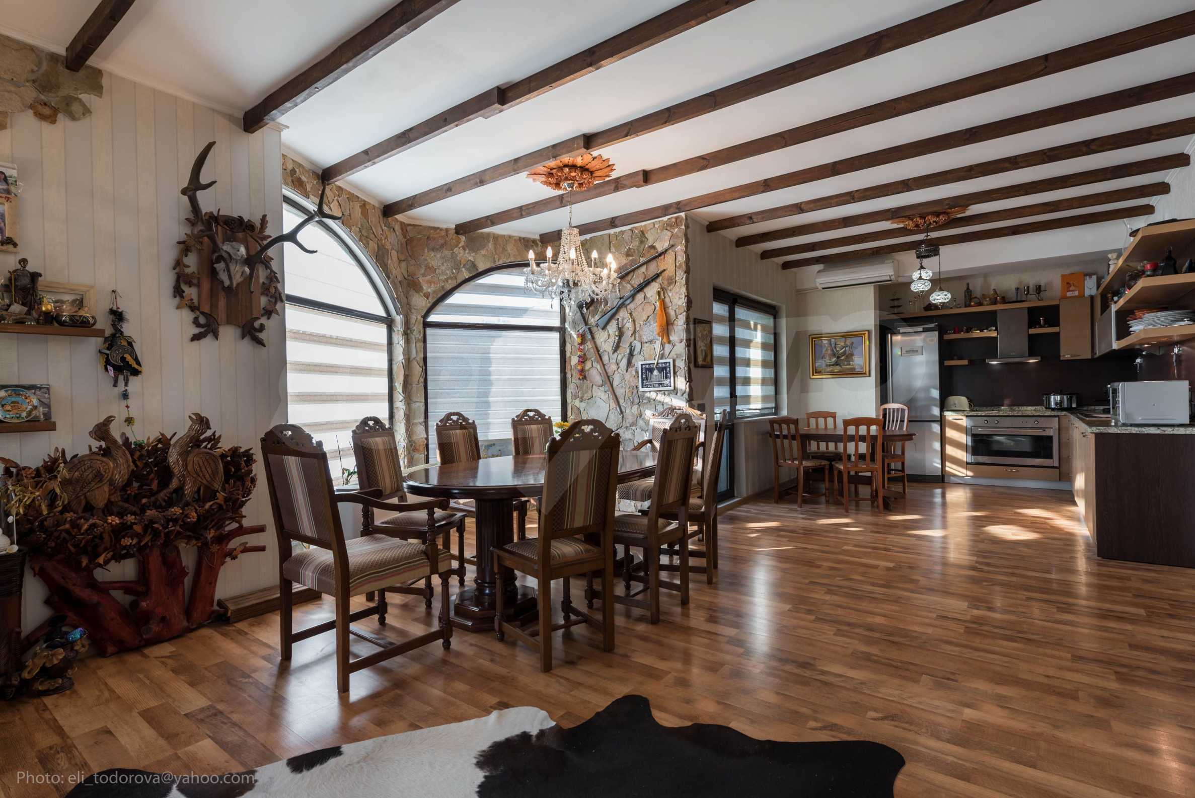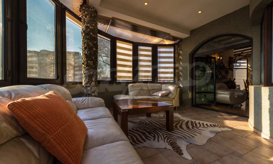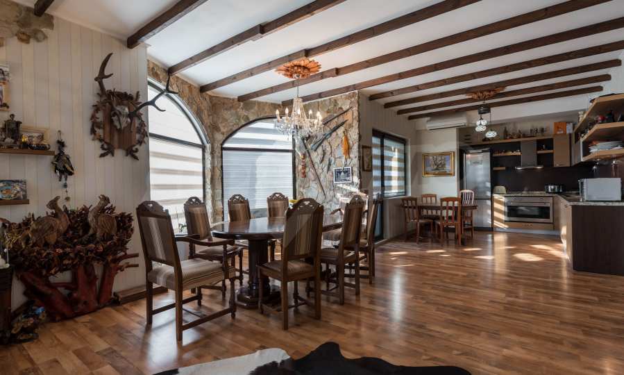 The penthouse is finished with taste and style, with a charming design with wooden accents, and at the same time it is modernly equipped, having a special coziness, thanks to the panoramic library - a real advantage and a relaxation area today.