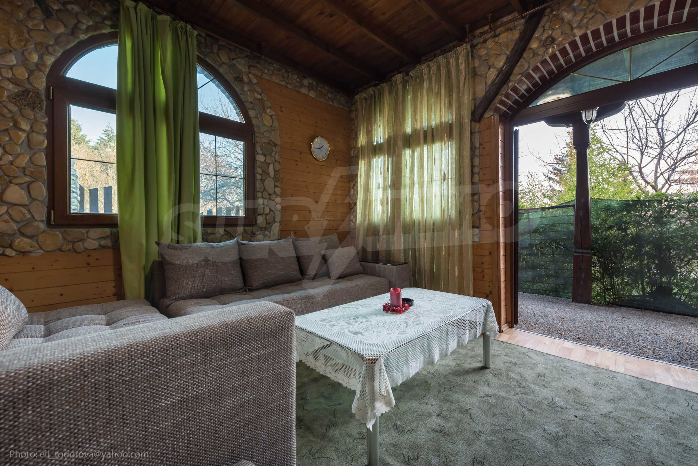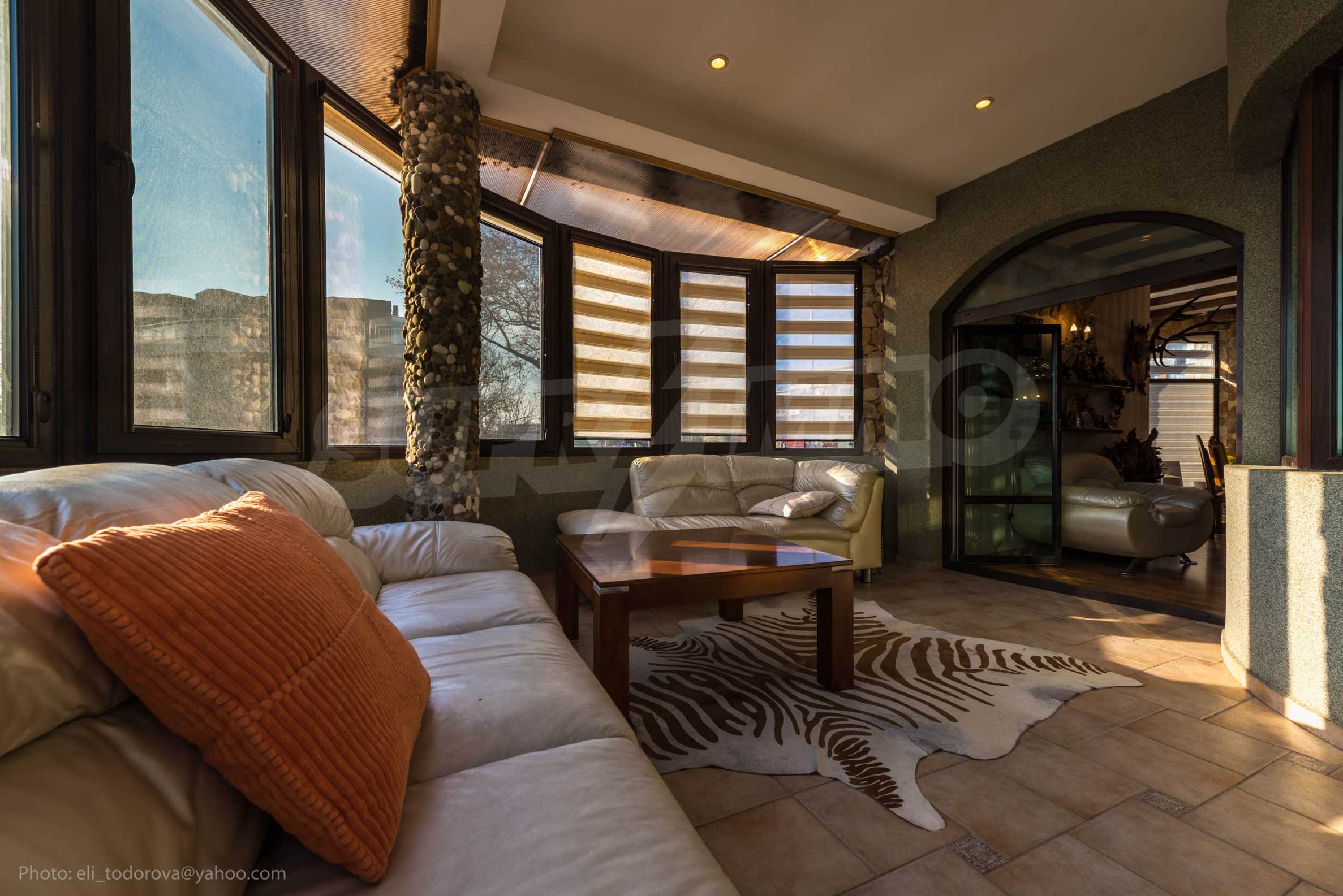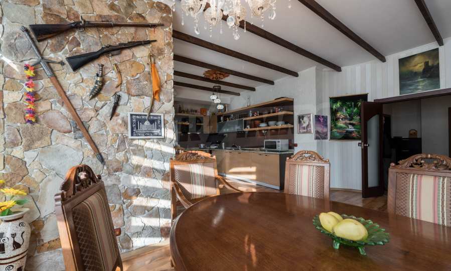 The mansion is located on an area of 1140 m2 and consists of a separate guest house with two bedrooms and its own veranda overlooking the sea garden, a main house on three floors with separate entrance and two large separate apartments, a small hotel with separate entrance, a separate large room intended for commercial activity.