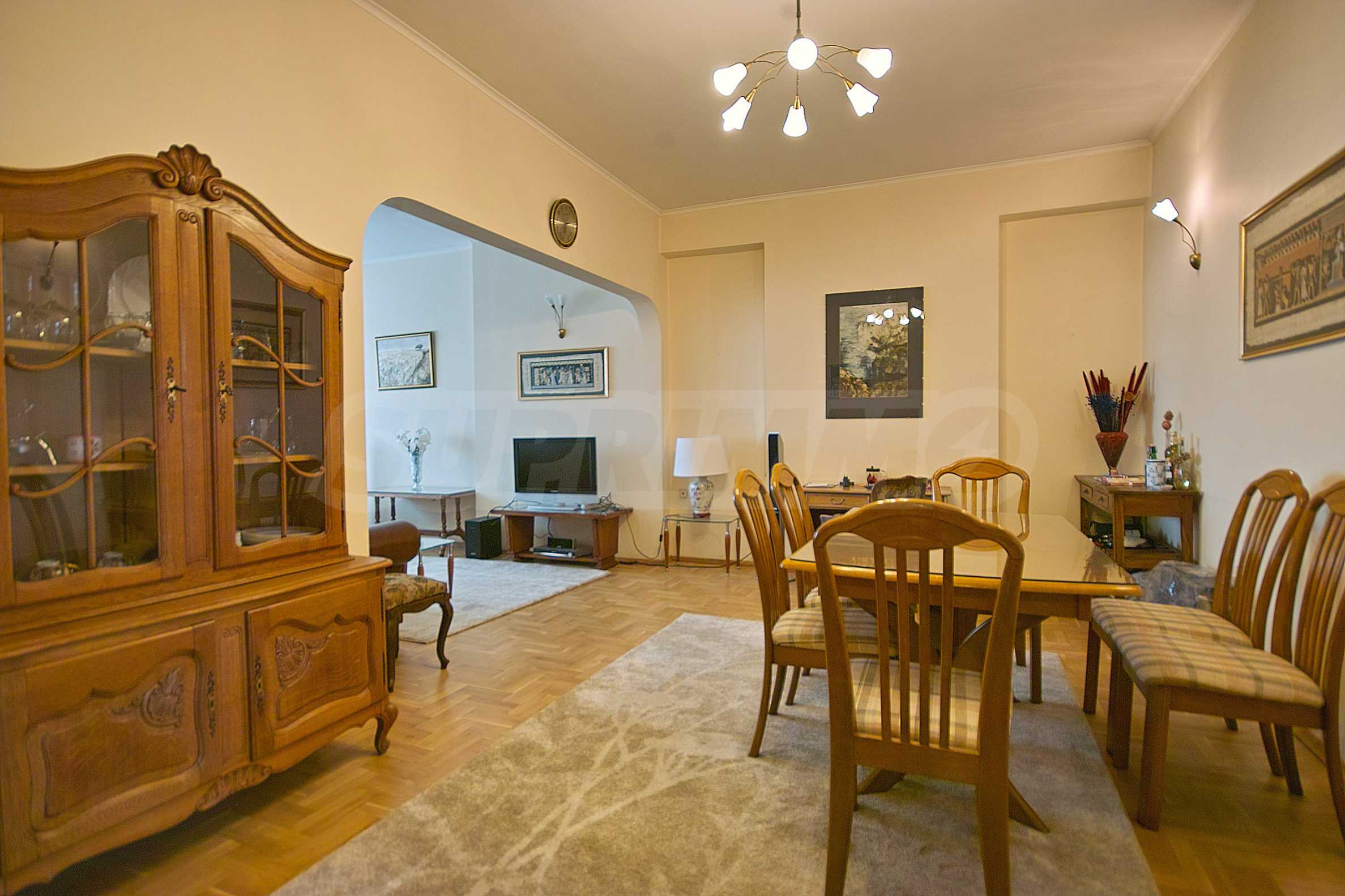 We present to you a spacious multi-room apartment in an ideal center, on Patriarch Evtimiy Blvd. opposite the National Palace of Culture. The apartment is located on the fourth floor of a maintained, renovated building with an elevator. The property has central heating, fully furnished. The apartment is an entrance hall with closet, spacious living room with dining table, sofas, TV, two bedrooms with air conditioning and adjoining bathroom with tub, separate room with fully equipped kitchen with dining table and glazed balcony, another bathroom with shower . The apartment has a basement and attic. The property is maintained and completely ready for use. It is rented for long-term rent, and tenants with pets are not tolerated. An inspection can be arranged at a time convenient for you.