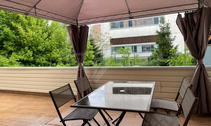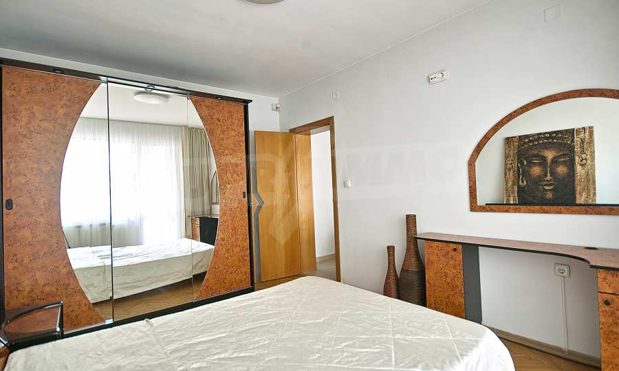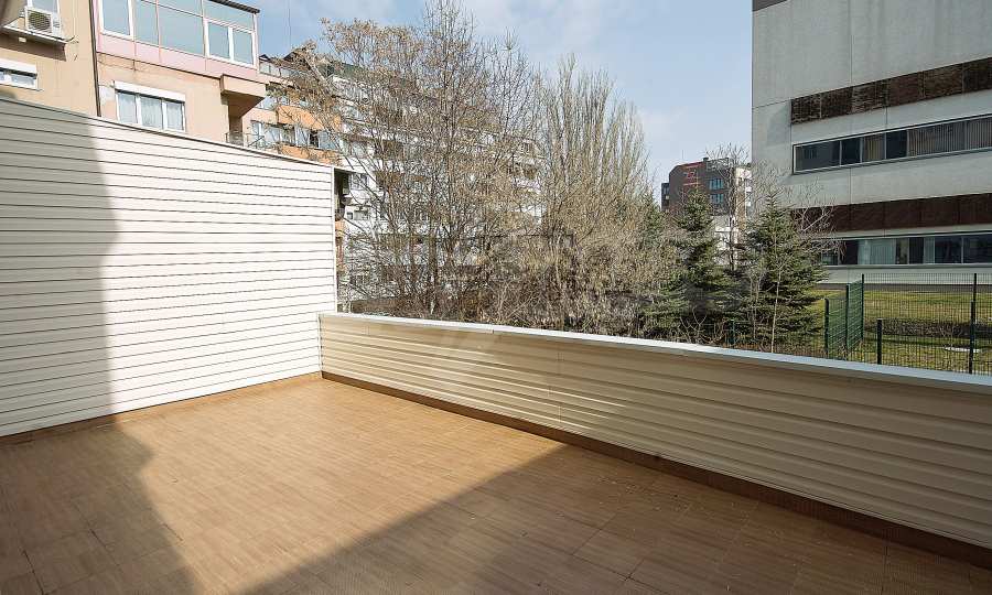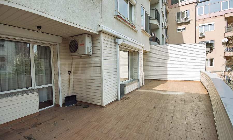 We present to your attention a furnished three-room apartment with a spacious terrace, located on a quiet street behind Serdika MALL. The apartment is located on the first floor above shops and consists of a living room with a dining area and a kitchenette, two bedrooms, a bathroom with a toilet, a separate toilet and a large terrace of 50 m2. The apartment is fully furnished. The heating is by thermal power plant, and in addition there are air conditioners. The apartment has a security system and external electric roller blinds. Convenient location on a quiet street behind Serdika MALL, meters from Oborishte Street and near Doctor's Garden.