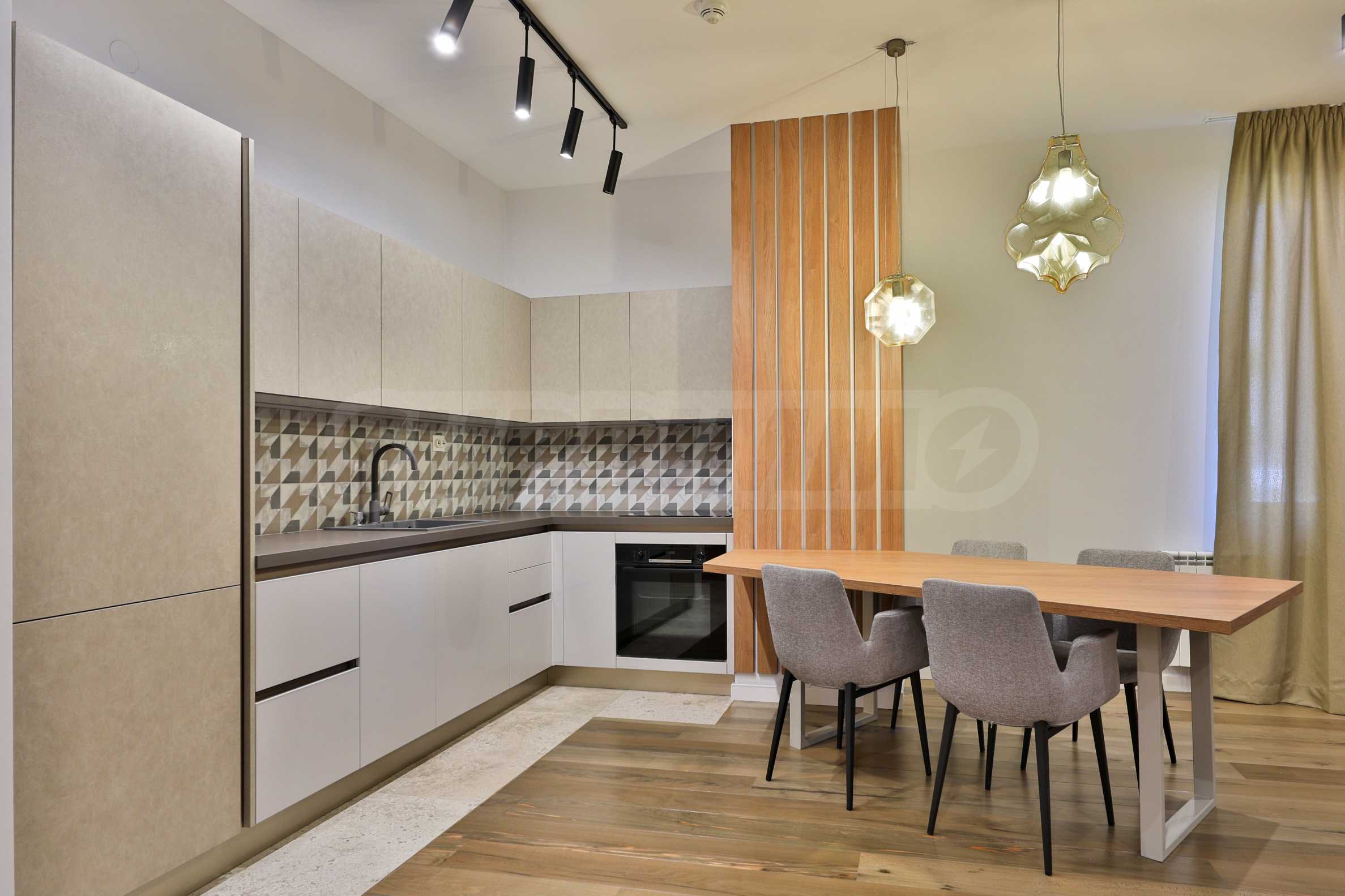 The premises are spacious, full of light and with a view of the surrounding forests and the Vitosha mountain. It is furnished according to an individual project with "Martineli" furniture and "Bosch" kitchen equipment.