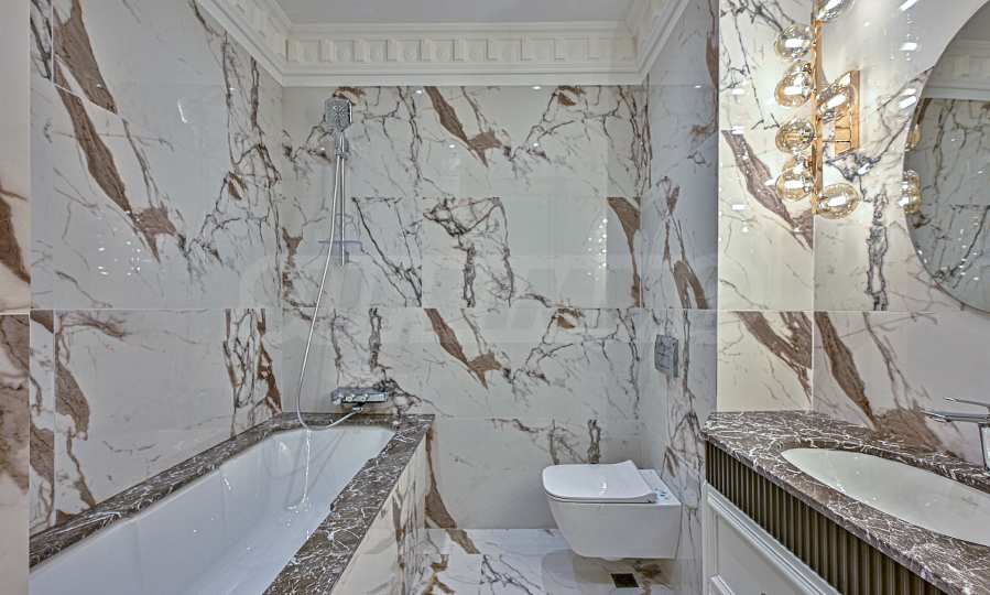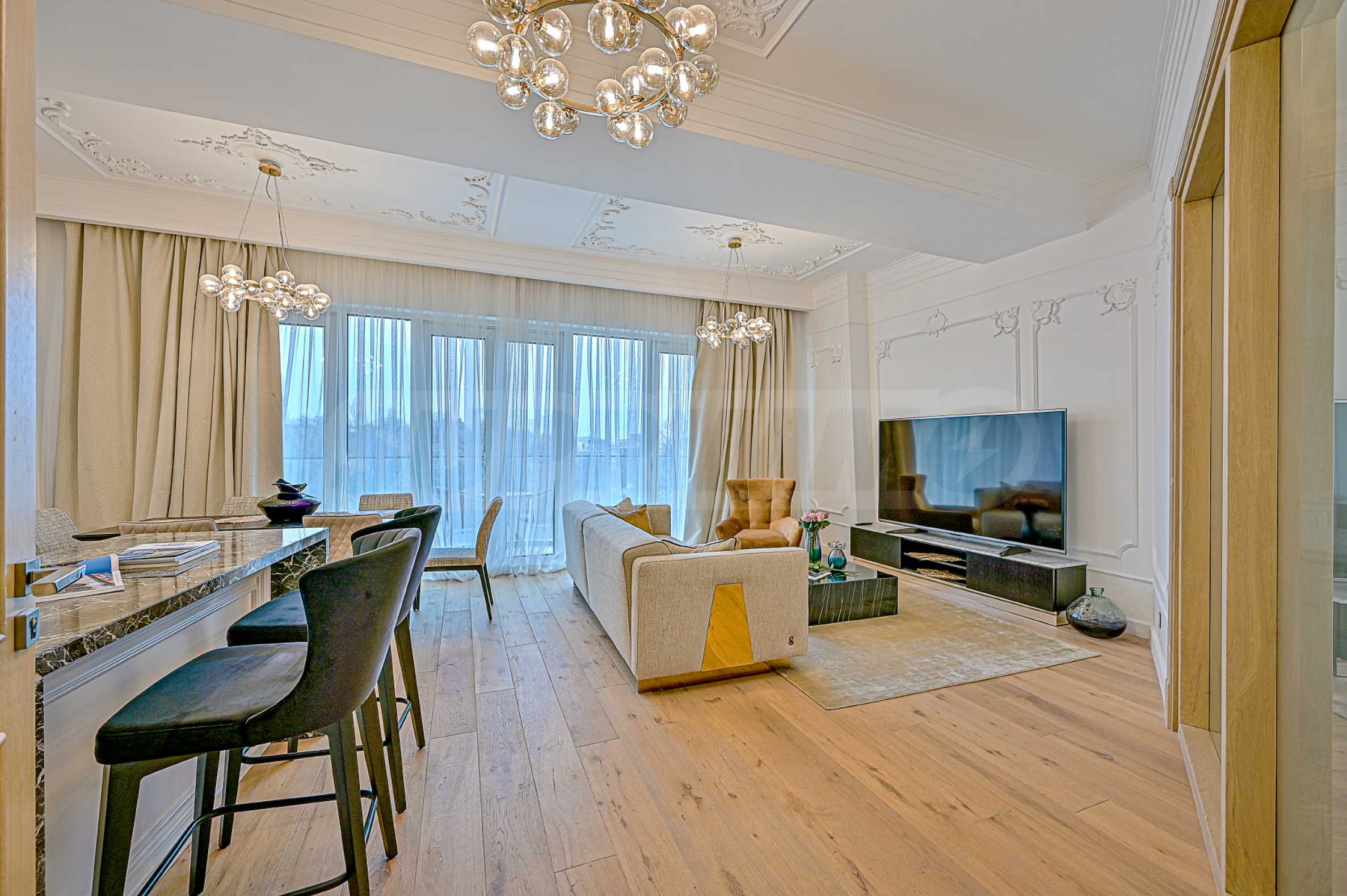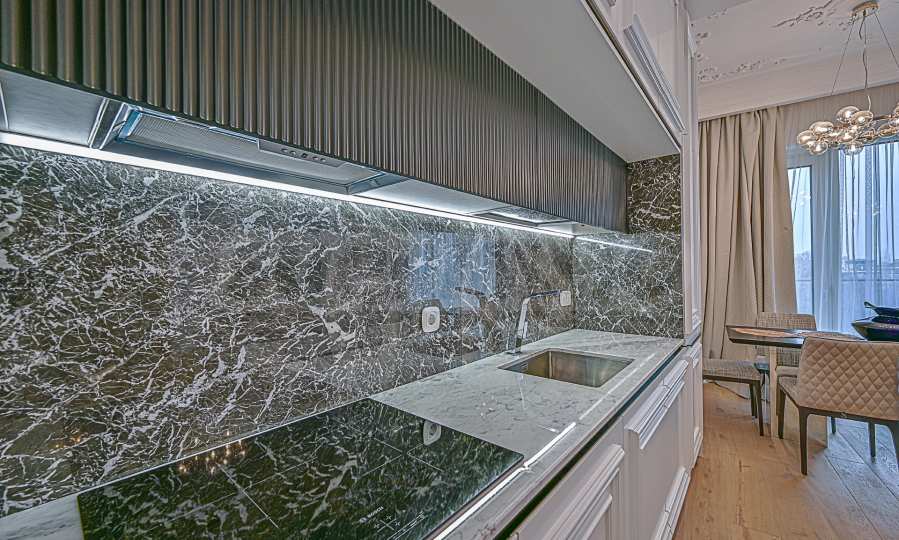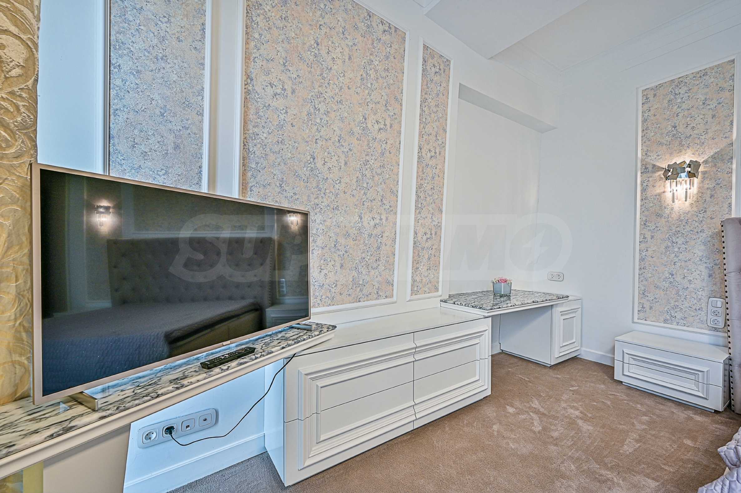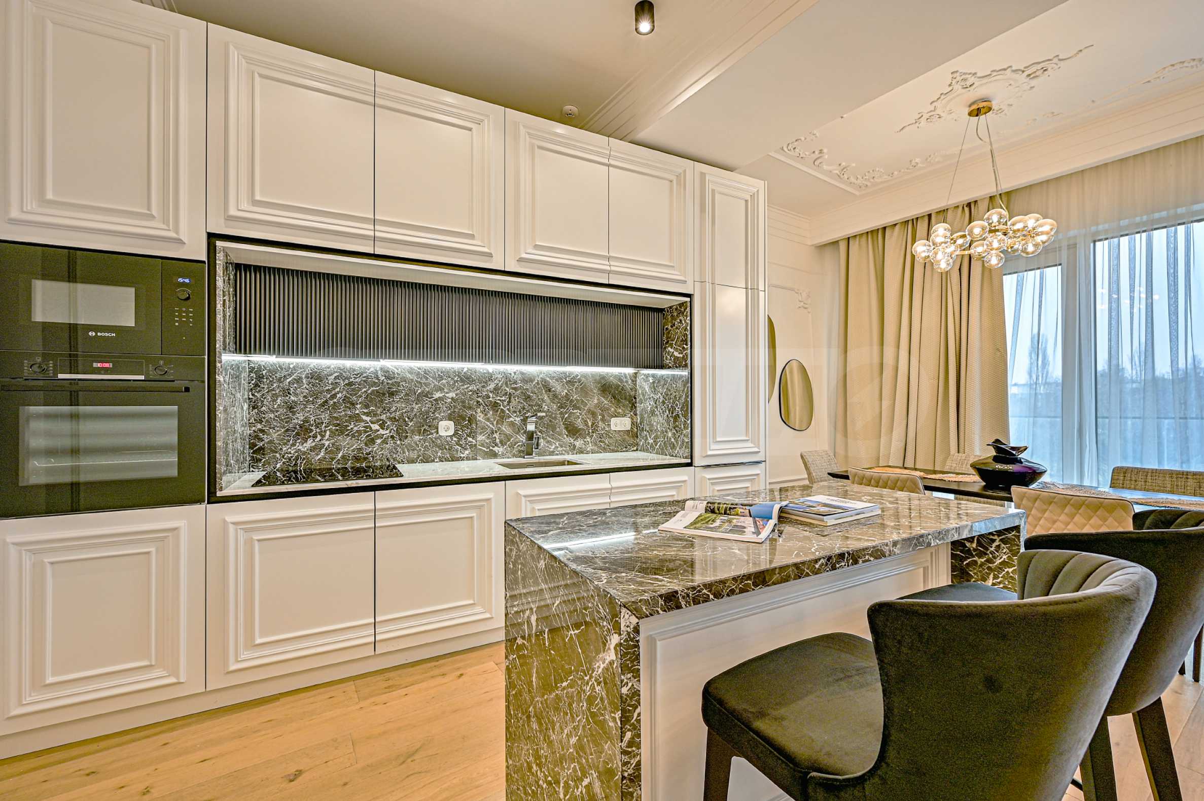 High ceilings 3.20 m, lots of light, attention to every detail, excellent design solutions, warm colors and fabrics. The massive interior doors are 2.40 m high, plaster ornaments, high-class furniture and electrical appliances. Convenience, comfort, coziness and feeling of a real home.