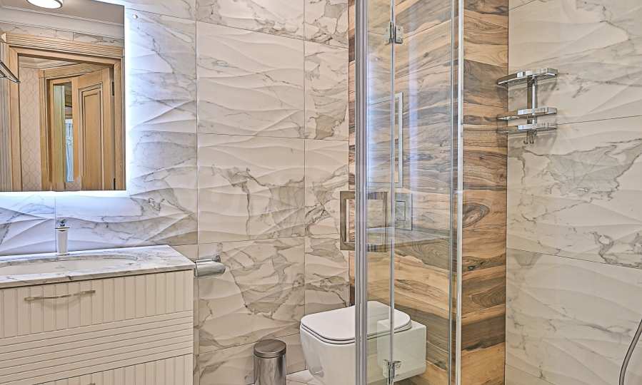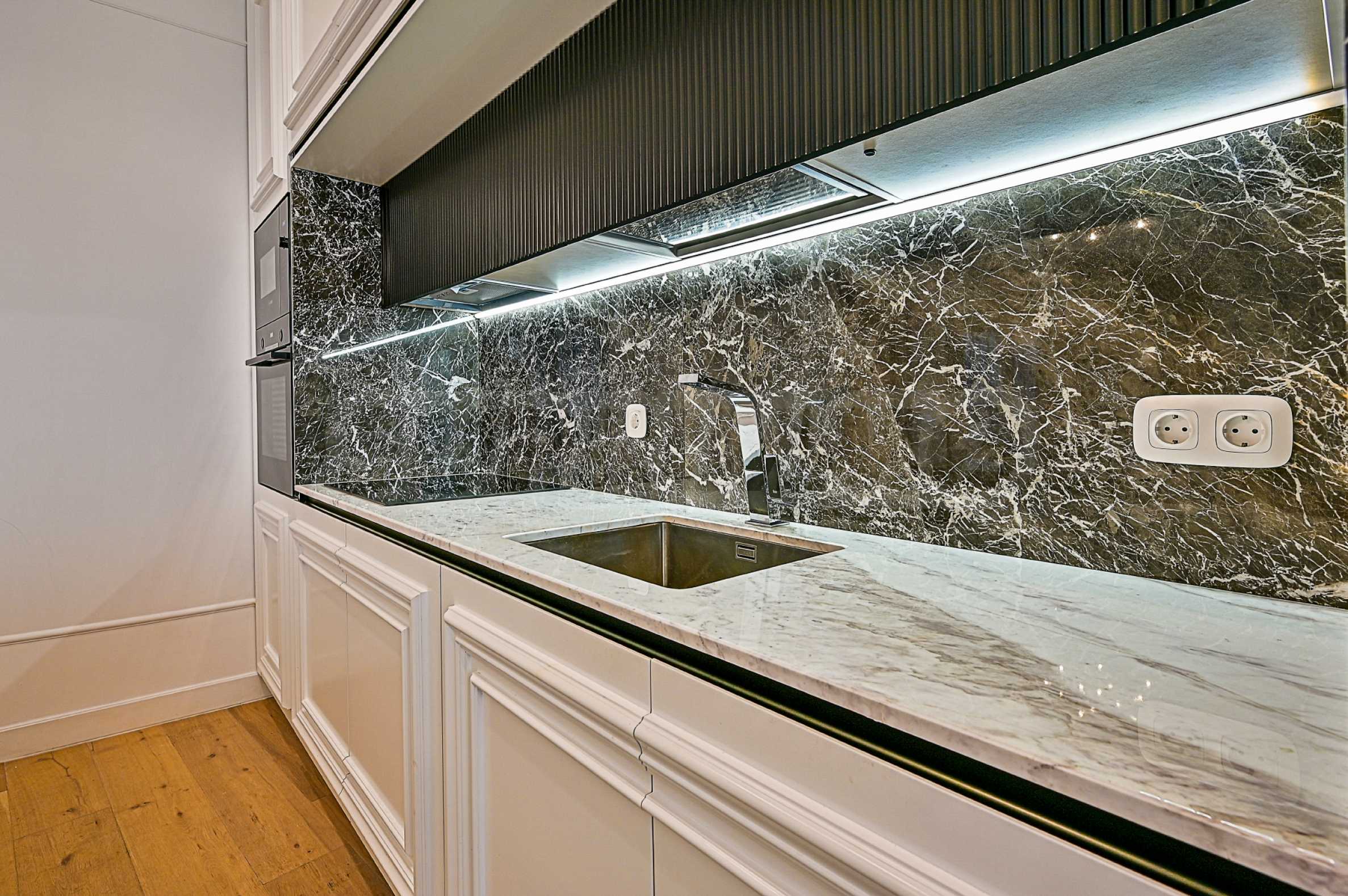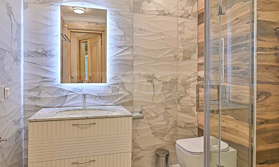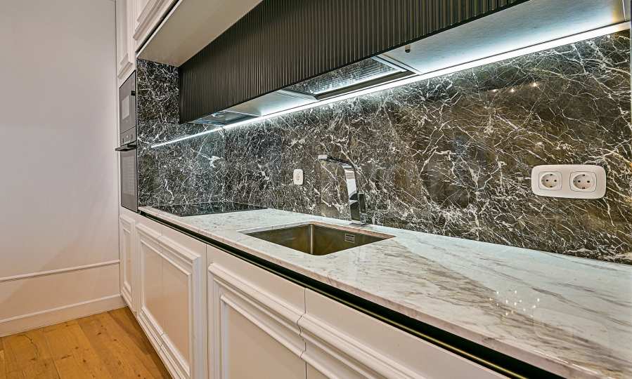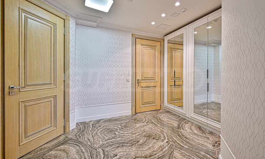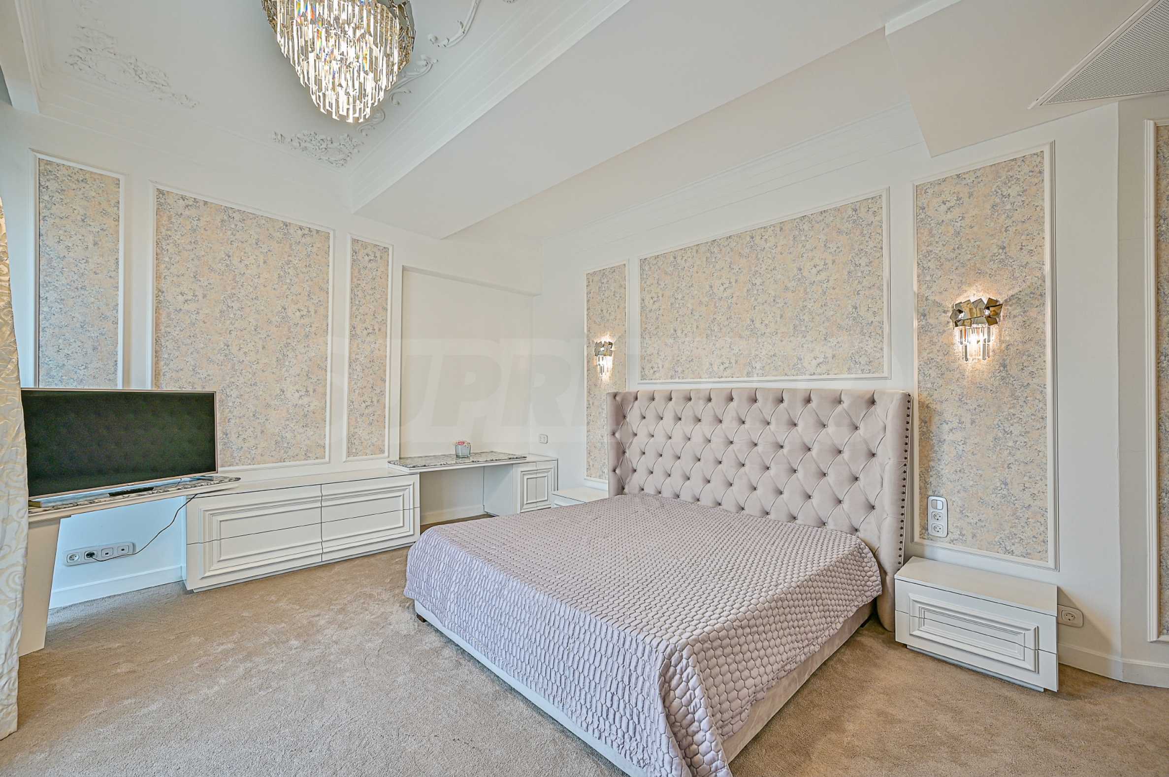 High ceilings 3.20 m, lots of light, attention to every detail, excellent design solutions, warm colors and fabrics. The massive interior doors are 2.40 m high, plaster ornaments, high-class furniture and electrical appliances. Convenience, comfort, coziness and feeling of a real home.