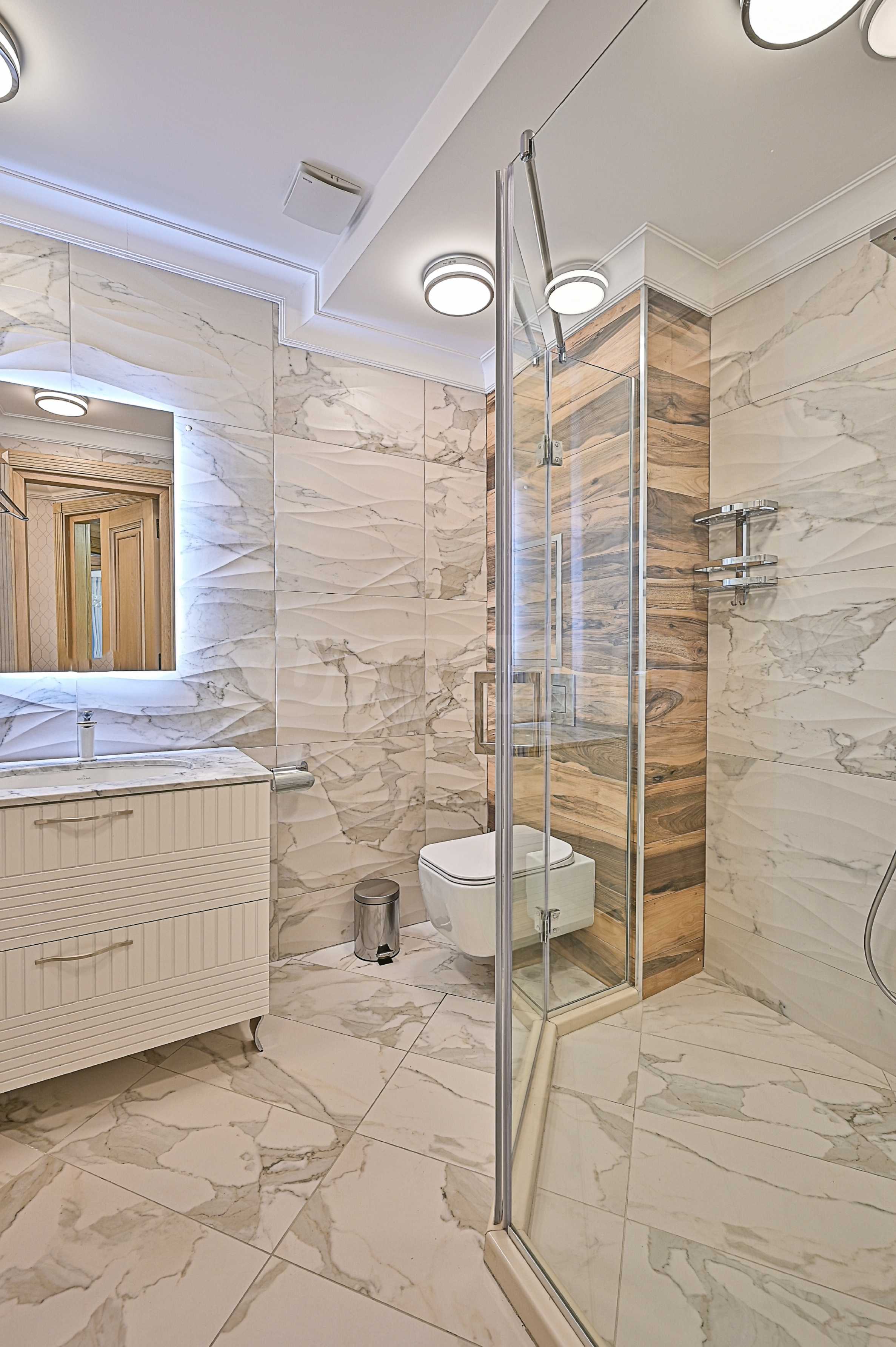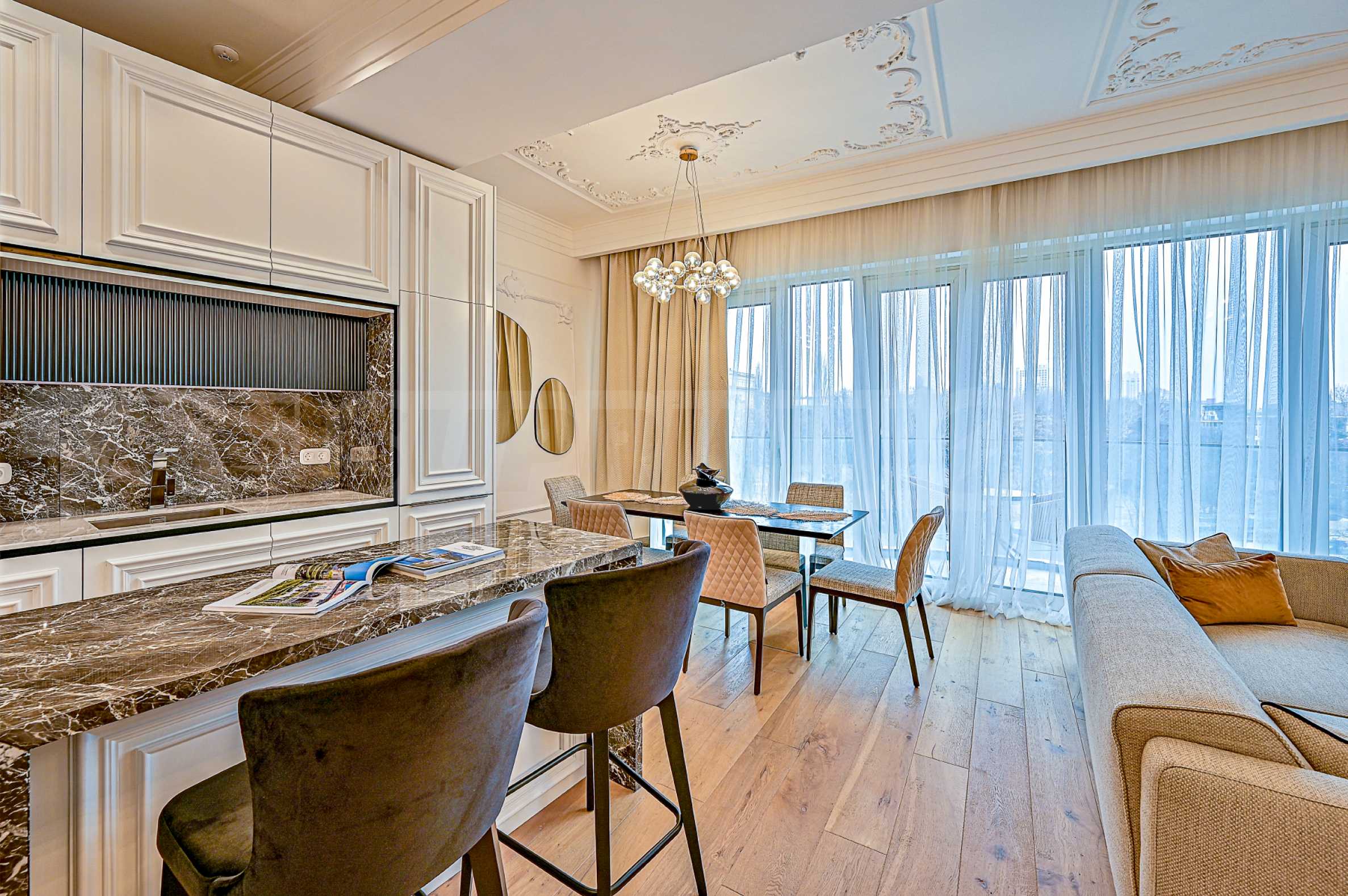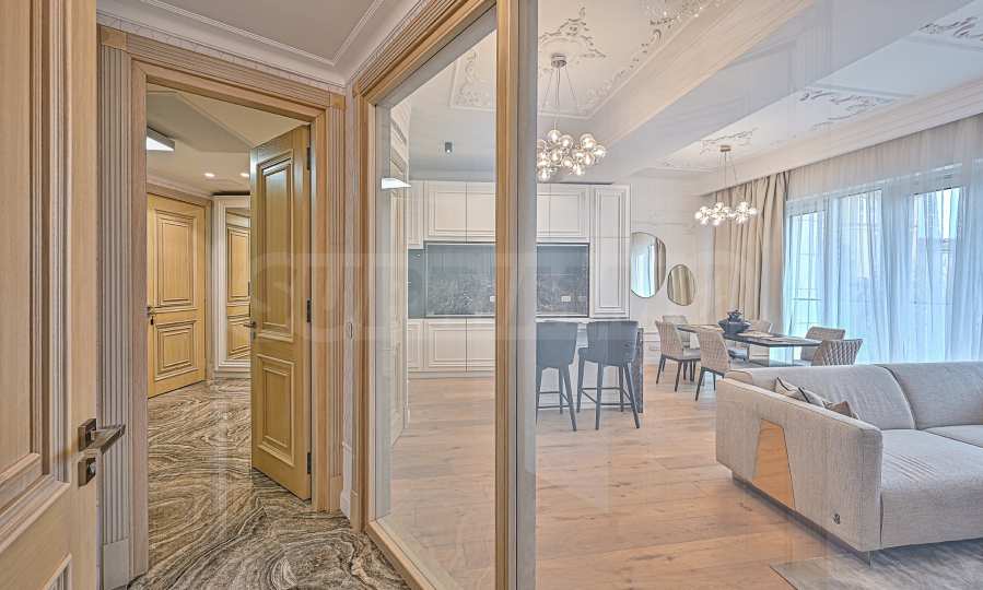 We present to you an elegant, beautiful, elegant apartment for rent in Lozenets district. The building is located in the highest and greenest part of Sofia, opposite the Boris Garden and the Seminary. Dinevi Residence has one of the most attractive locations in the capital. The building is unique both with its unique iconic appearance and with the functionality and representativeness of the interior spaces, and above all the large double-height entrance lobby.