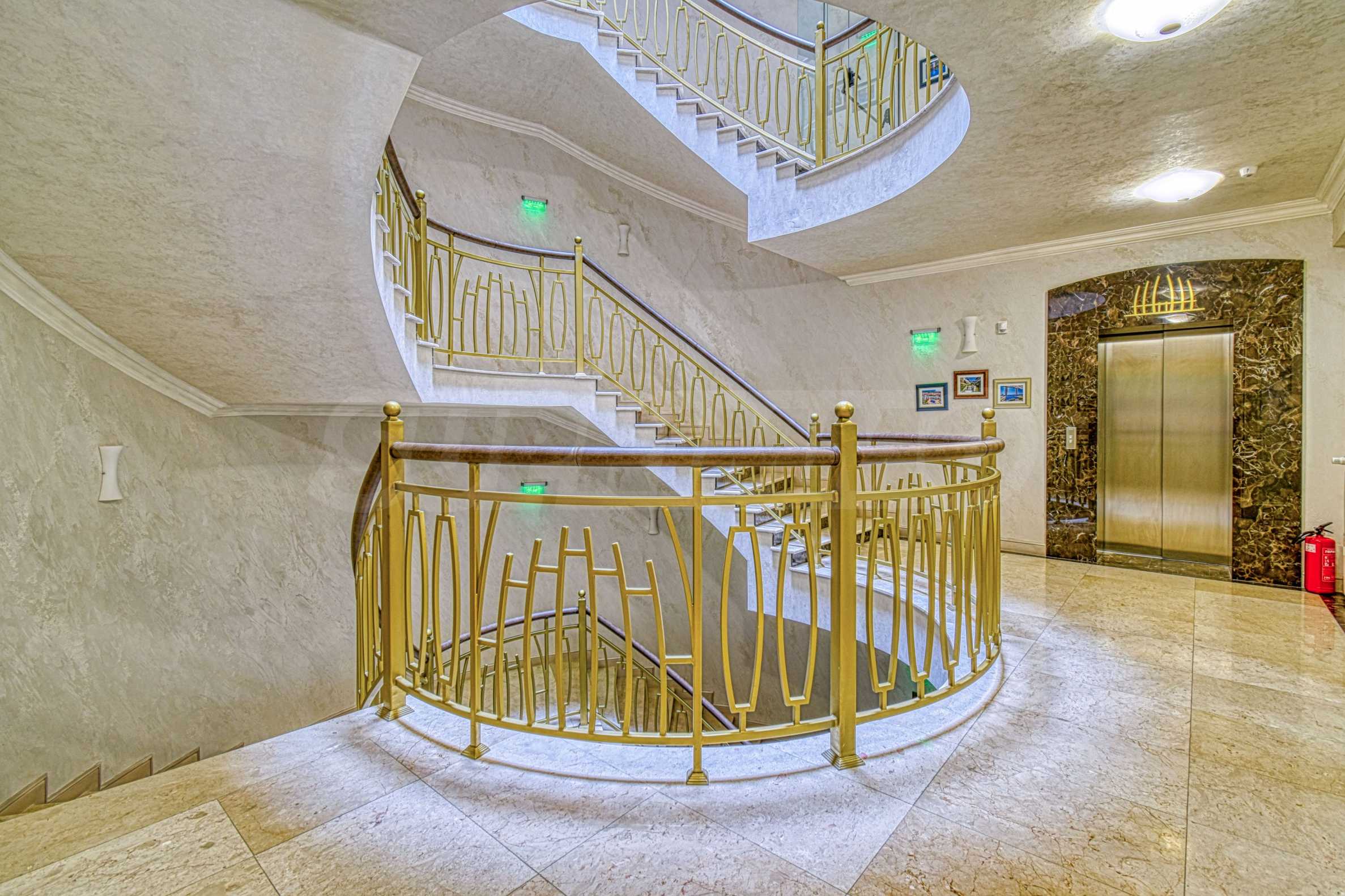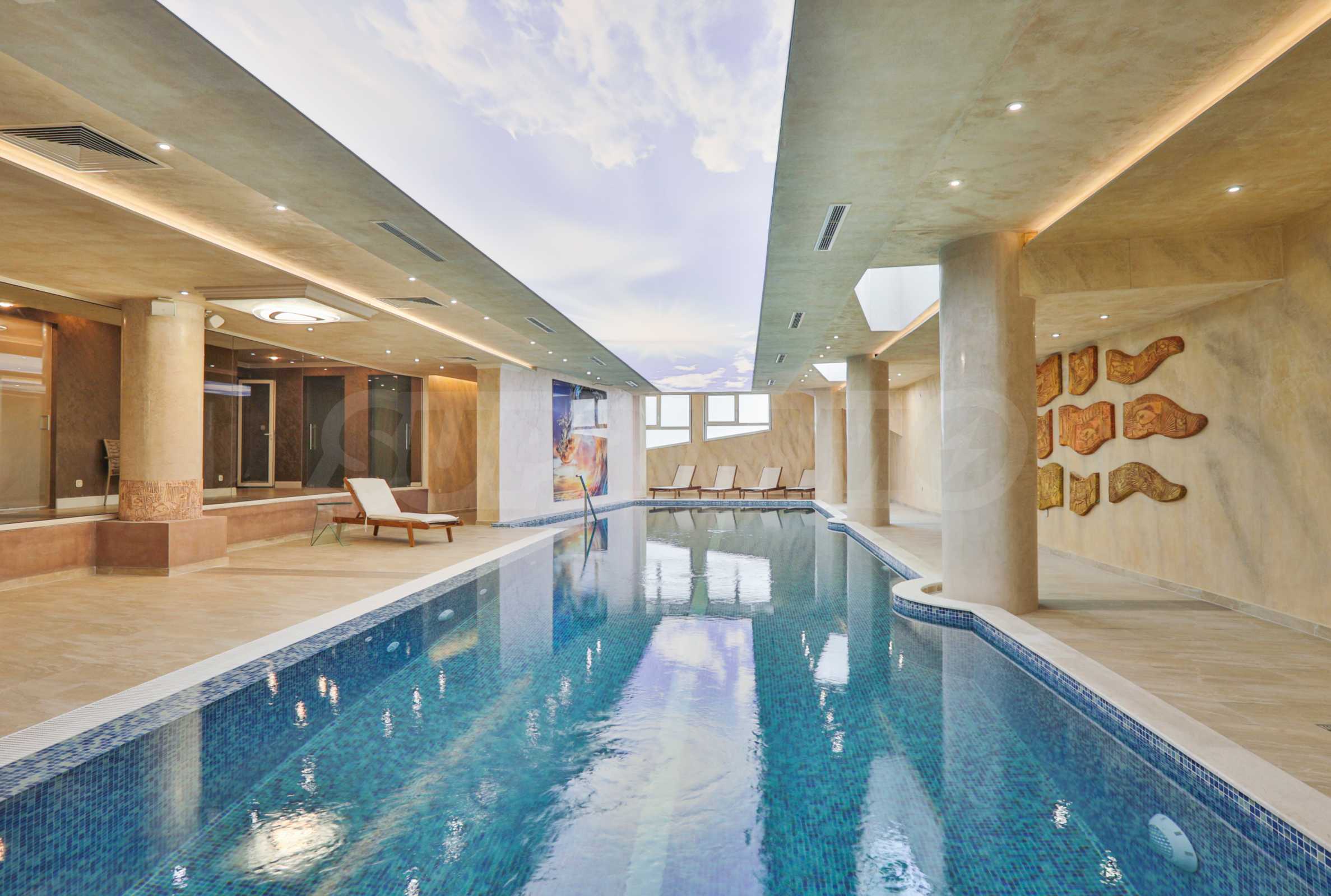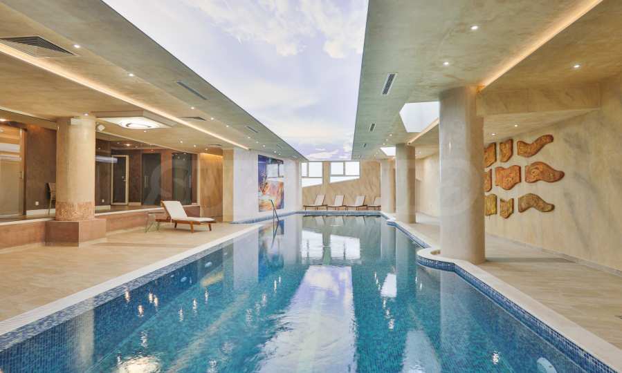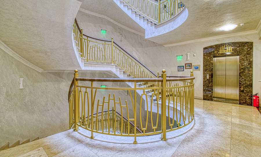 At the heart of the building is a landscaped atrium with natural overhead lighting. In this way, the unique interior atmosphere is achieved, providing comfort to all residents. The building offers a shopping center, a conference center, a spa center with a heated pool, 24-hour security and video surveillance.