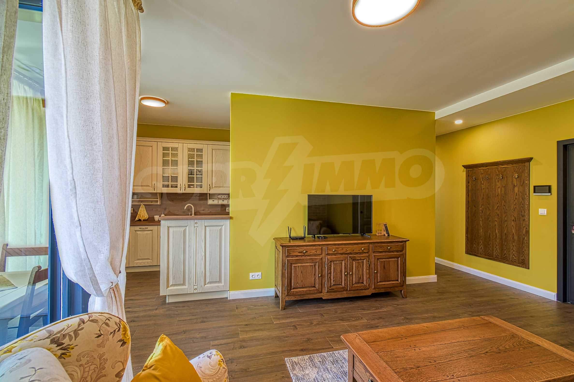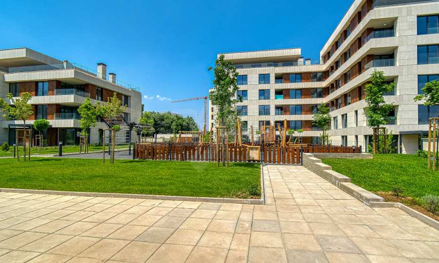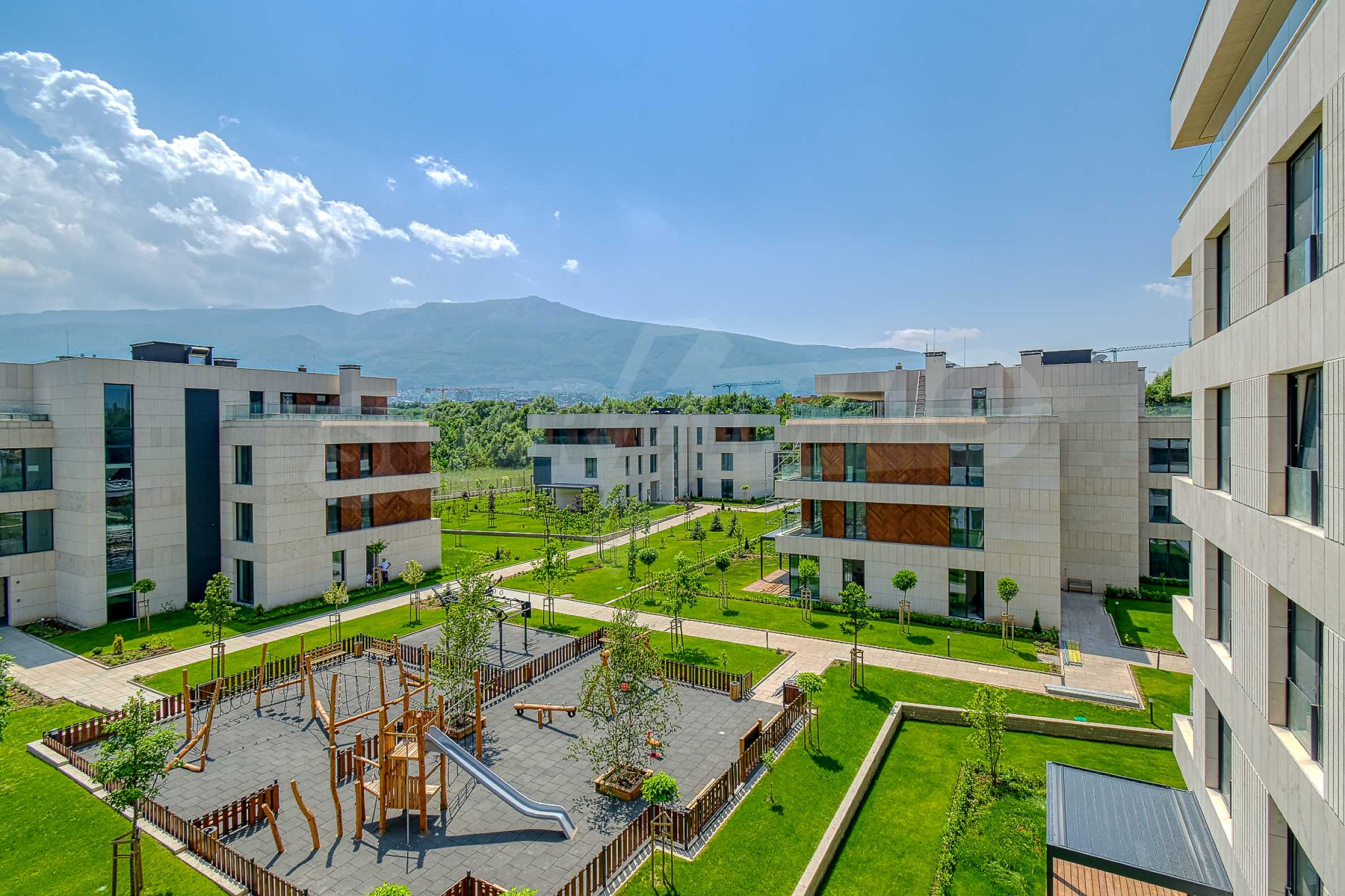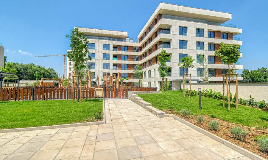 The complex itself is located on 13 decares, of which 10 decares are for landscaping. The common areas are richly landscaped, there is a children's playground and an outdoor gym. Car parking is completely underground. Residents' comfort is ensured by live security 24/7, as well as video surveillance and perimeter security.