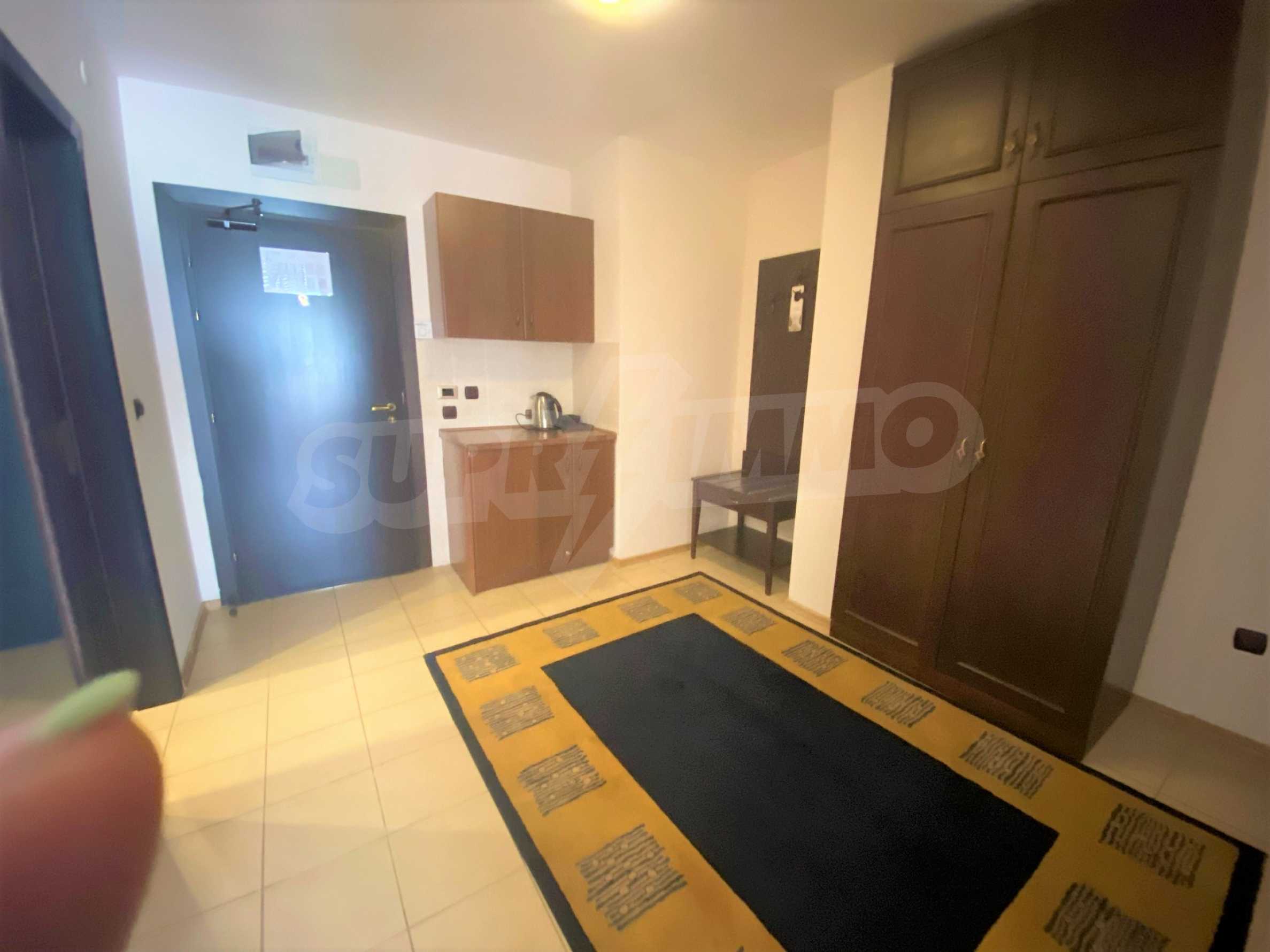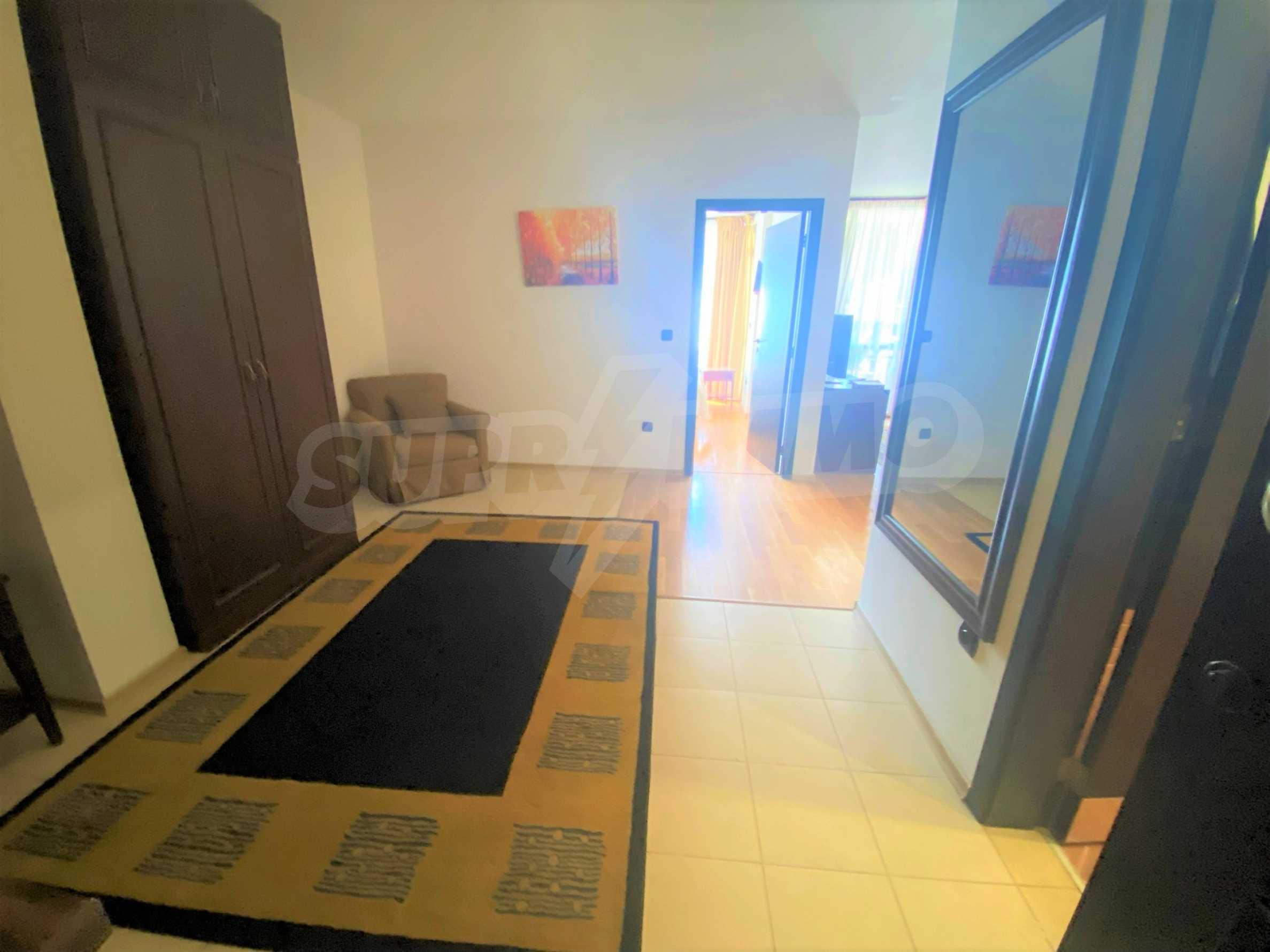 The apartment is for sale fully furnished and equipped, ready for living or renting. The complex is open all year round and is only a 10-minute walk from the gondola lift and a 15-minute walk from the resort center. The apartment faces east and has a beautiful view of the indoor pool of the complex and the mountains. It is located on the 3rd floor, with a total area of 70.08 m2., net area - 56.16 m2., distributed between: